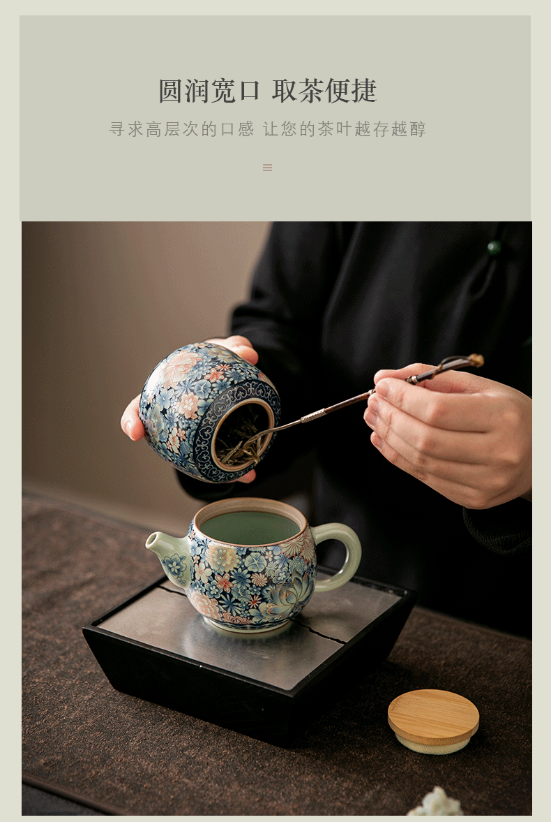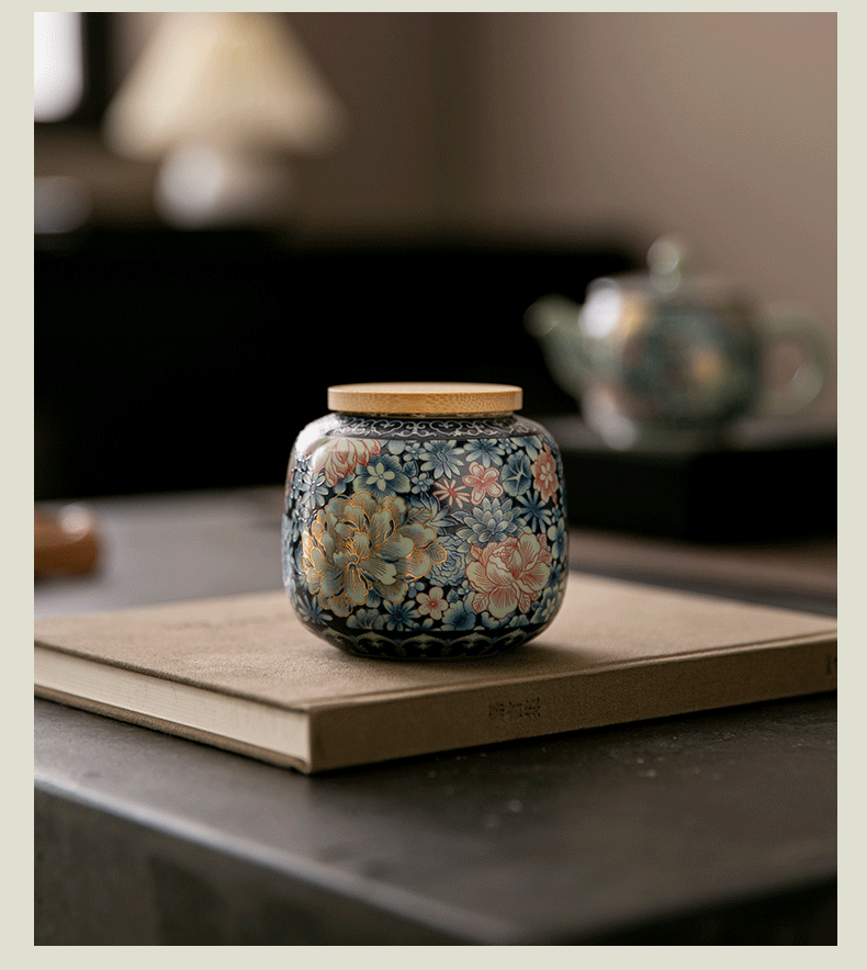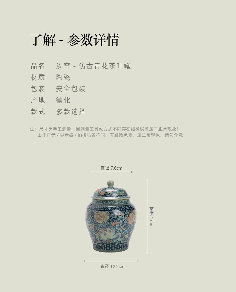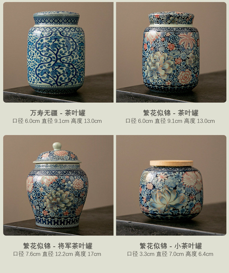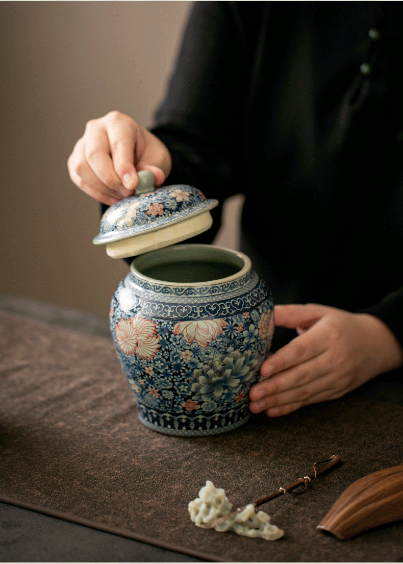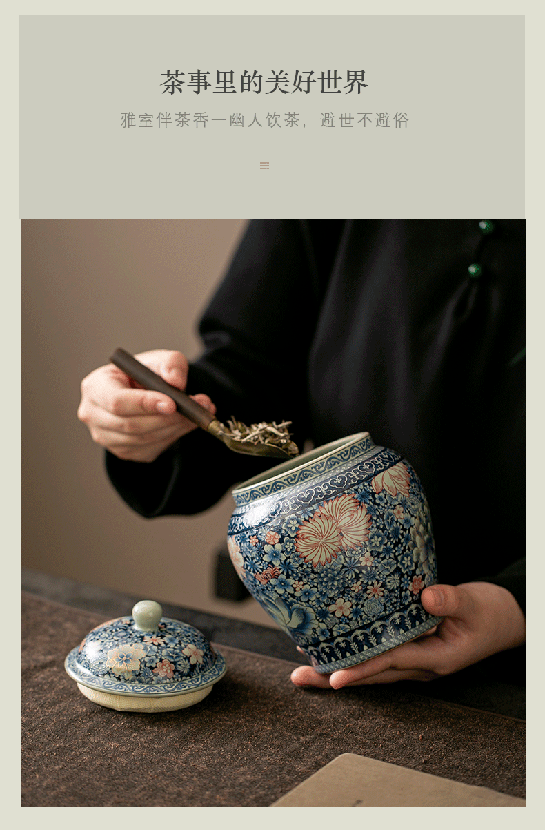 汝窑青花陶瓷家用小型中式茶叶密封罐储存罐茶叶罐可养复古存茶罐