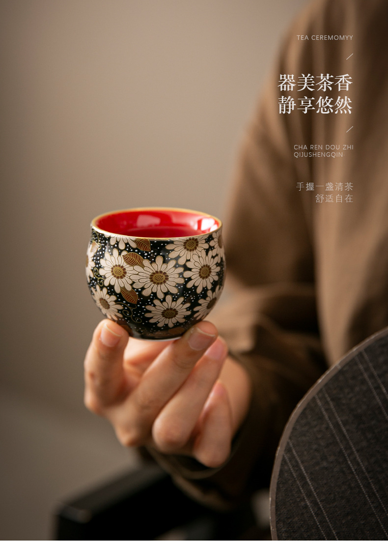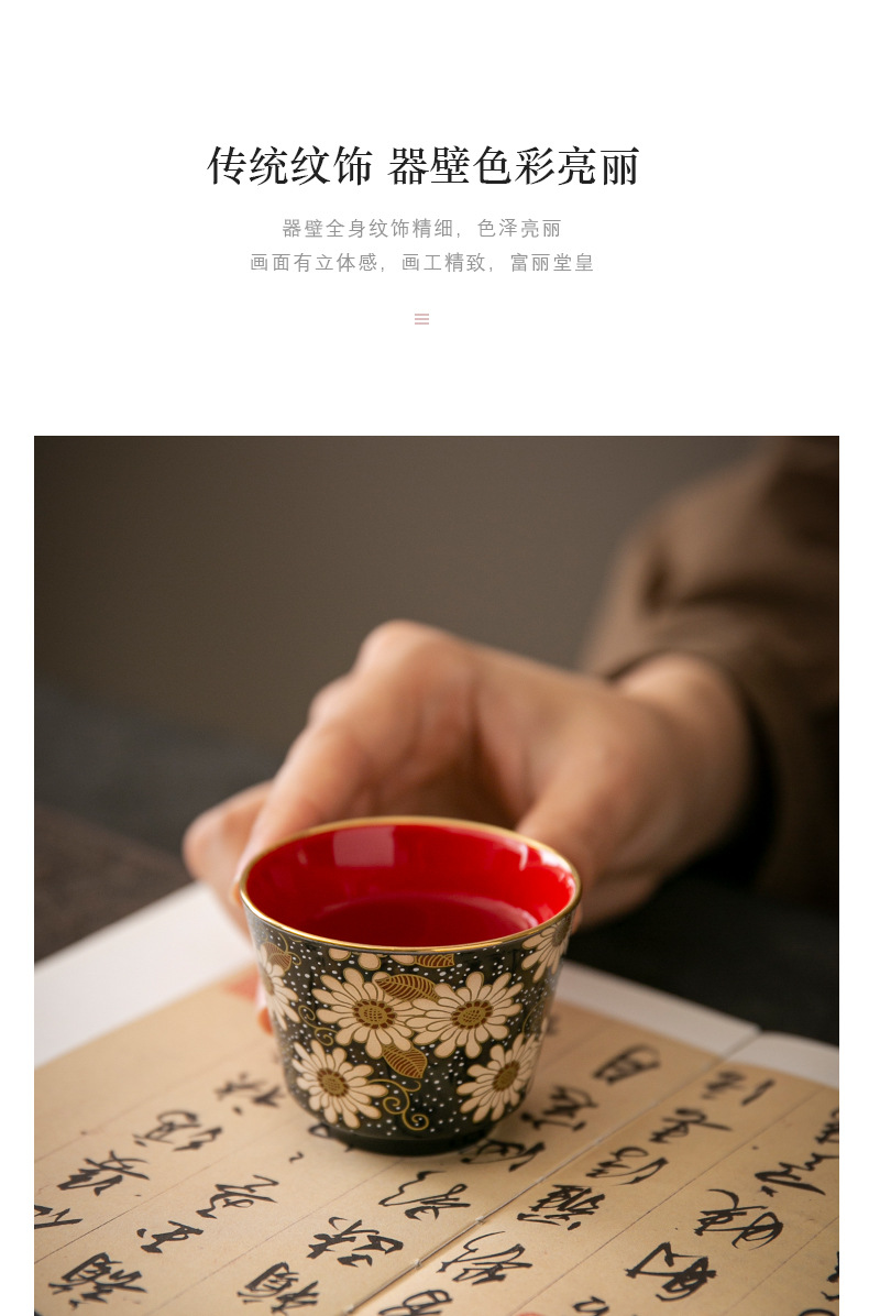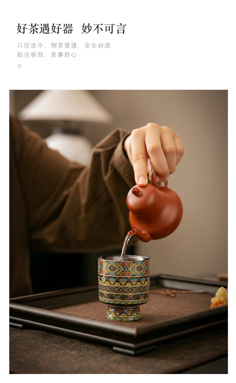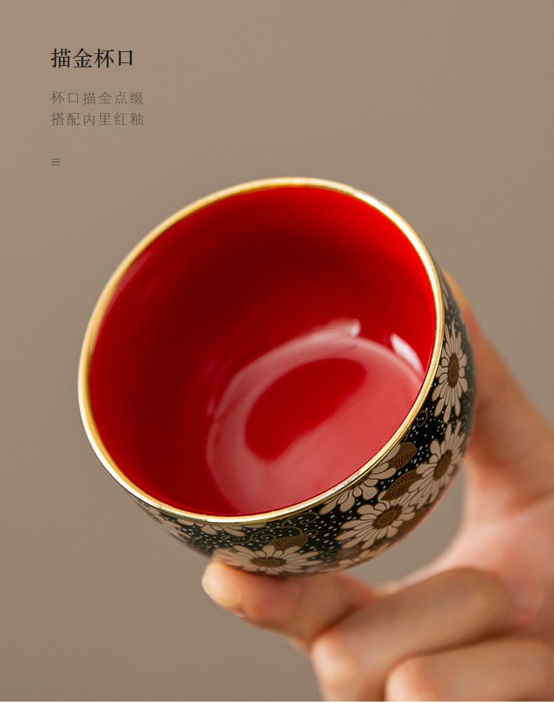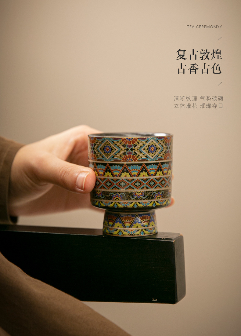 敦煌向阳花开主人杯茶盏家用个人专用鎏金茶杯高档珐琅彩功夫茶具