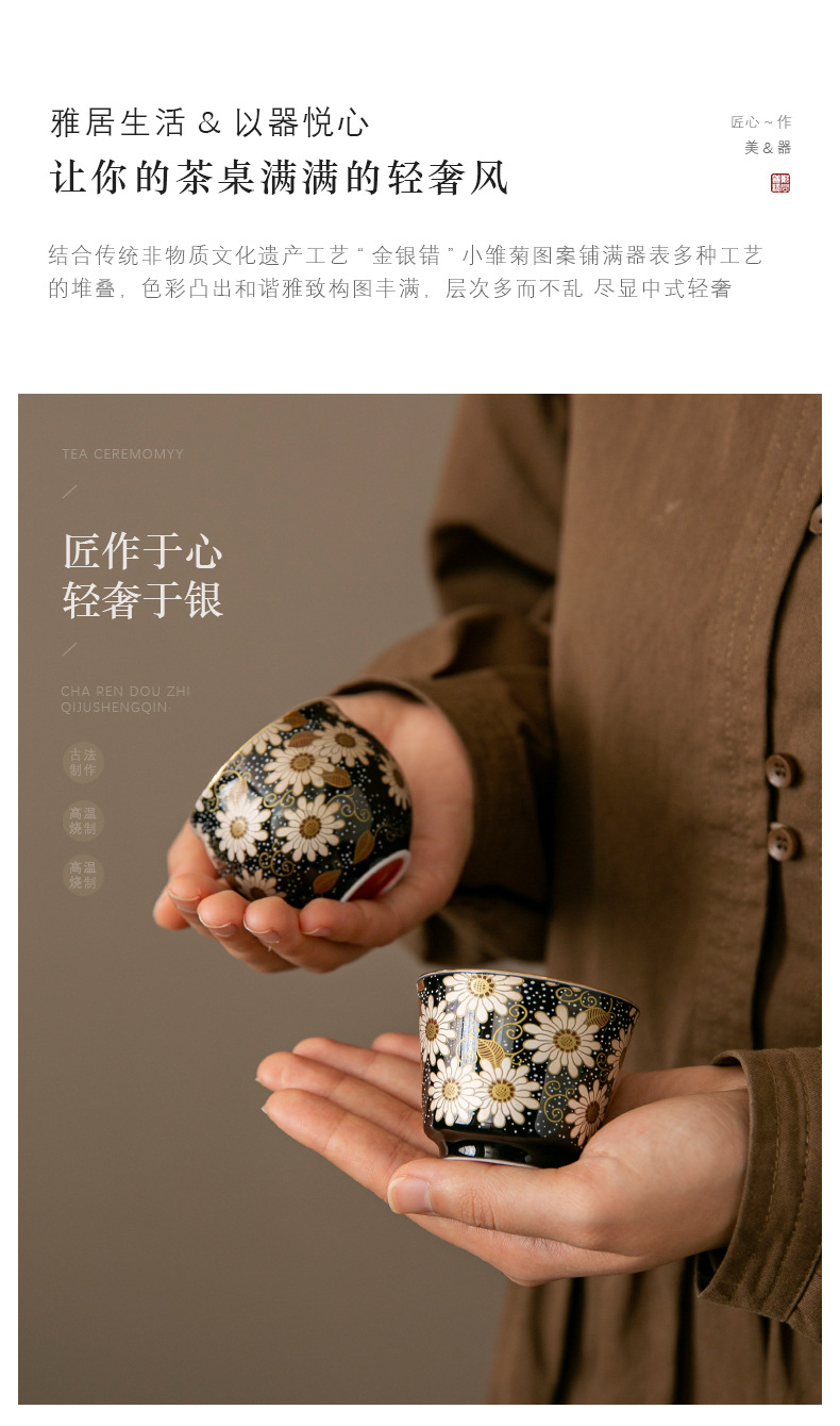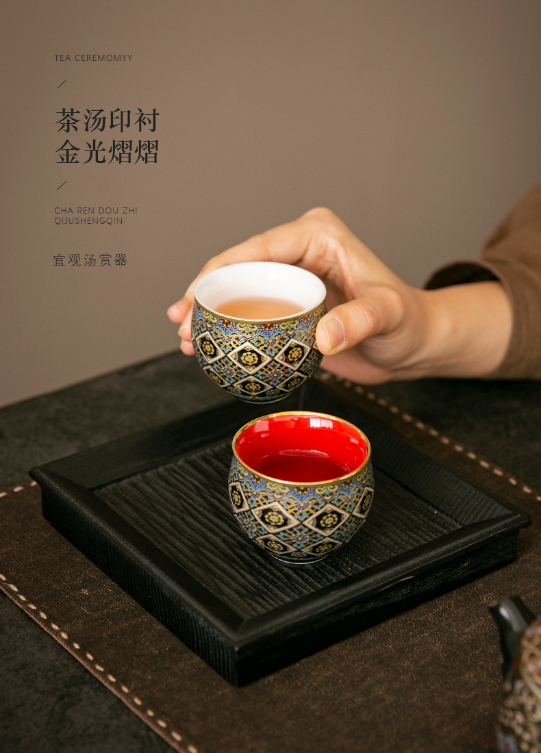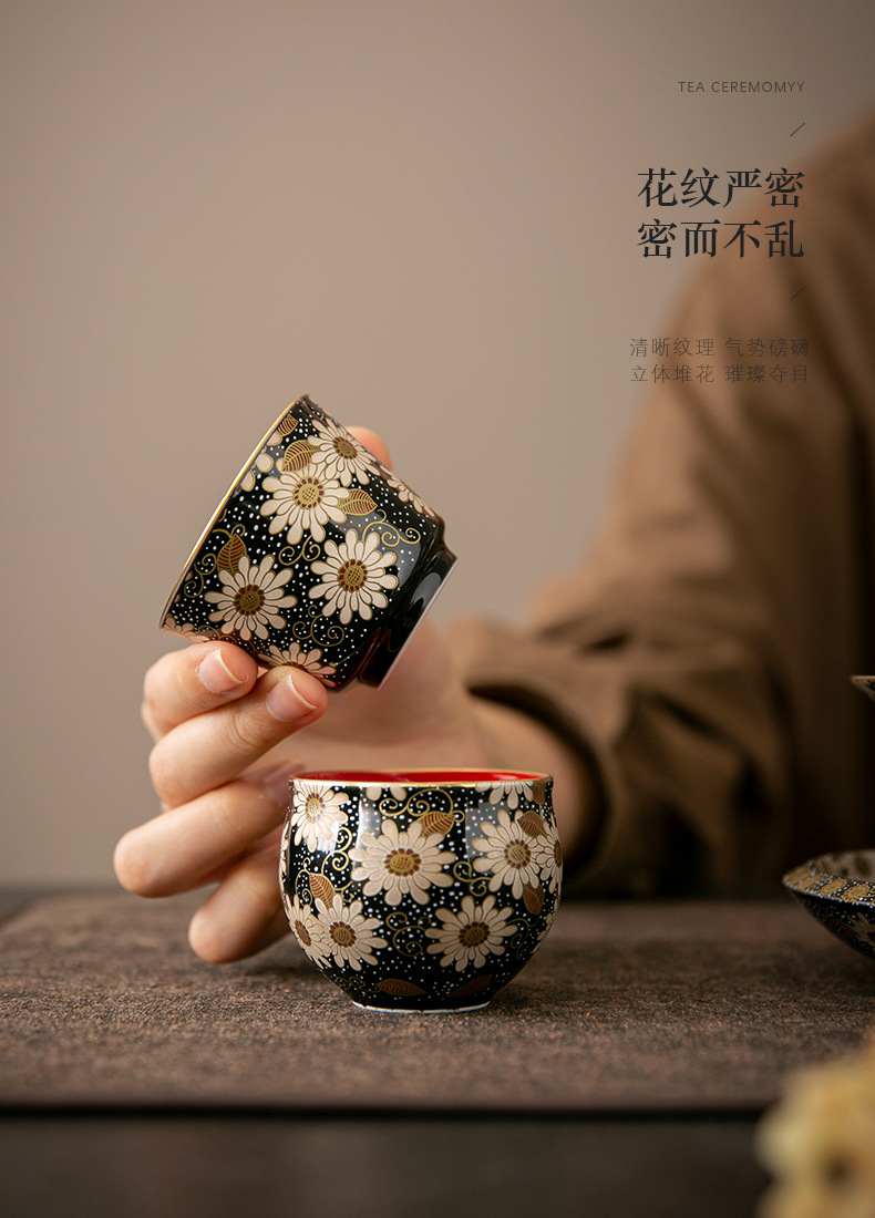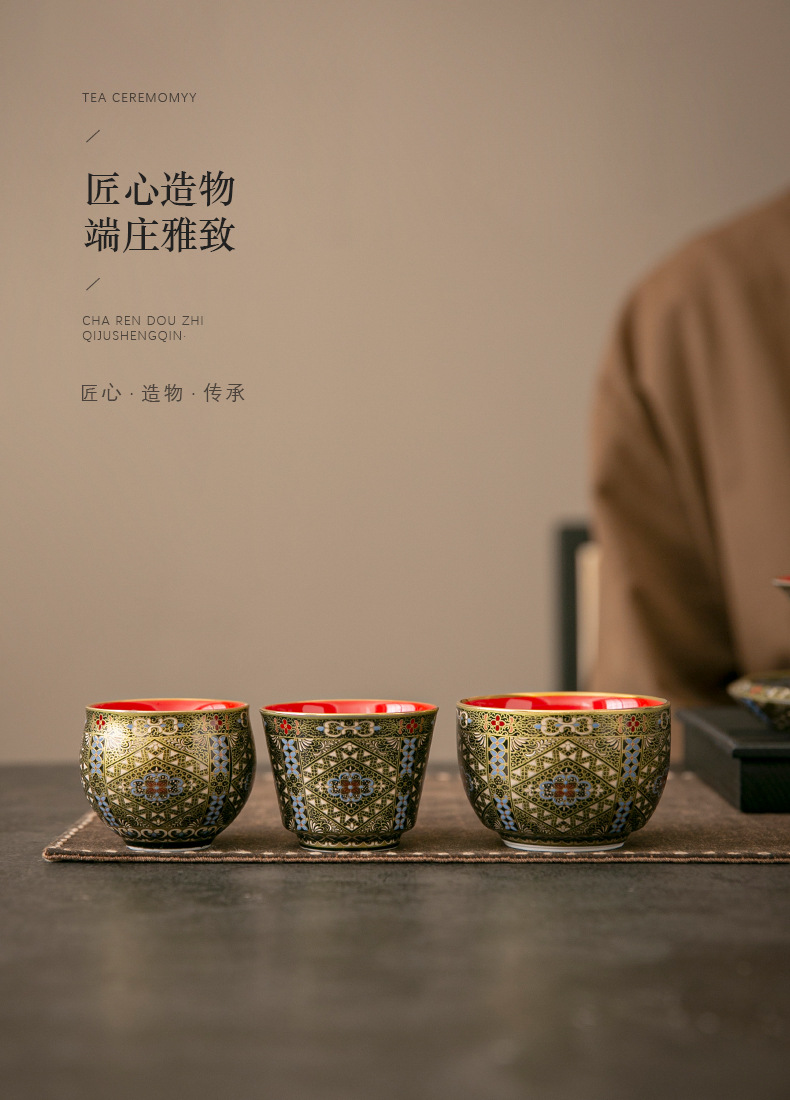 敦煌向阳花开主人杯茶盏家用个人专用鎏金茶杯高档珐琅彩功夫茶具