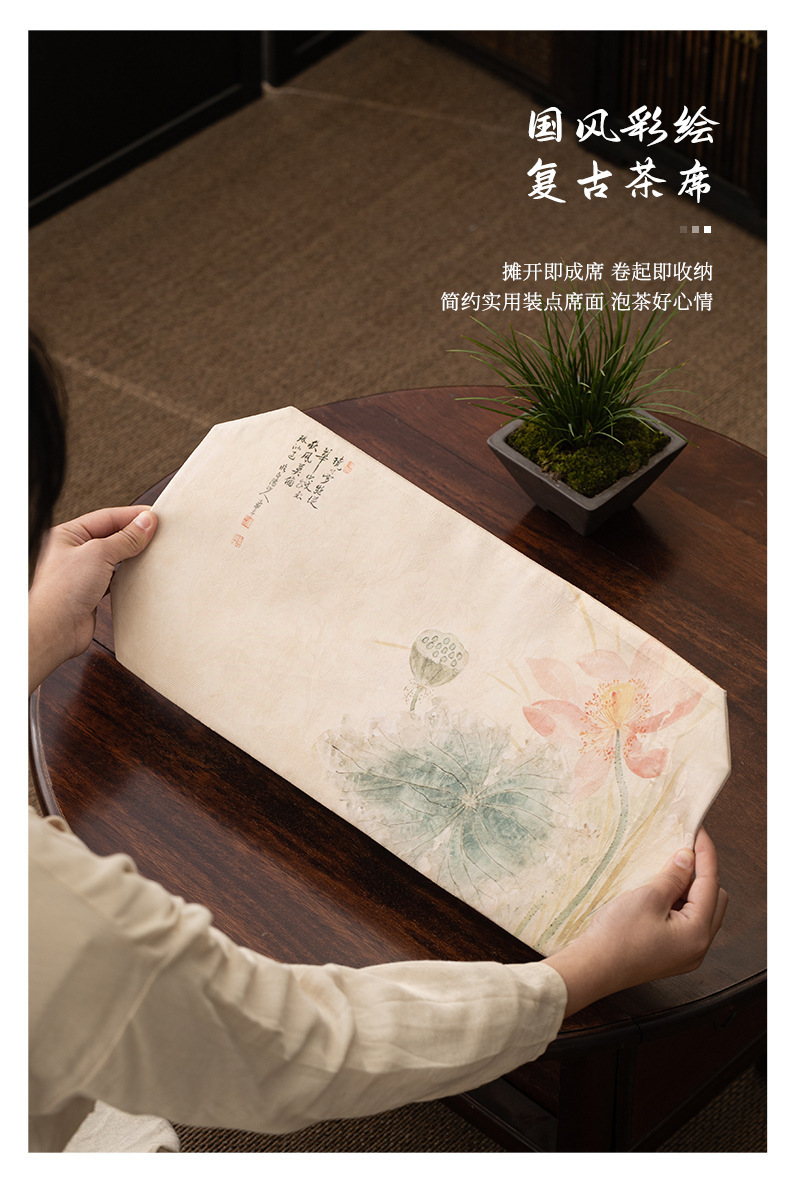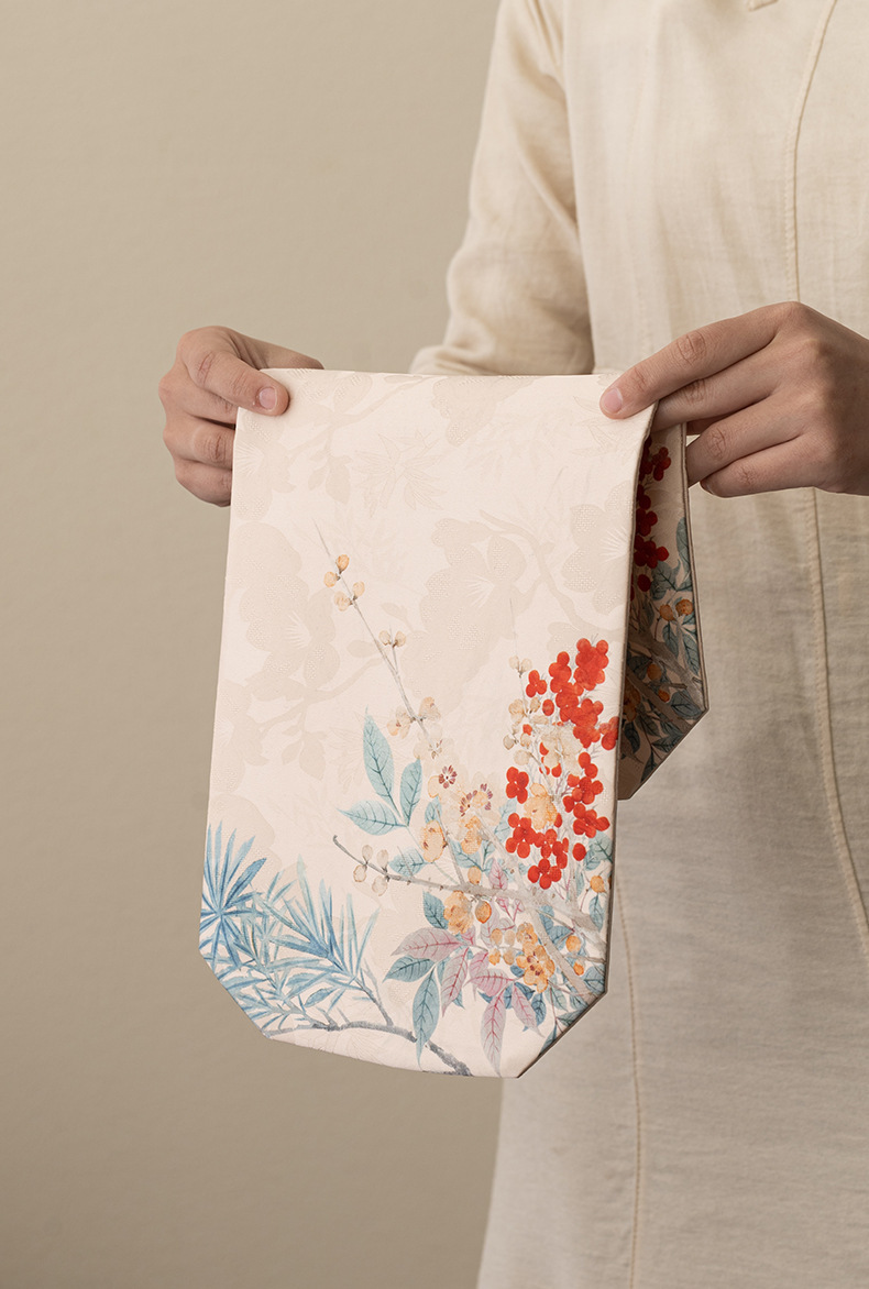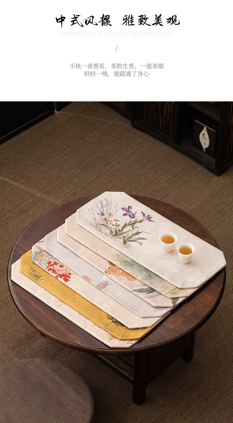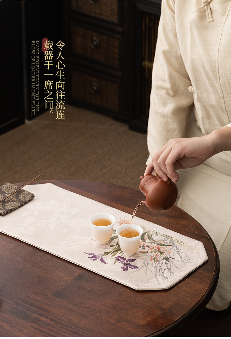 禅意茶席茶桌布新中式客厅桌旗茶桌茶垫复古高端轻奢织锦云松茶旗