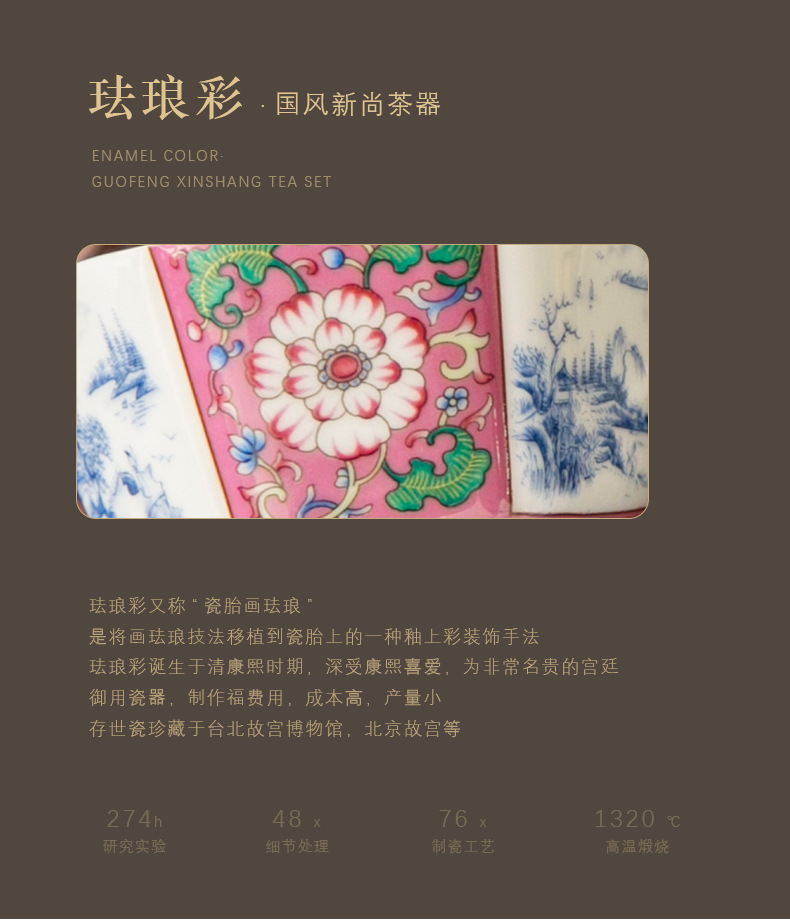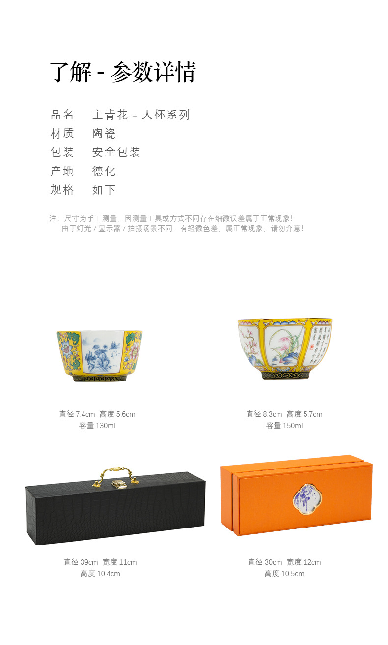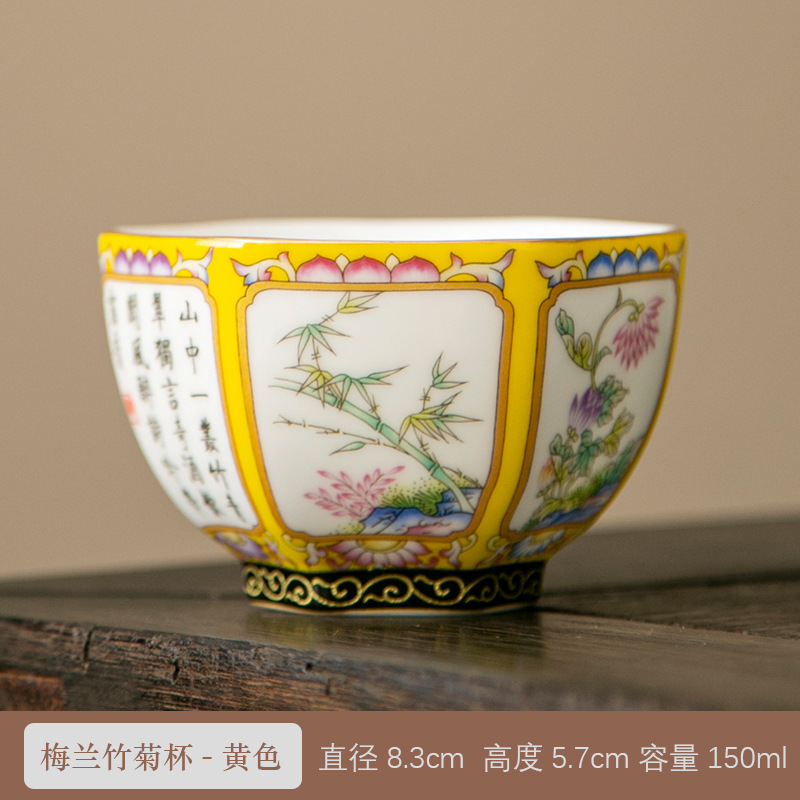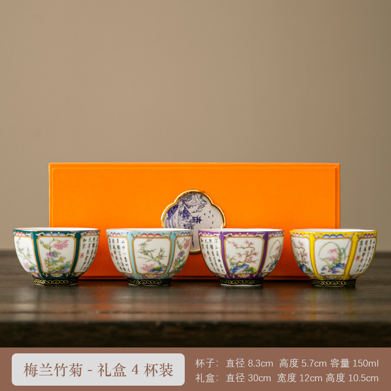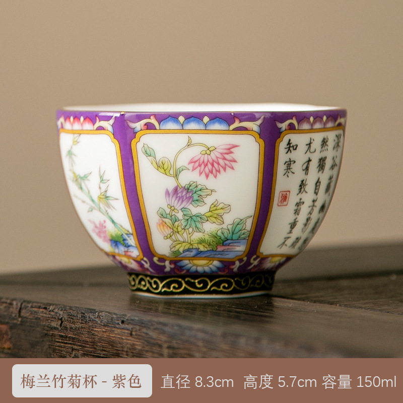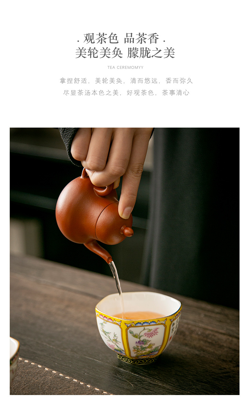 轻奢珐琅彩单个陶瓷主人杯功夫茶具家用六方茶盏杯礼盒套装伴手礼