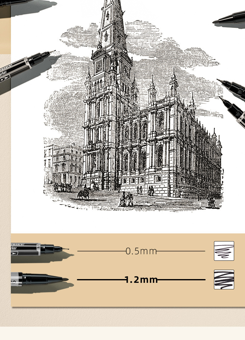 得力6824记号笔粗细小双头美术勾线笔光盘马克笔办公用油性笔批发