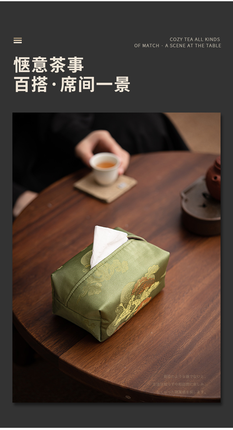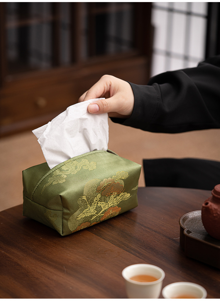 锦缎纸巾包织锦云松布艺纸巾抽纸盒茶席茶室日用防尘收纳袋批发