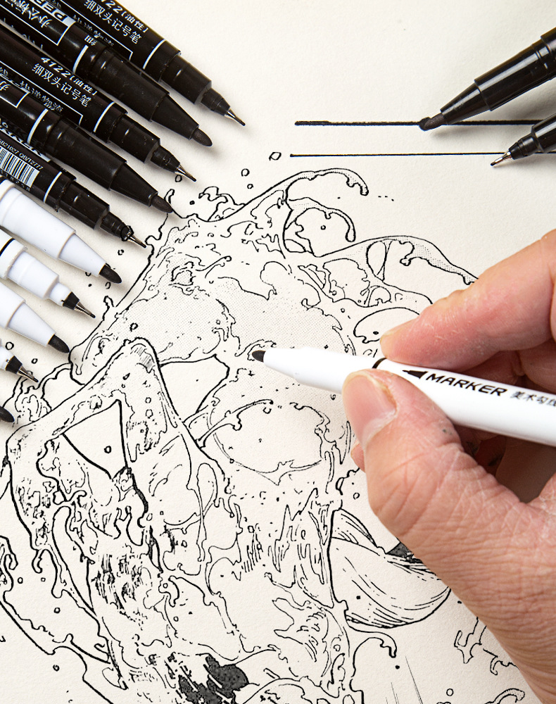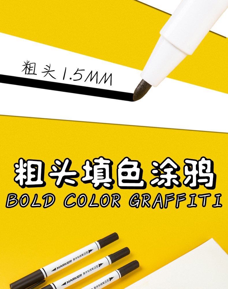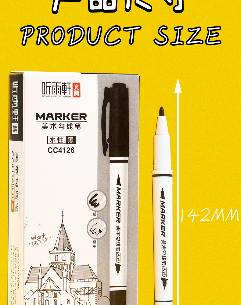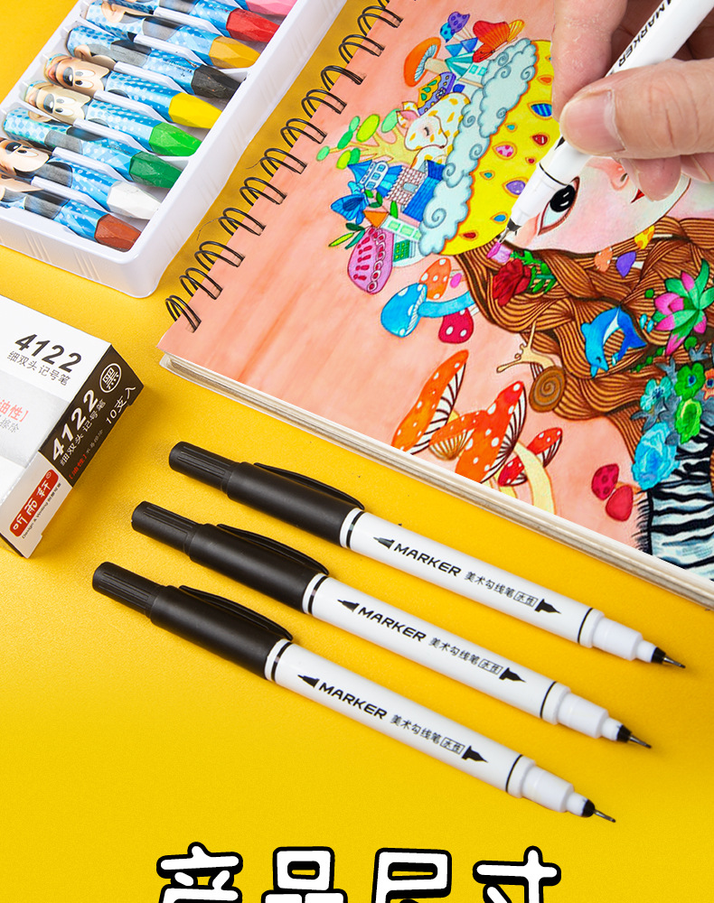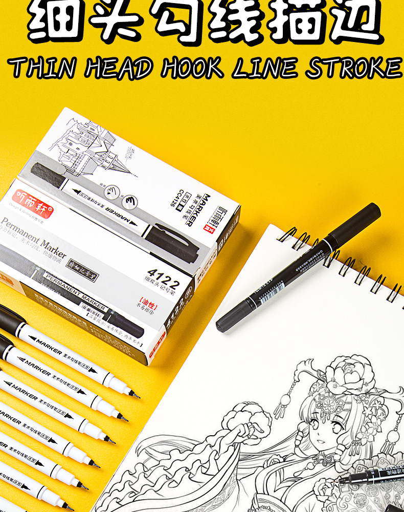 100支听雨轩美术油性勾线笔小双头记号笔水性儿童绘画描边钩线笔