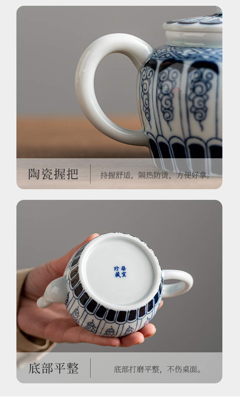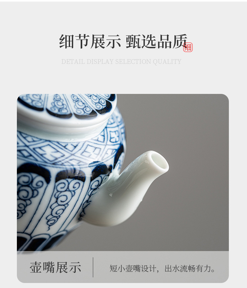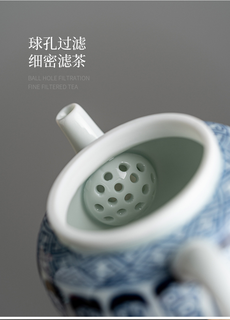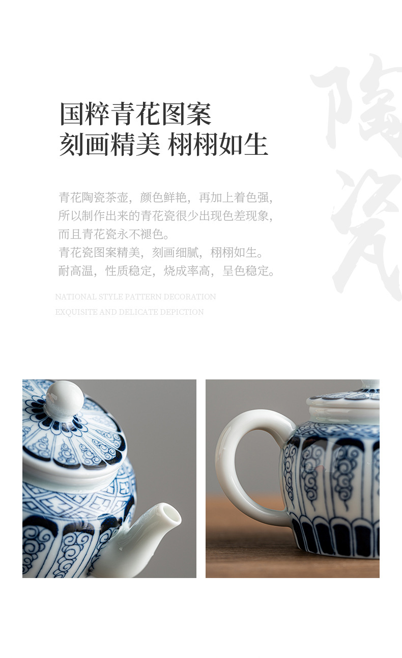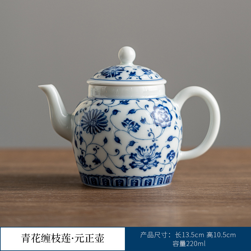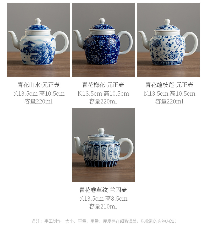 中式釉下彩青花瓷山水纹茶壶陶瓷泡茶家用功夫茶具釉下彩迷你单壶