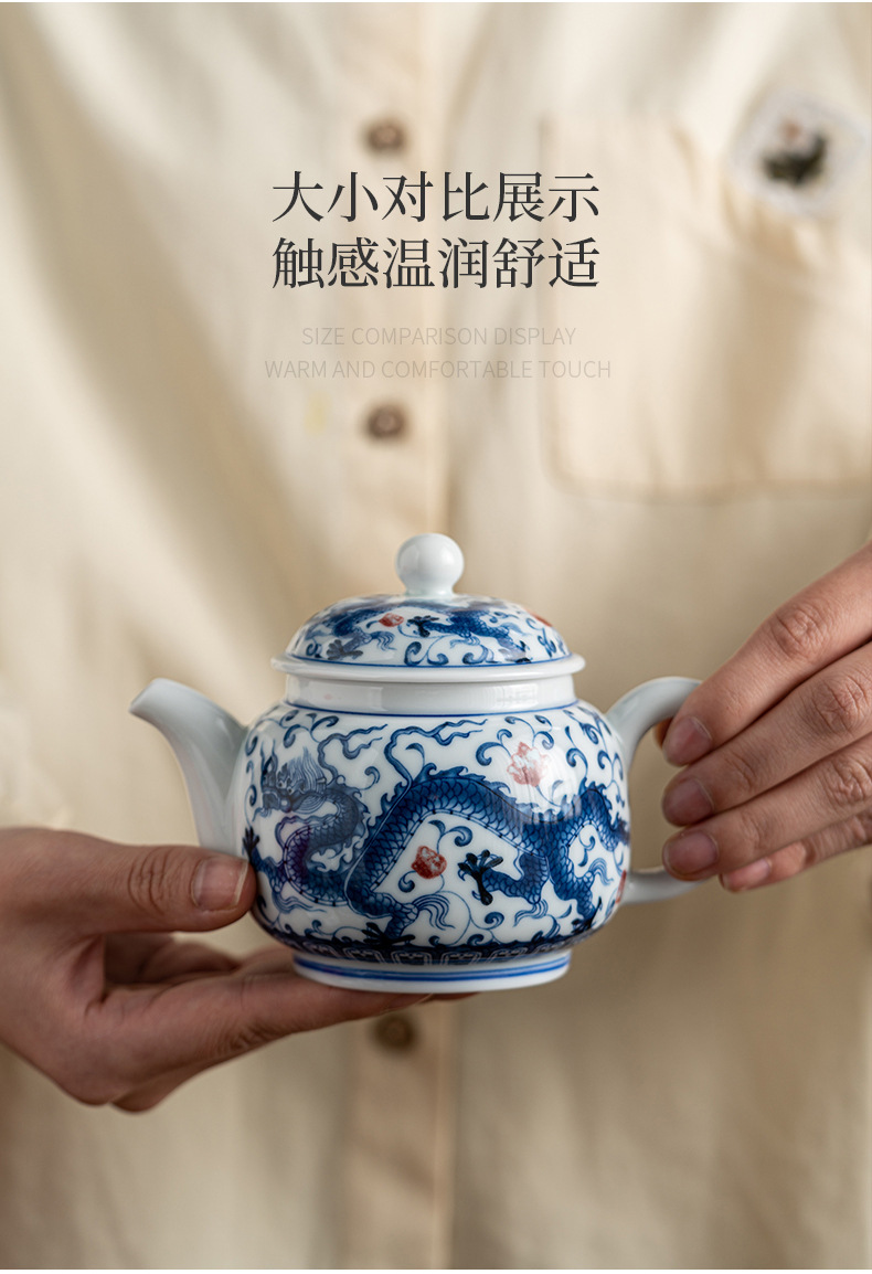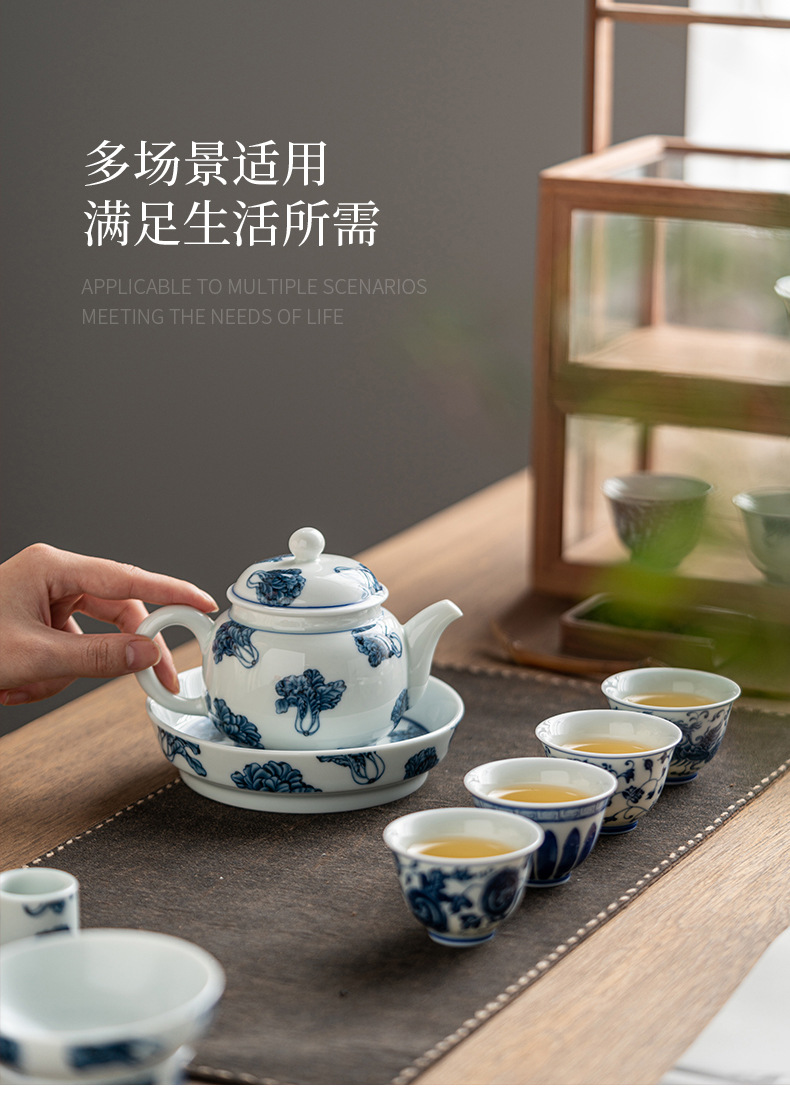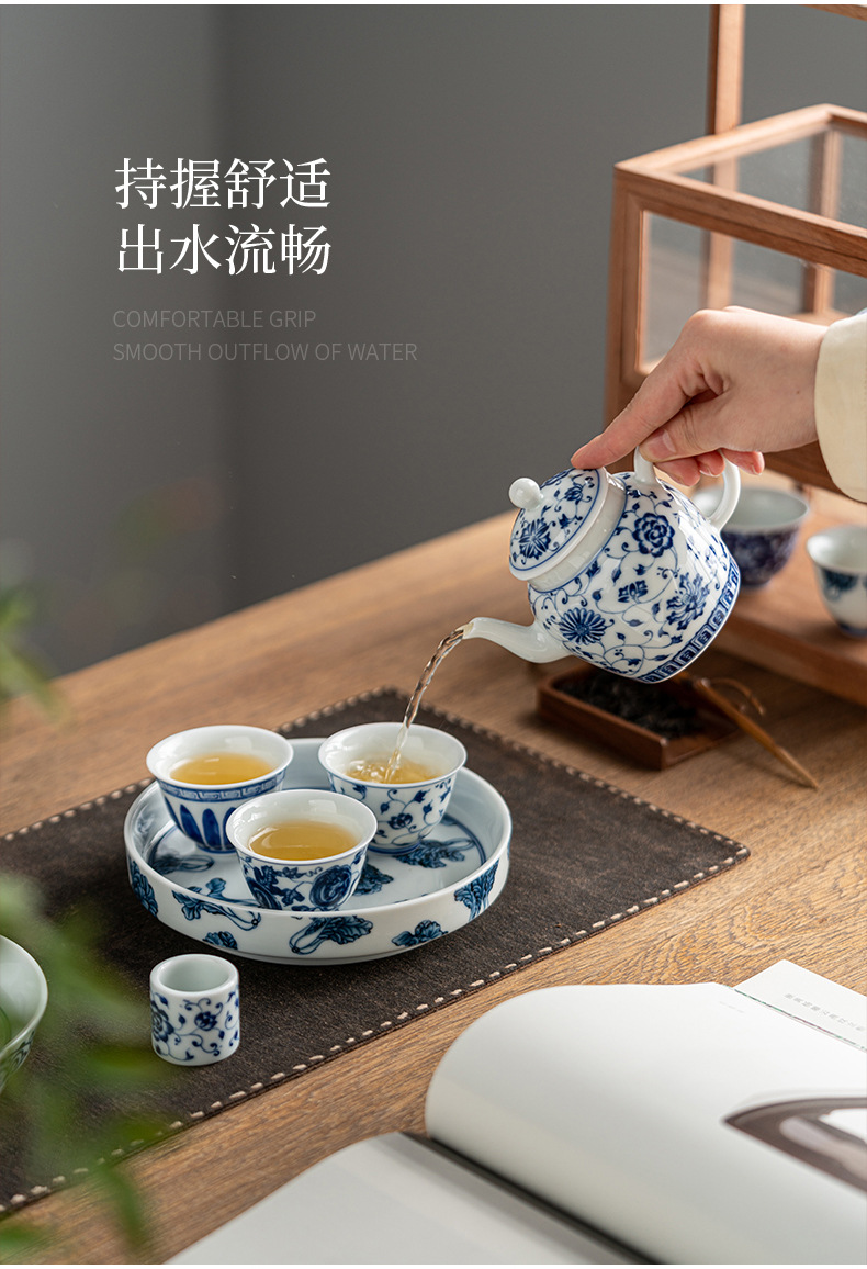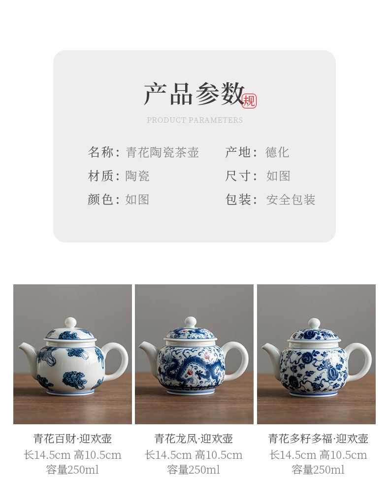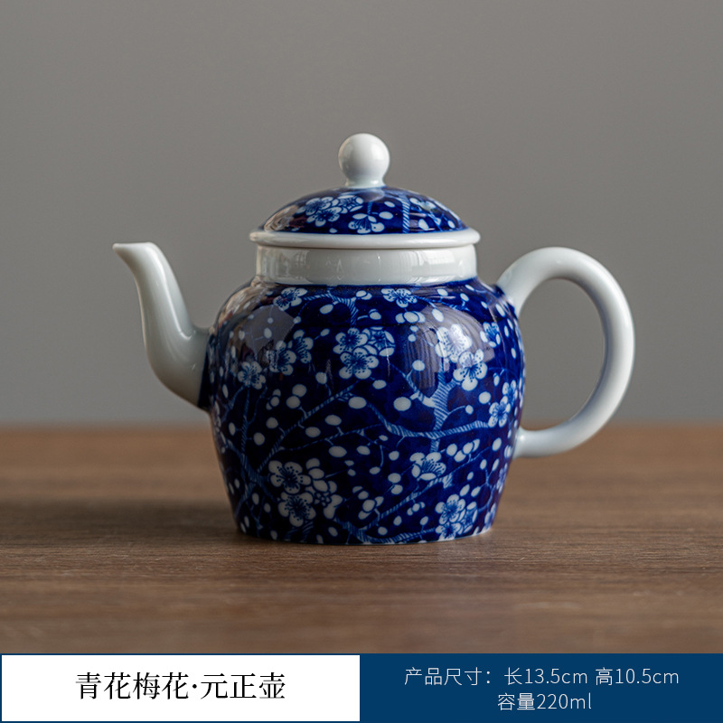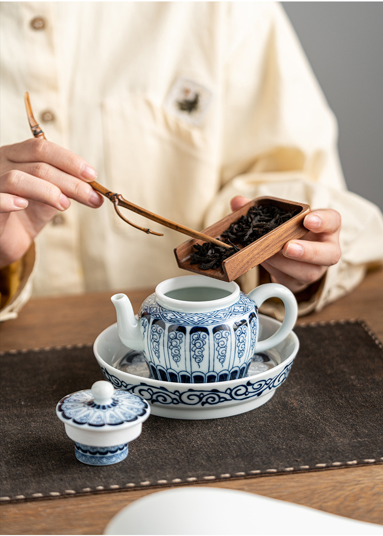 中式釉下彩青花瓷山水纹茶壶陶瓷泡茶家用功夫茶具釉下彩迷你单壶