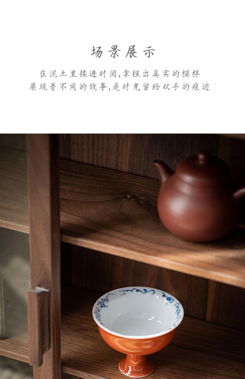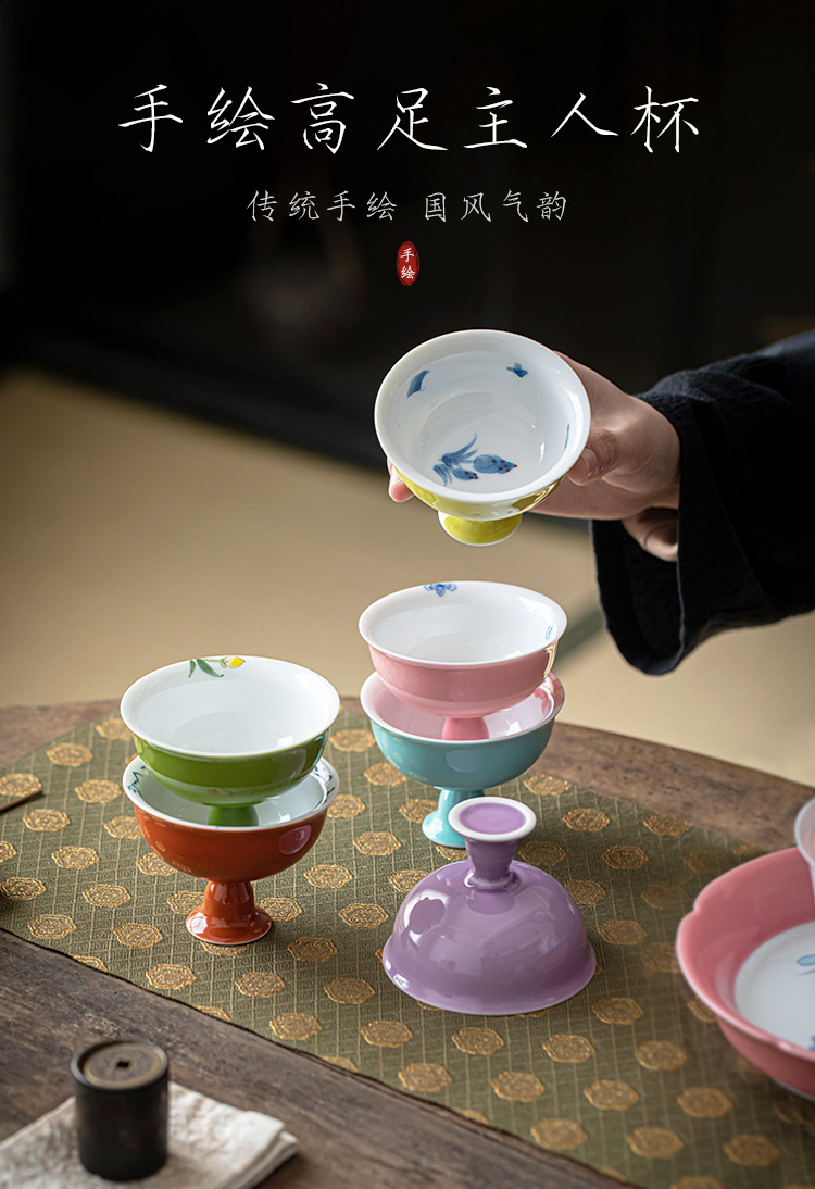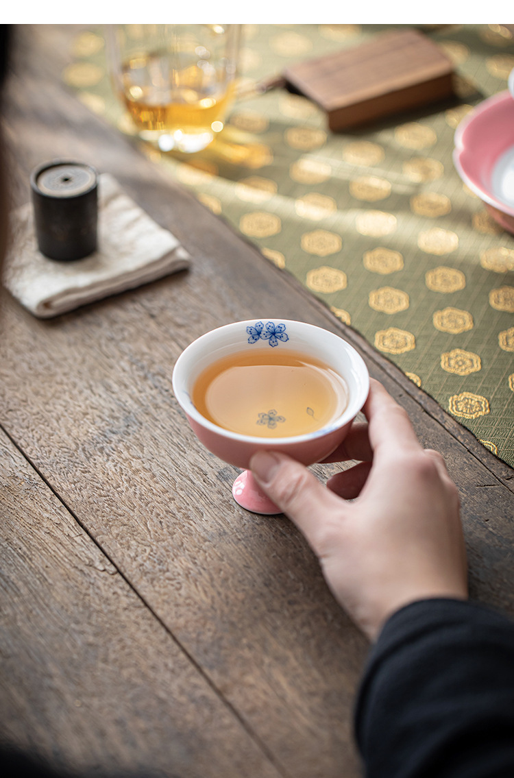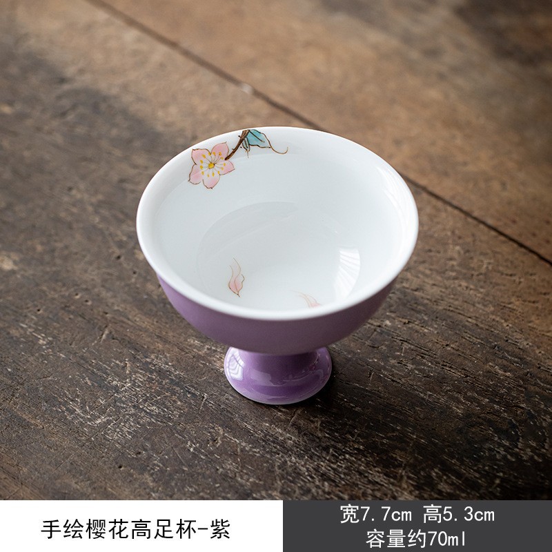 手绘樱花高足茶杯子粉色主人杯单杯女品茗杯单个茶碗陶瓷大号茶盏