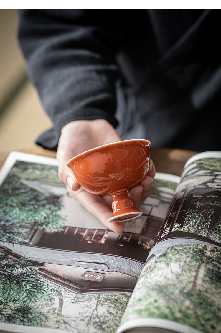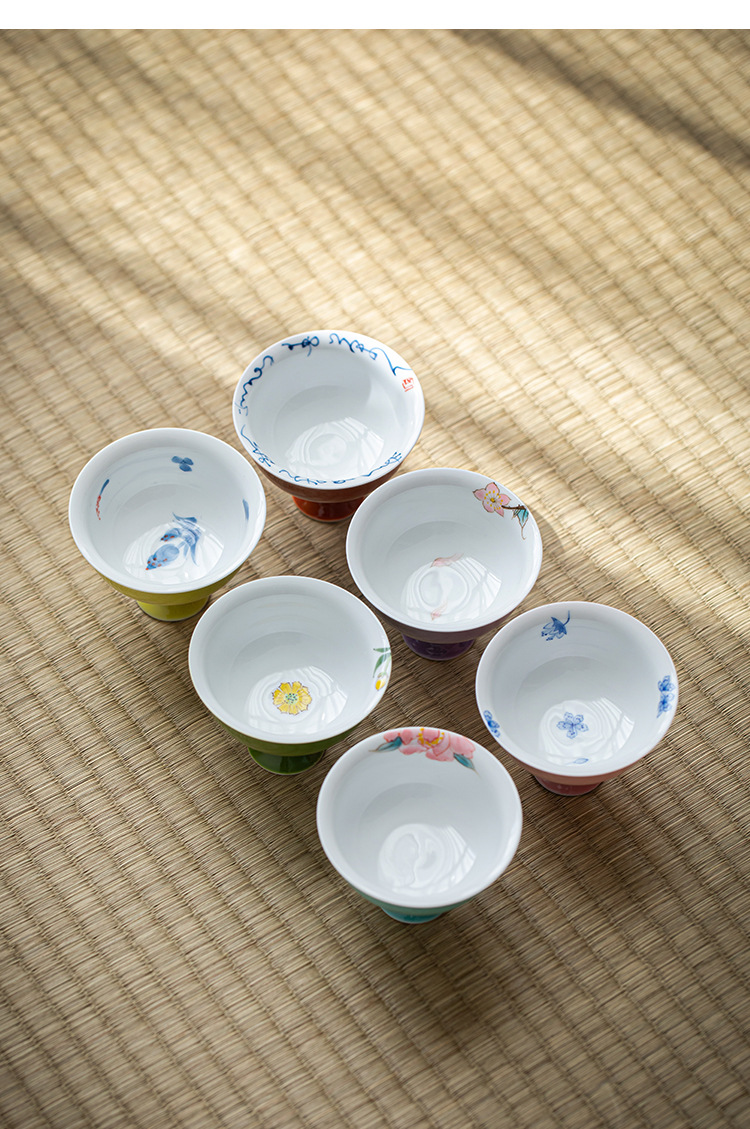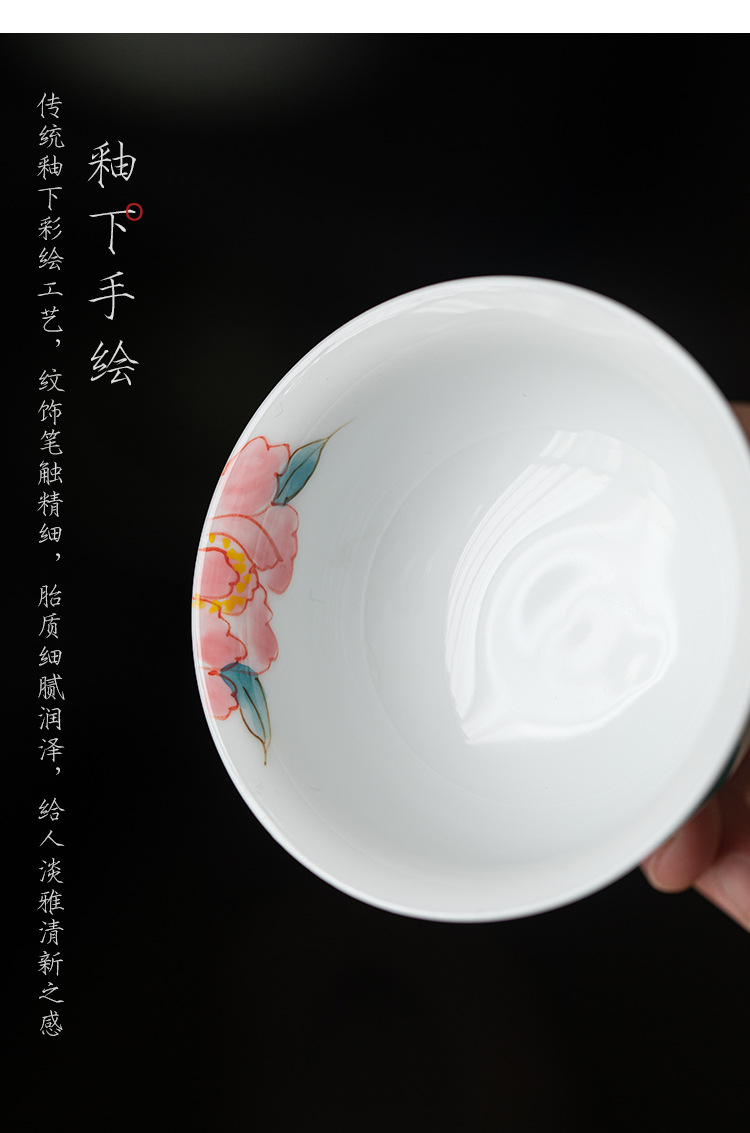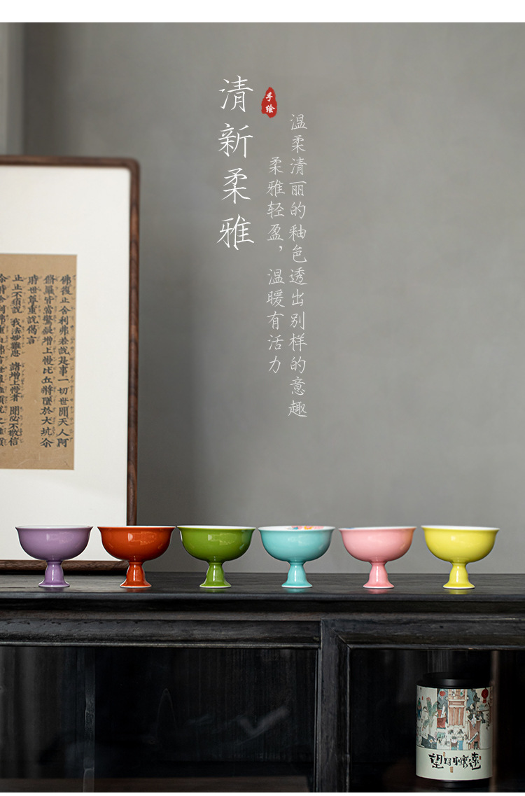 手绘樱花高足茶杯子粉色主人杯单杯女品茗杯单个茶碗陶瓷大号茶盏