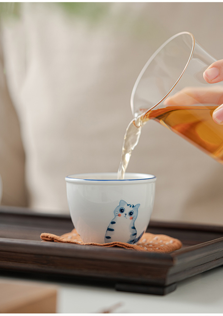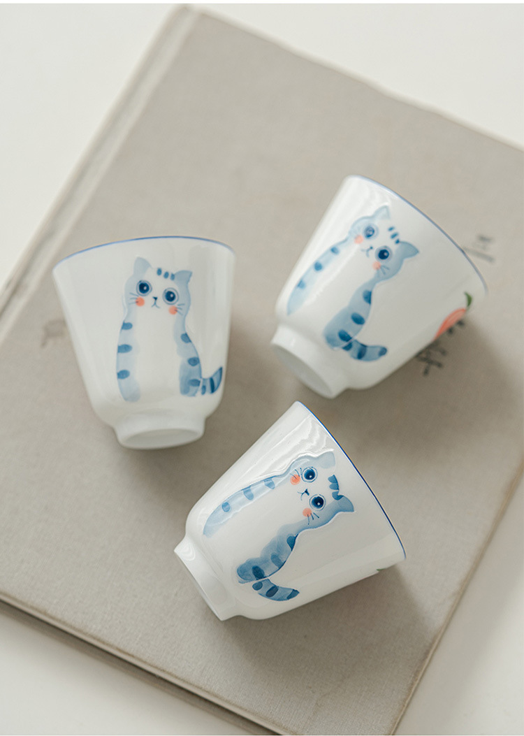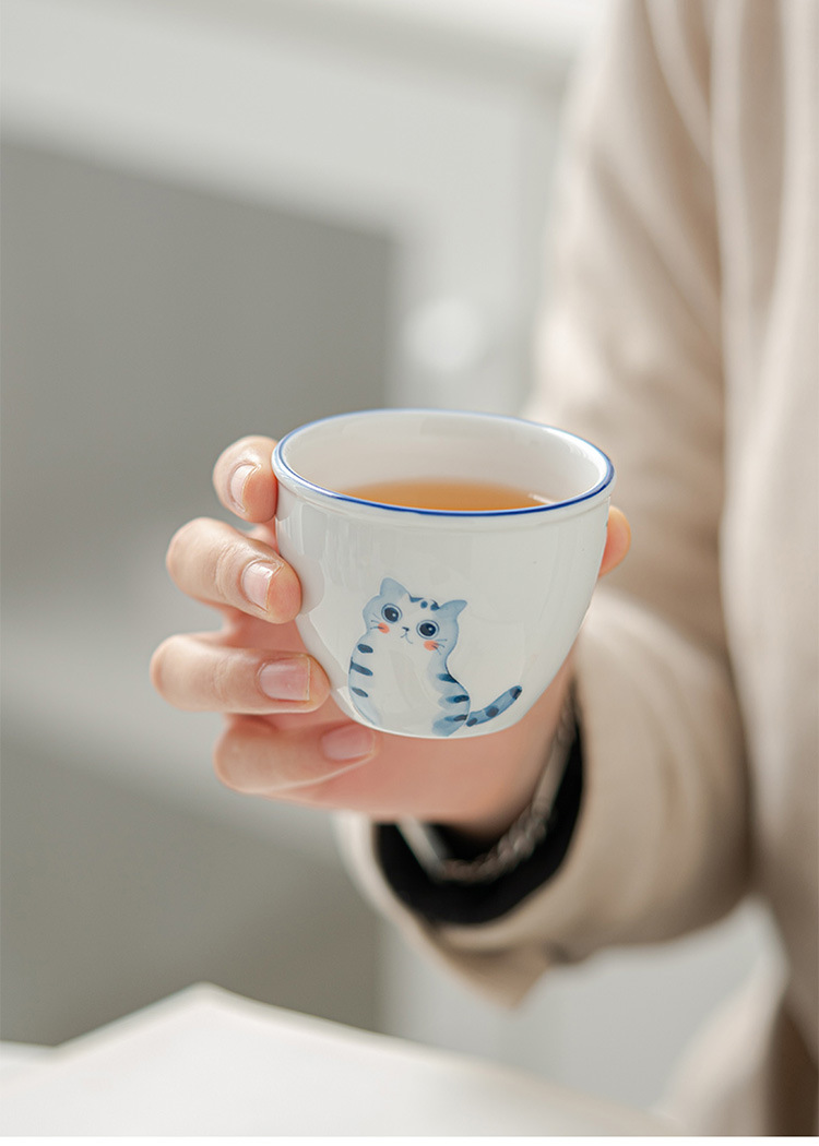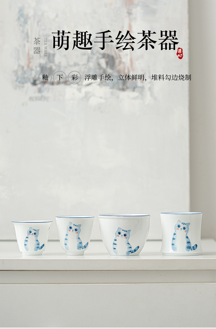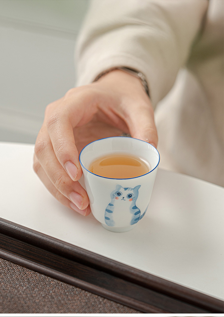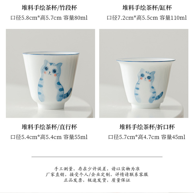 立体手绘釉下彩陶瓷品茗杯功夫茶具女士精致茶杯主人杯单杯泡茶杯