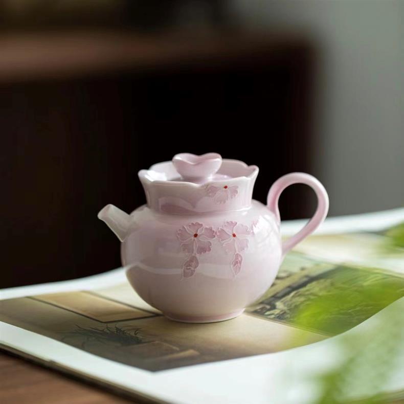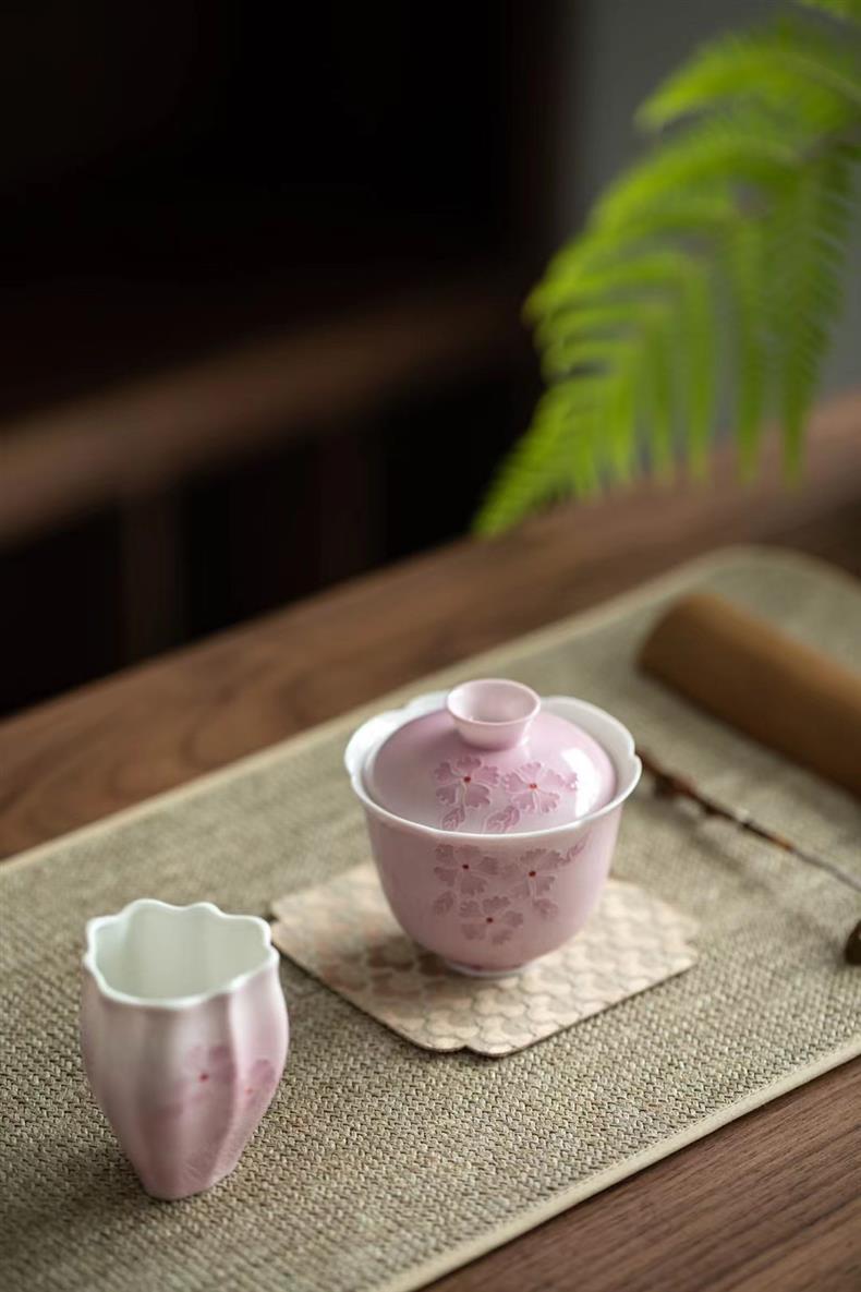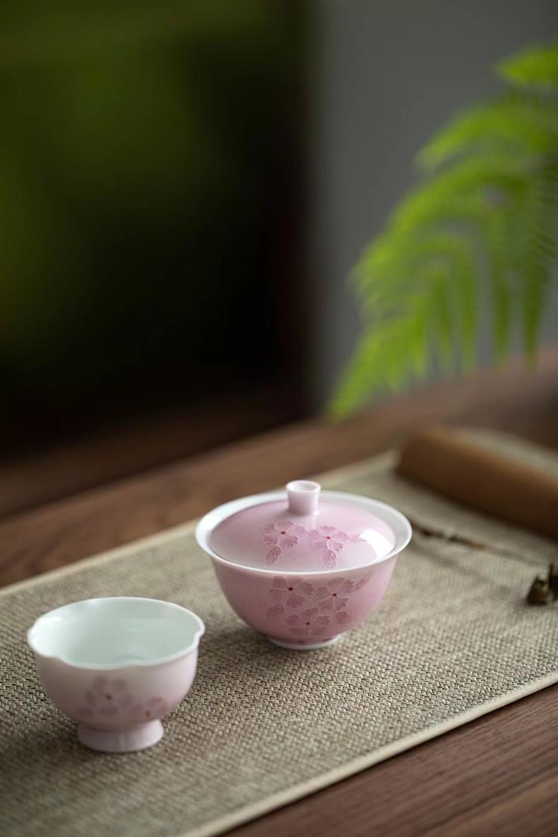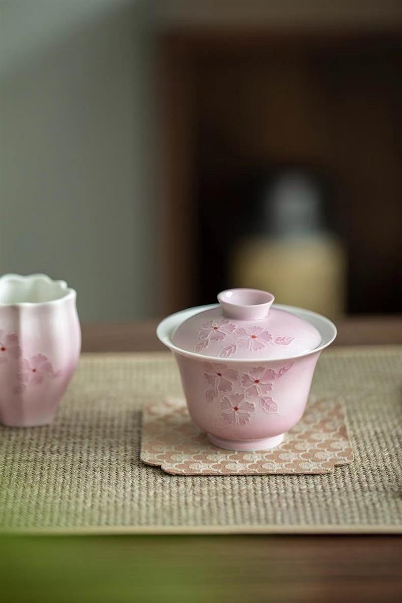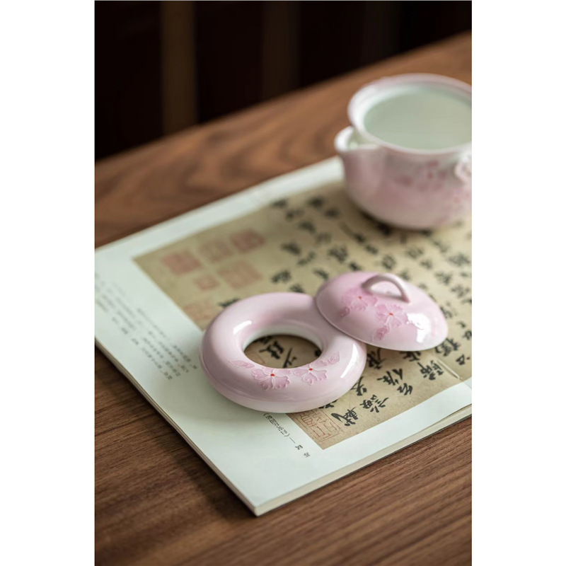 新品粉彩堆料樱花釉下彩手绘高温茶壶茶杯盖碗功夫茶具送礼佳品