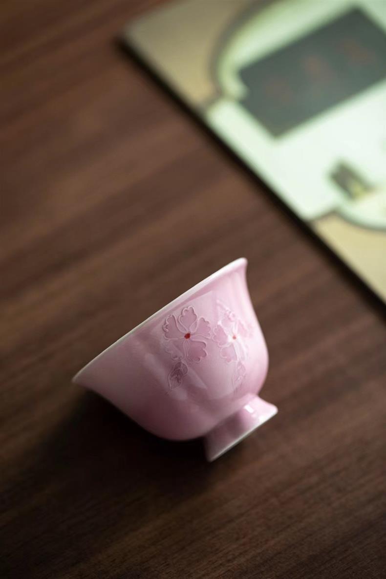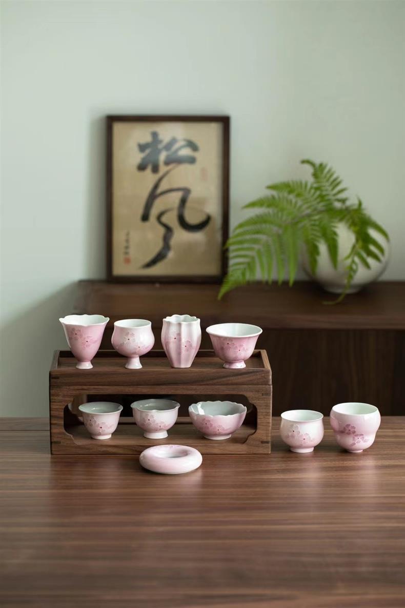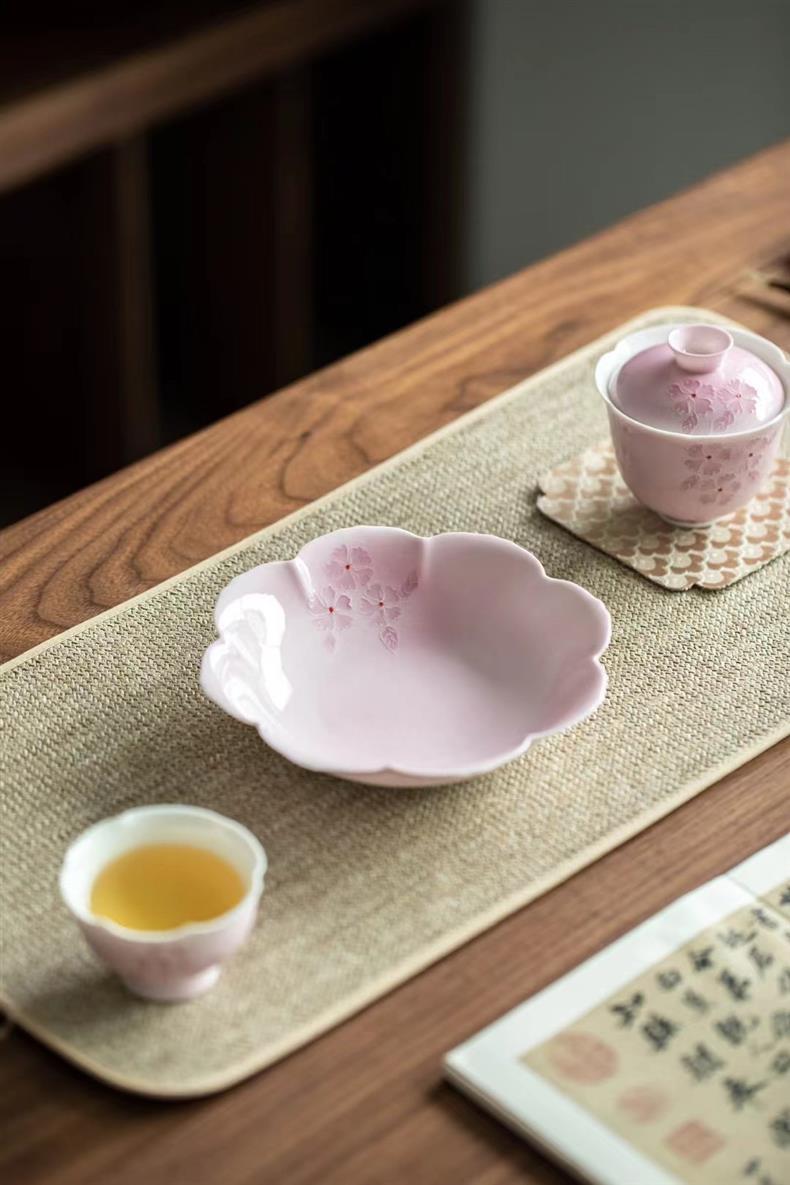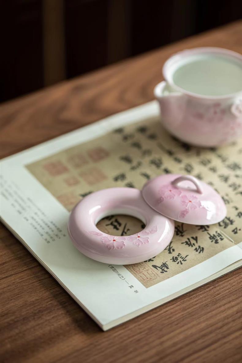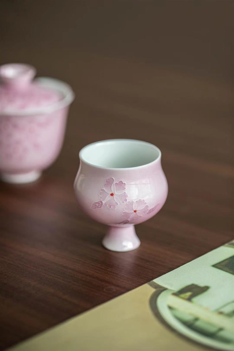 新品粉彩堆料樱花釉下彩手绘高温茶壶茶杯盖碗功夫茶具送礼佳品