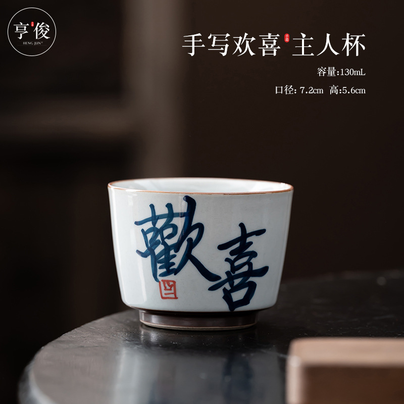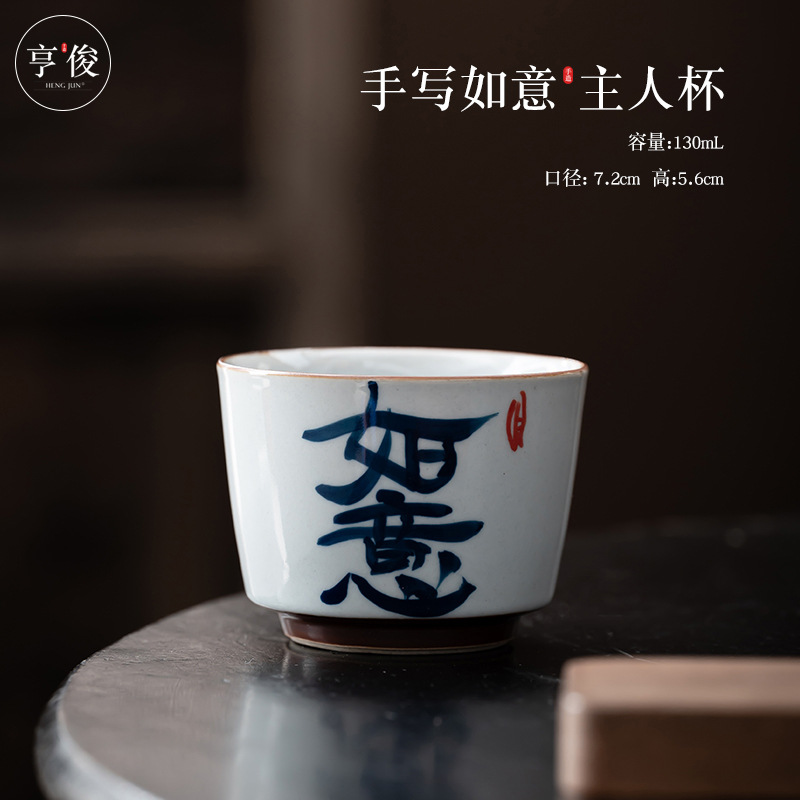 主人杯手写文字陶瓷单杯功夫茶具杯子个人专用茶杯高档礼盒装批发