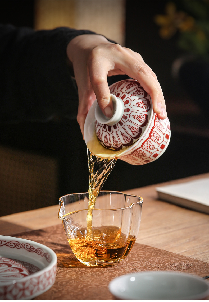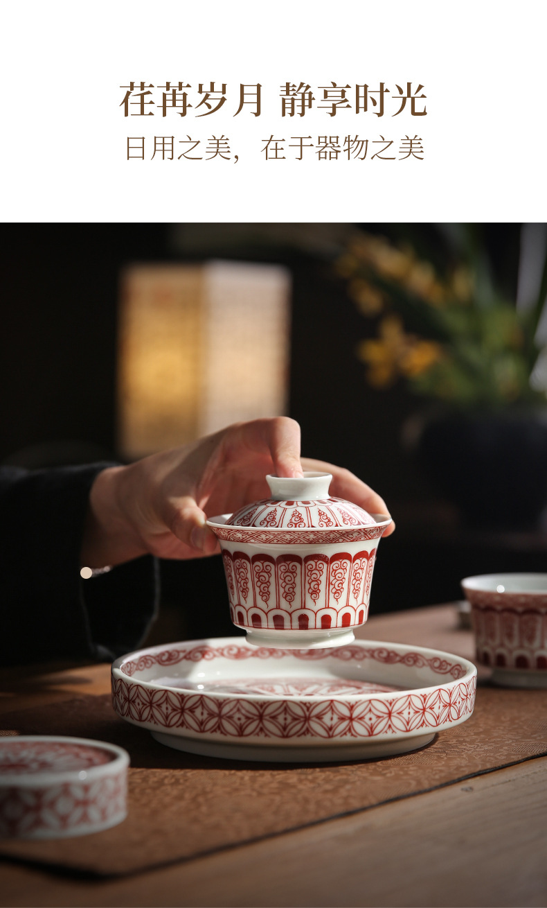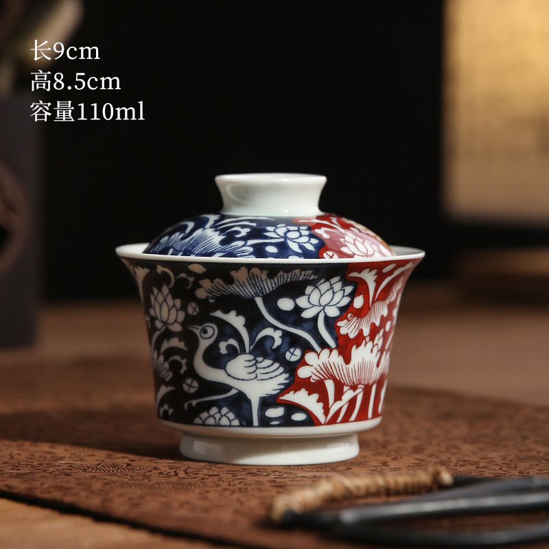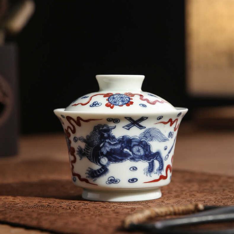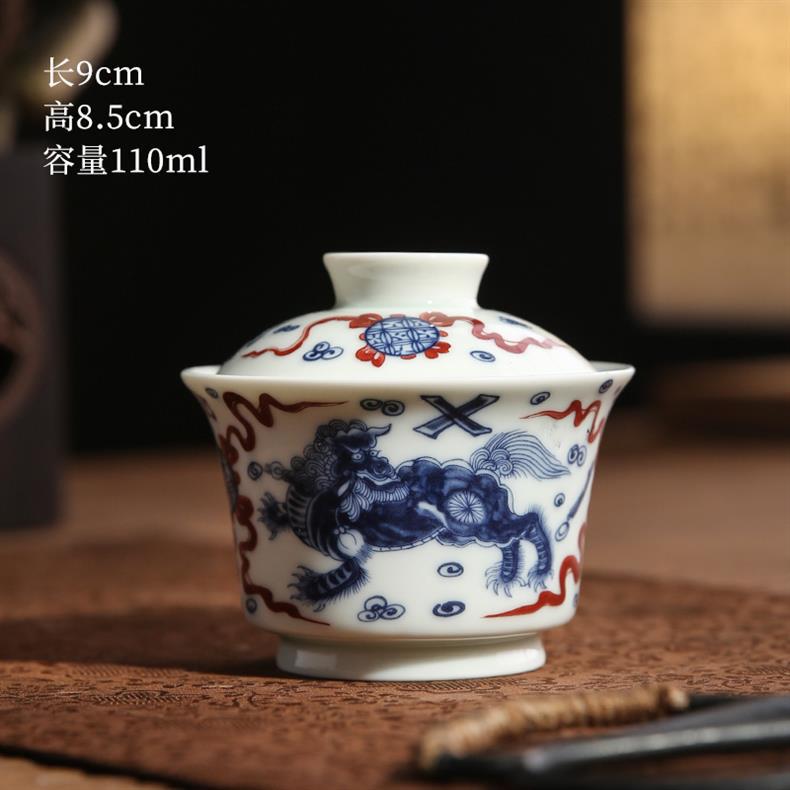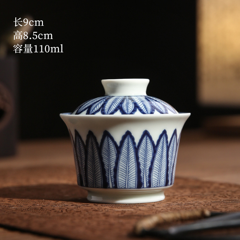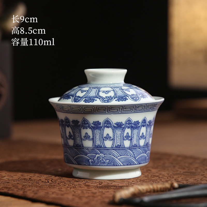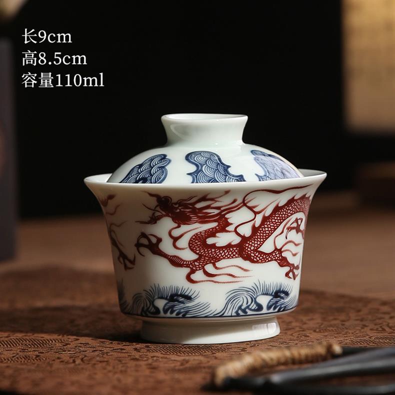 青花龙纹盖碗中式复古景德两才碗陶瓷家用马蹄盖碗功夫茶具泡茶器
