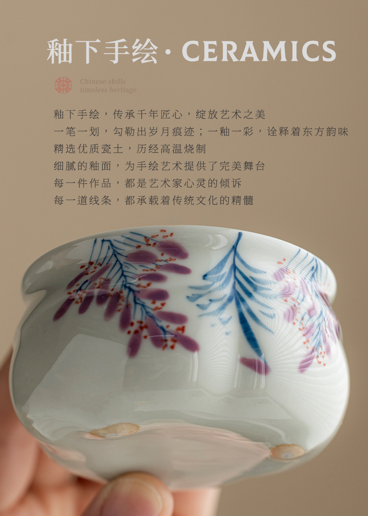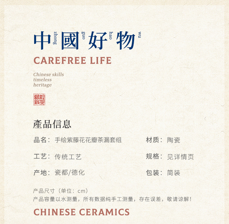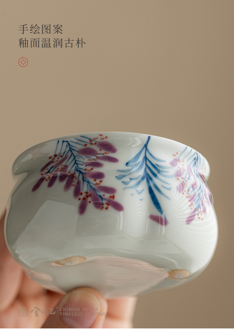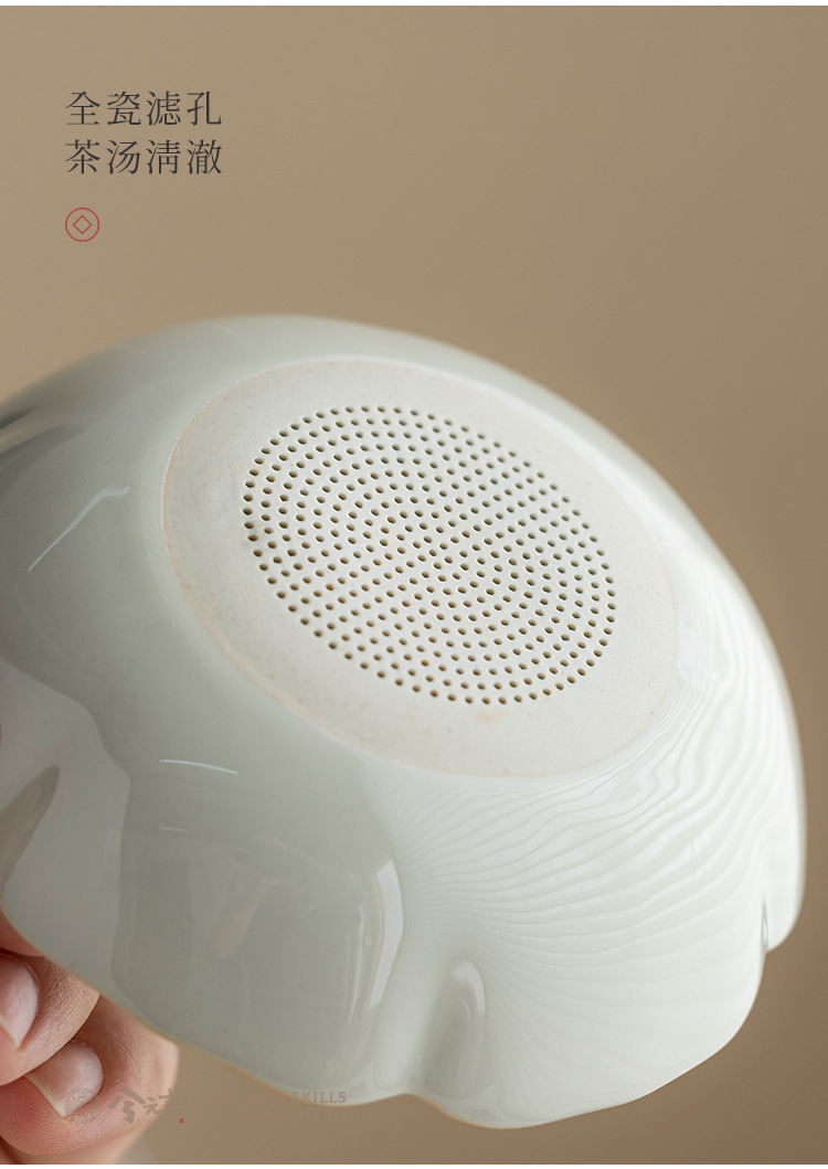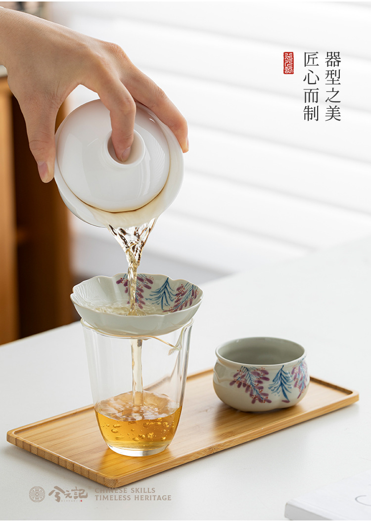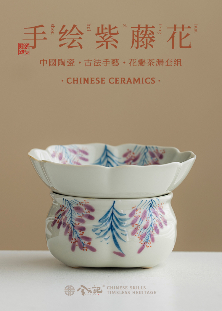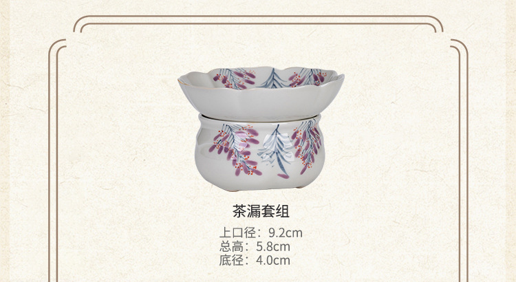 手绘釉下彩紫藤花茶漏茶滤陶瓷茶叶过滤网一体家用滤茶器茶具配件