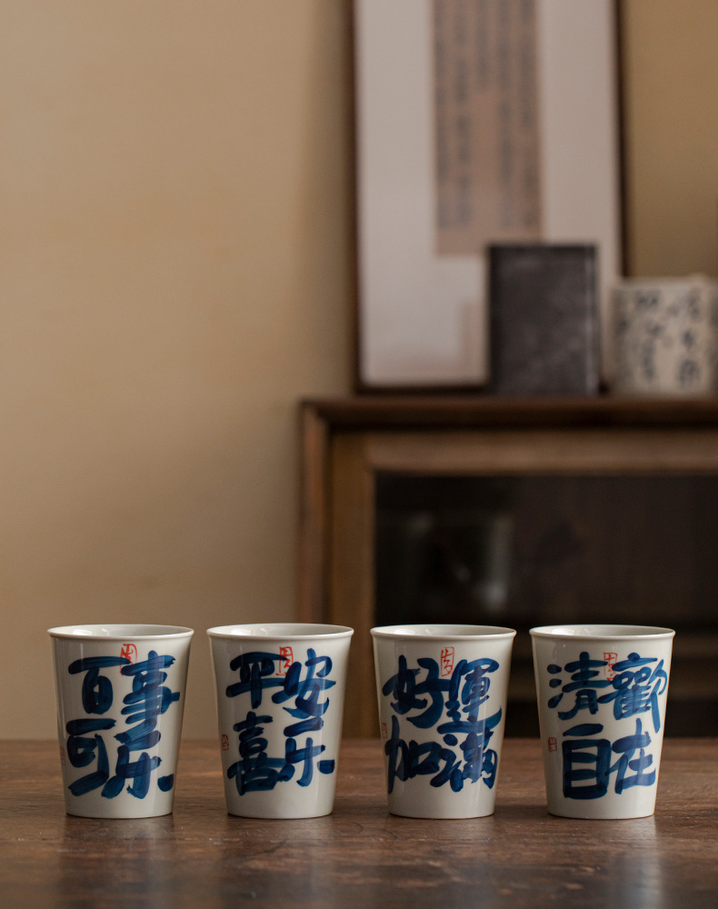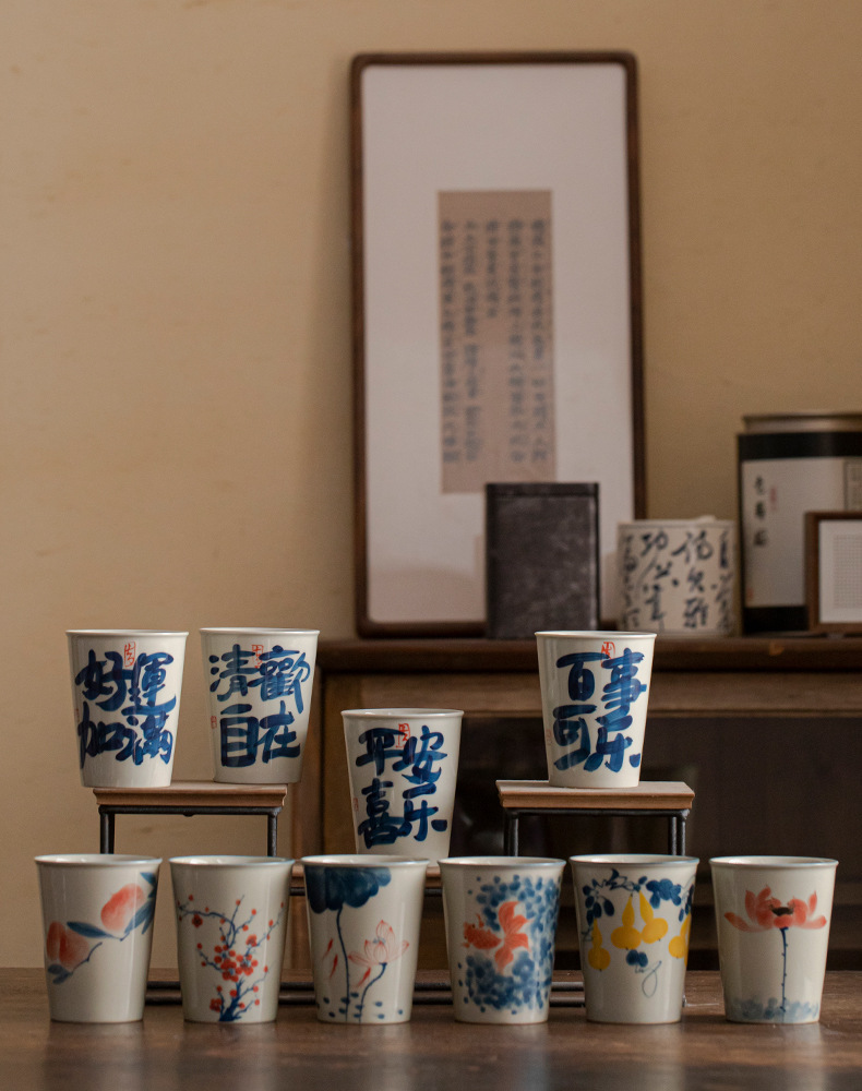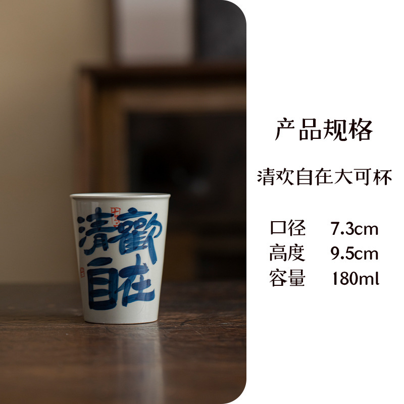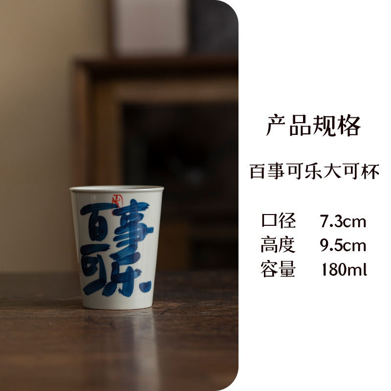 手绘茶杯釉下彩可乐杯主人杯创意家用功夫茶具陶瓷杯大容量水杯