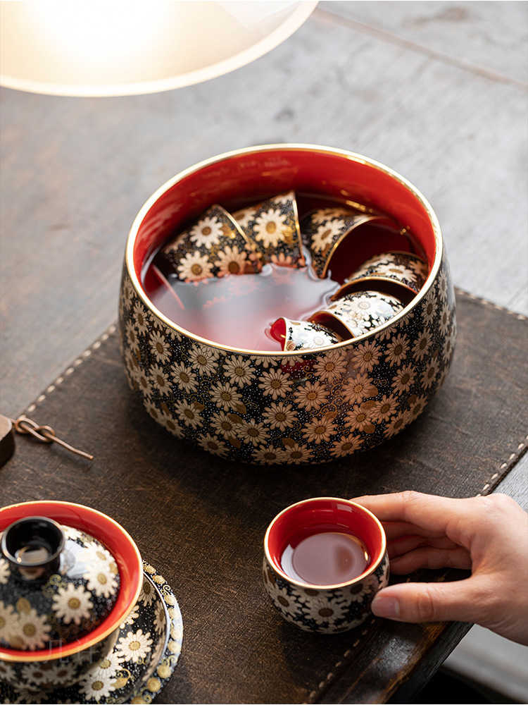 茶洗笔洗手工高档金银水缸缸废家用错茶渣号大茶具陶瓷建水批发