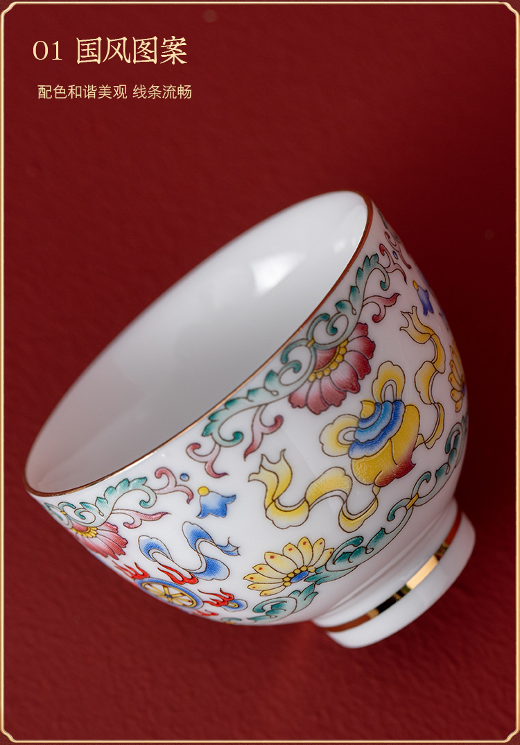珐琅彩茶杯陶瓷套装主人杯家用个人单杯茶盏复古高端茶杯伴手礼