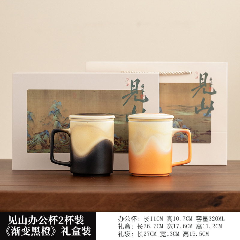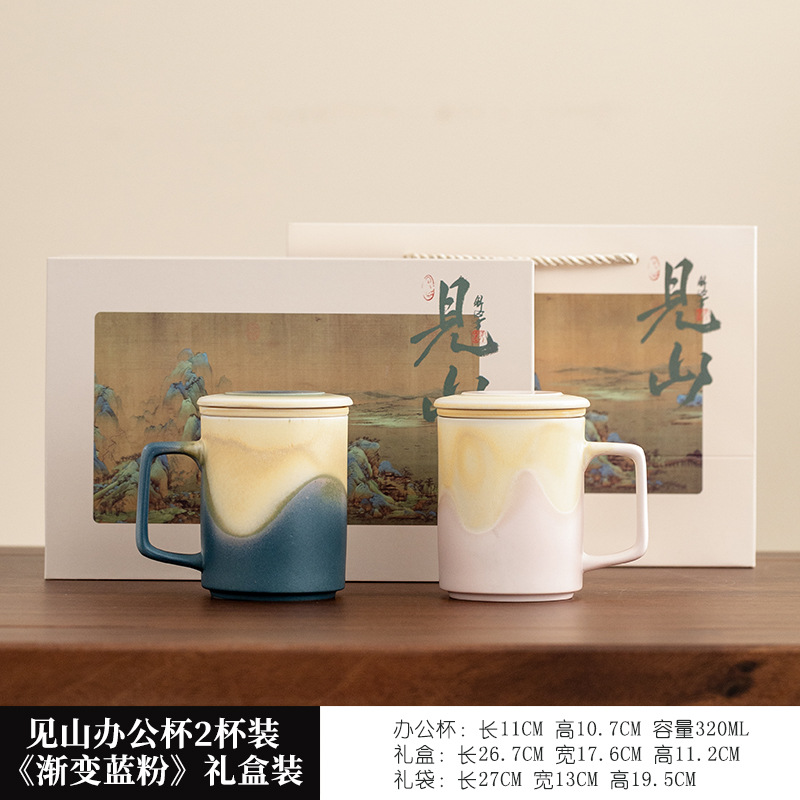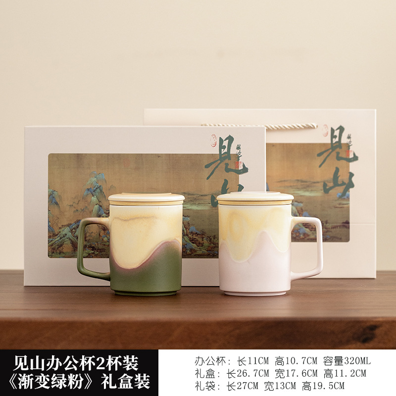 见山茶水分离茶杯陶瓷泡茶杯高颜值小众带盖过滤马克杯礼盒装logo