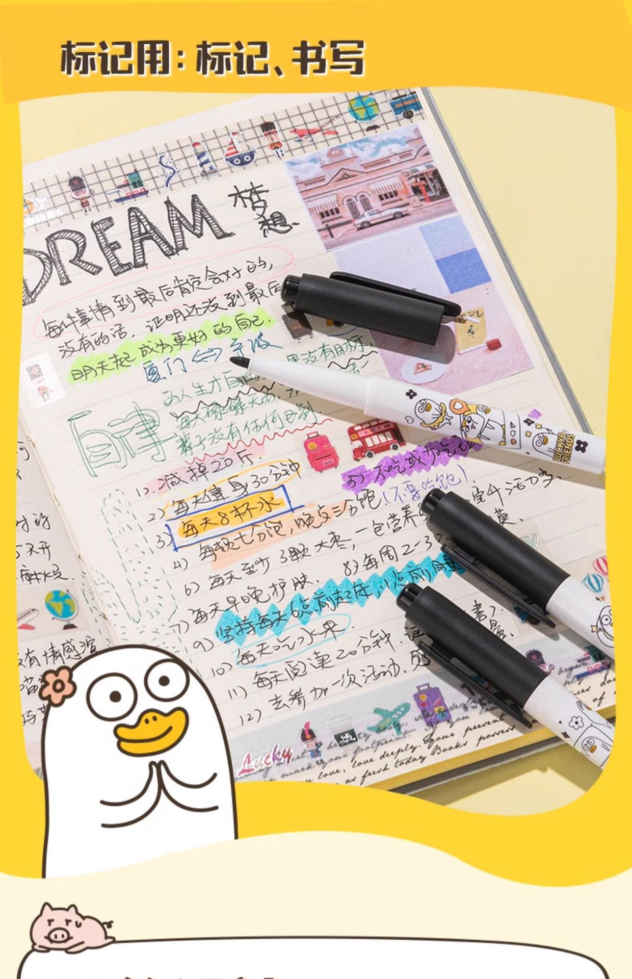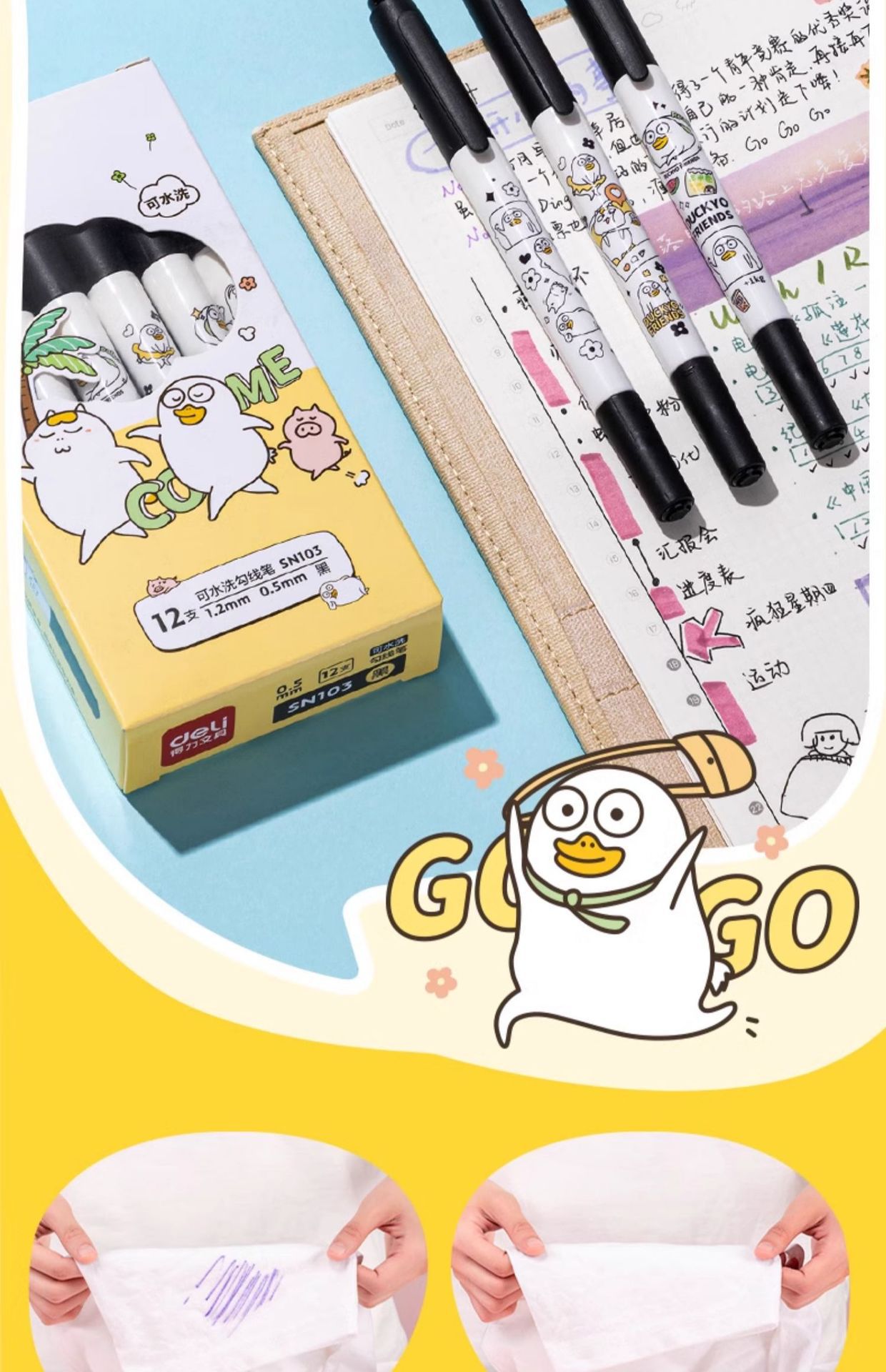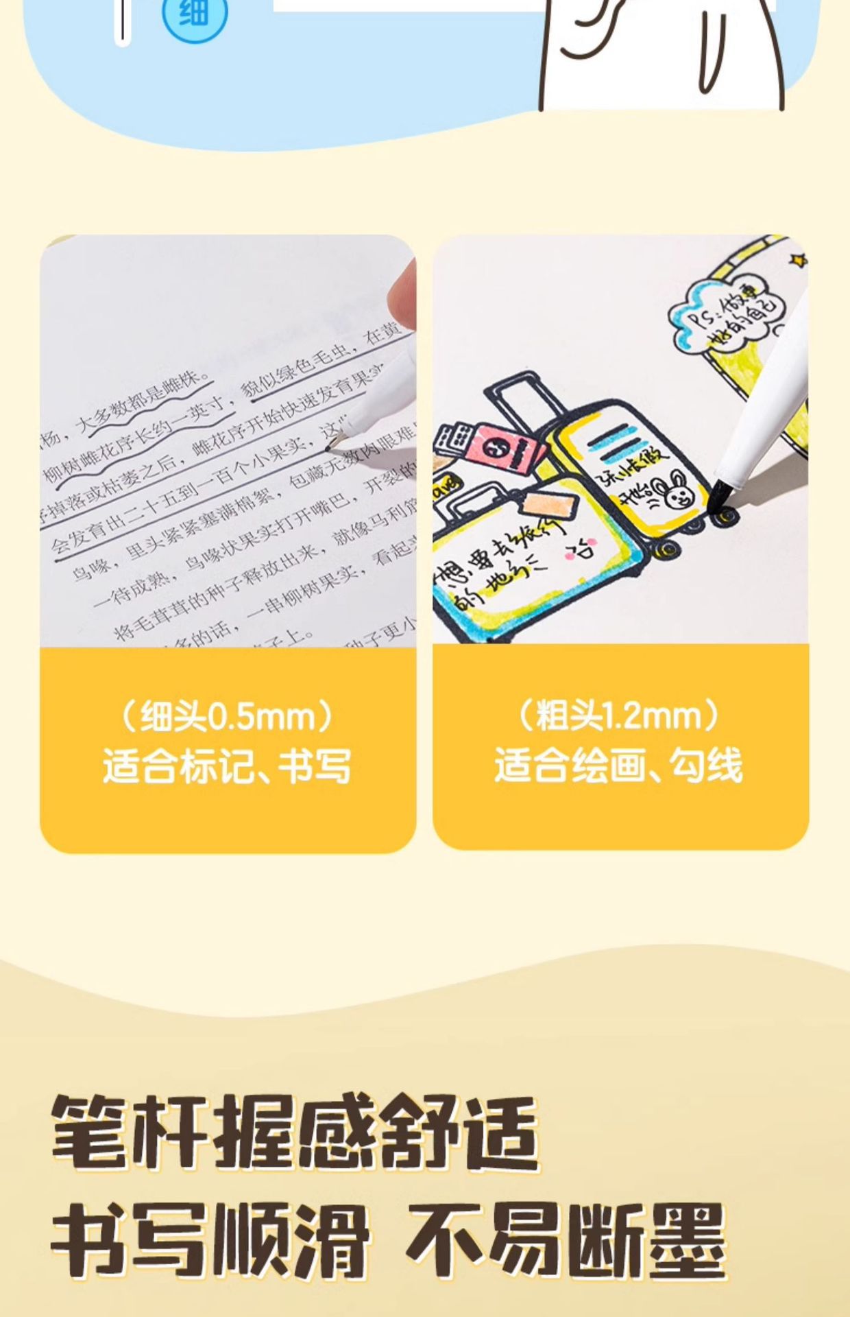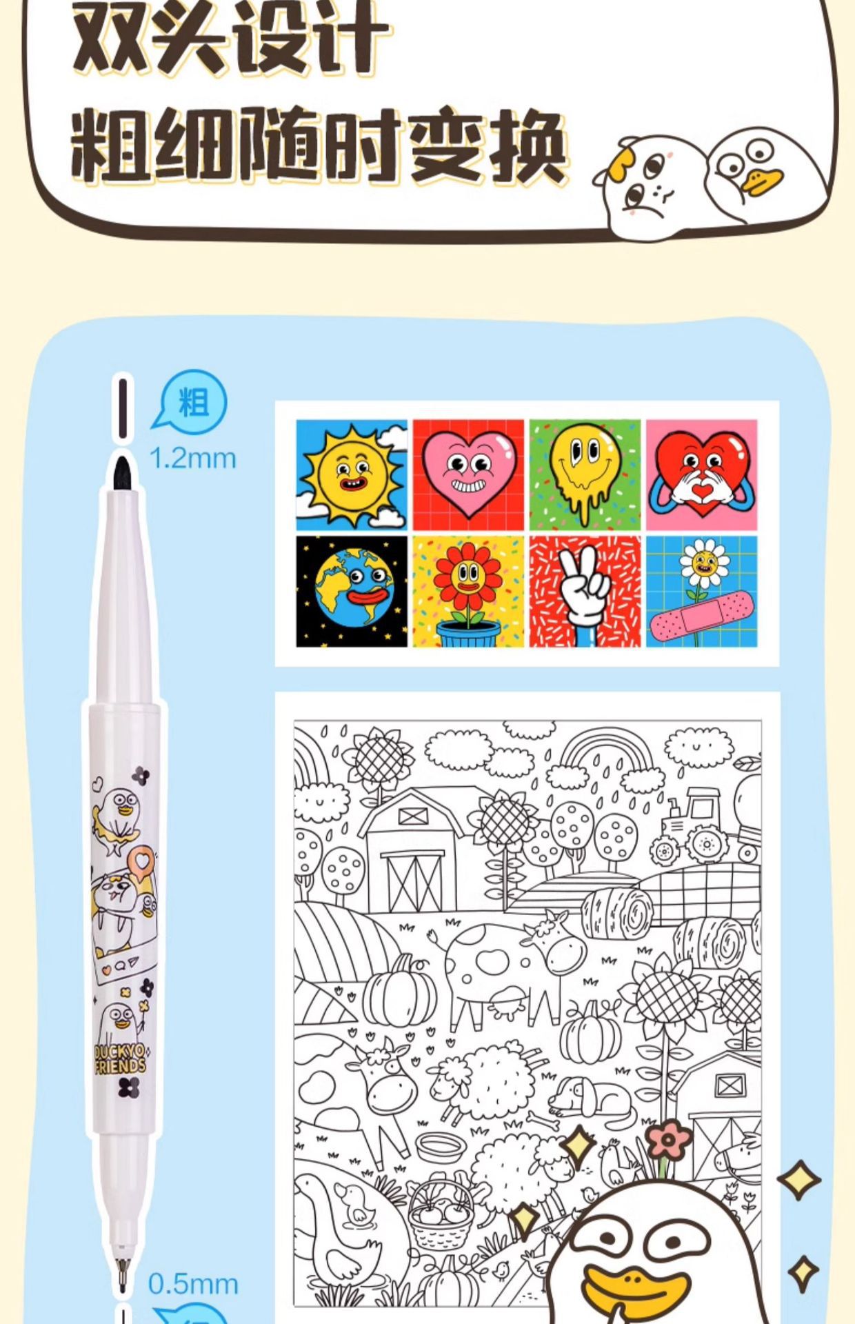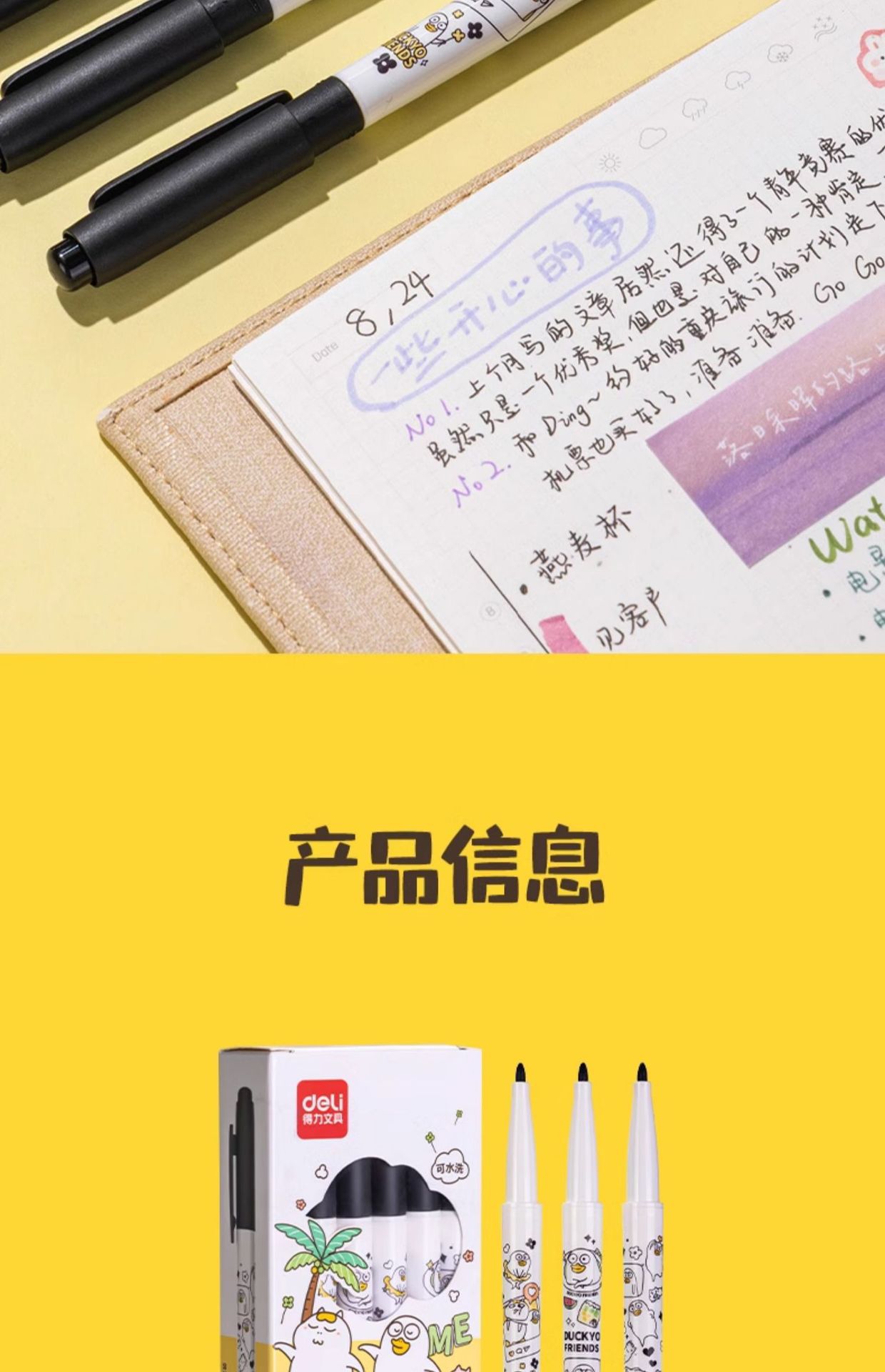 得力小刘鸭双头美术专用勾线笔油性记号笔儿童绘画勾线笔黑色批发