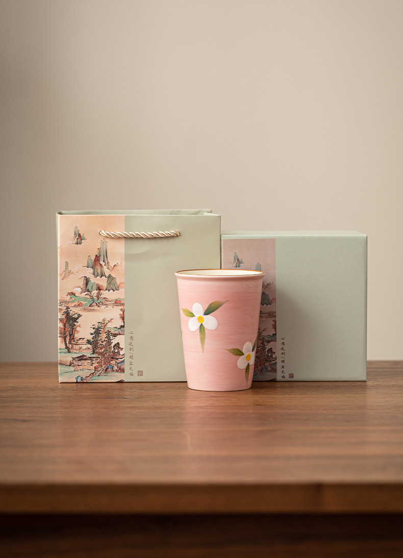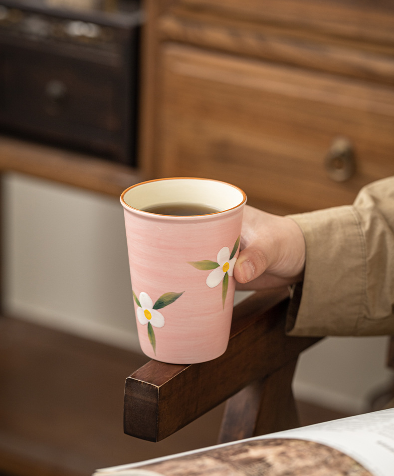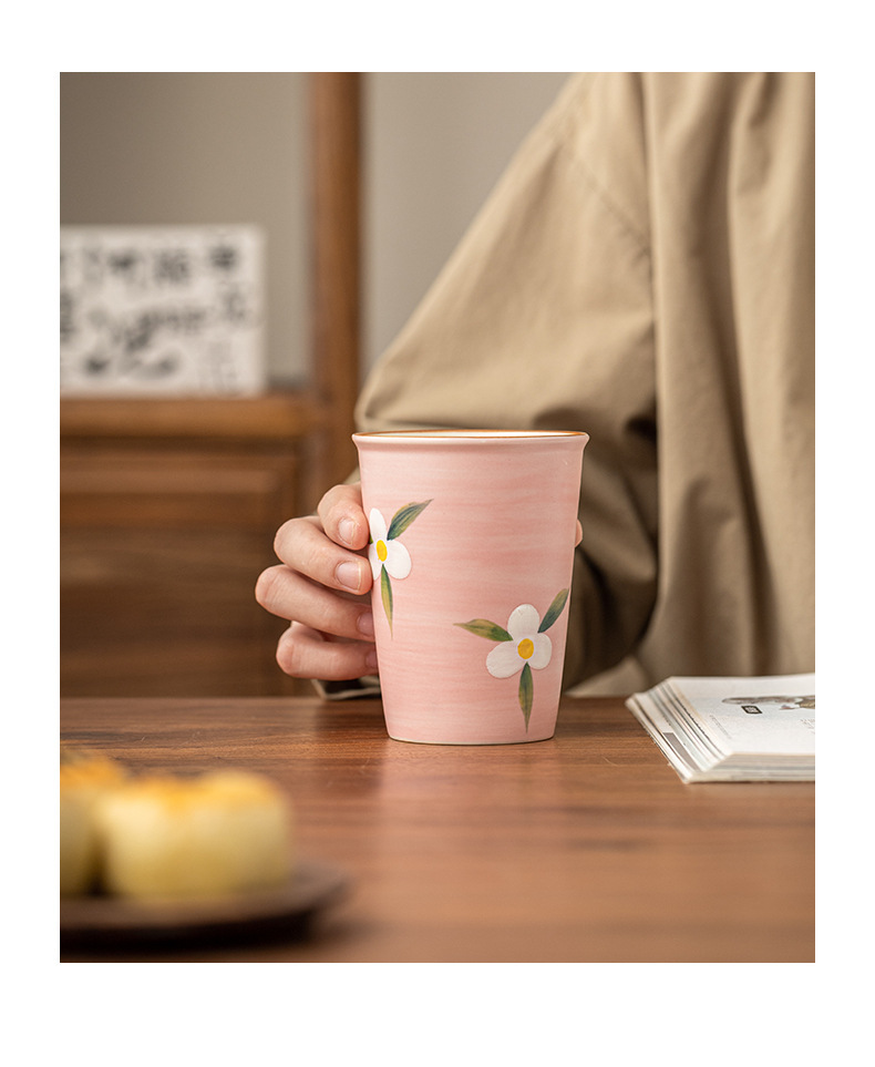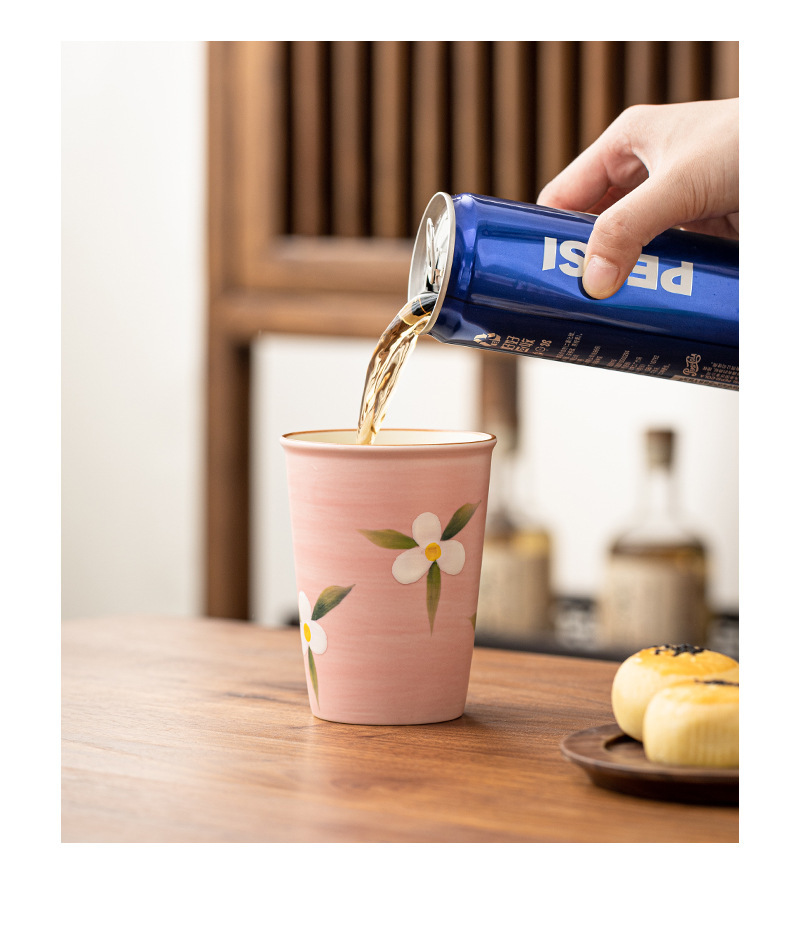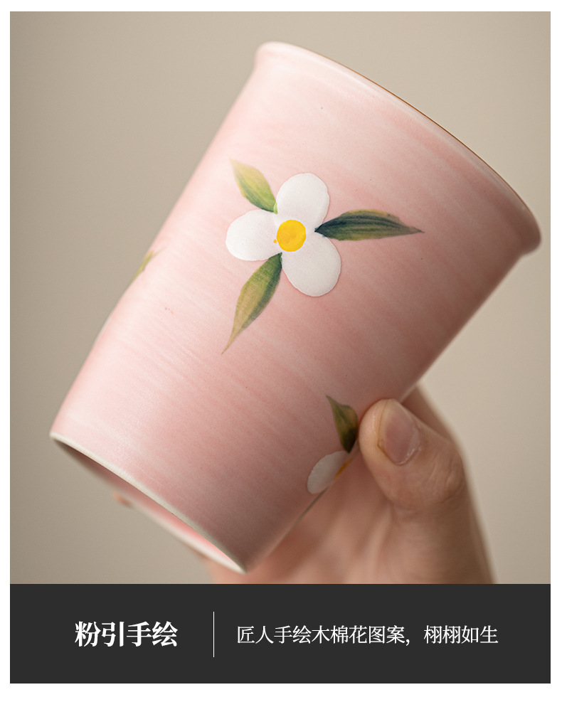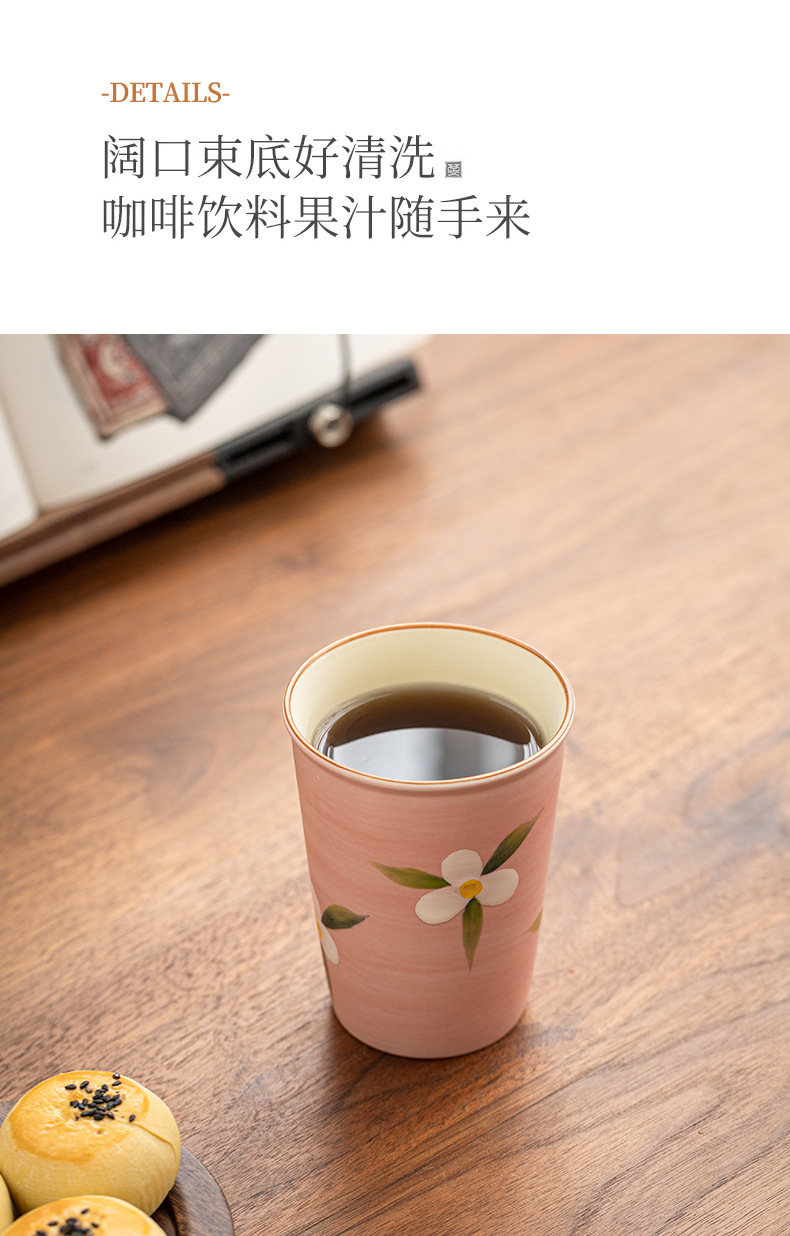 粉引手绘陶瓷大容量主人喝水杯可乐杯个人专用杯带礼盒装工厂批发