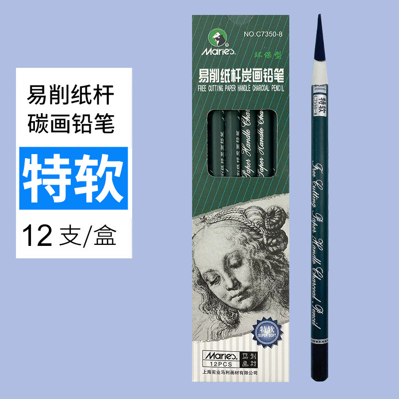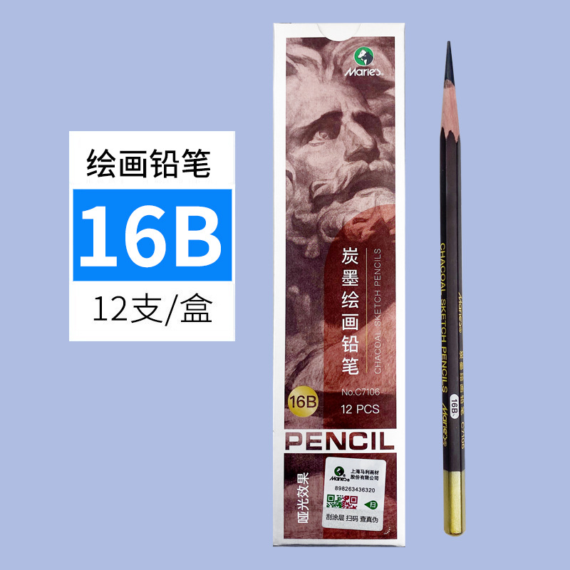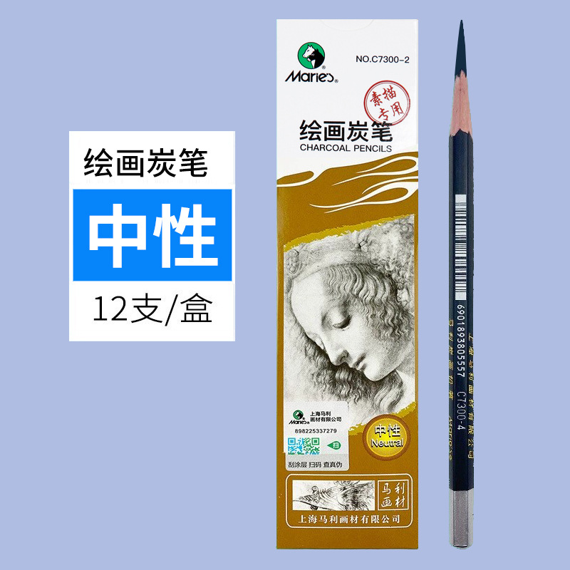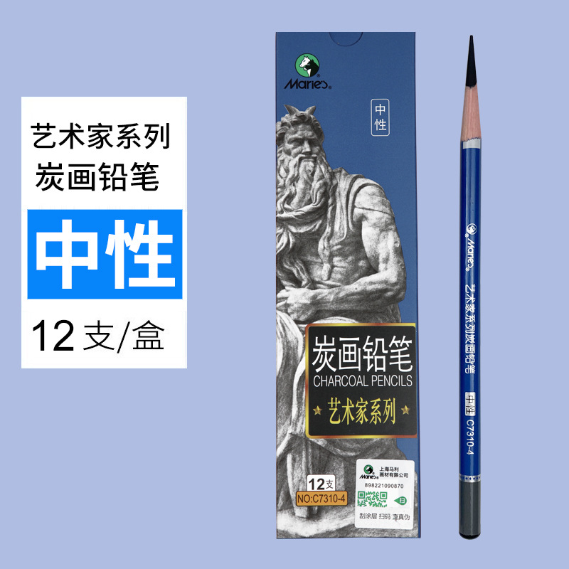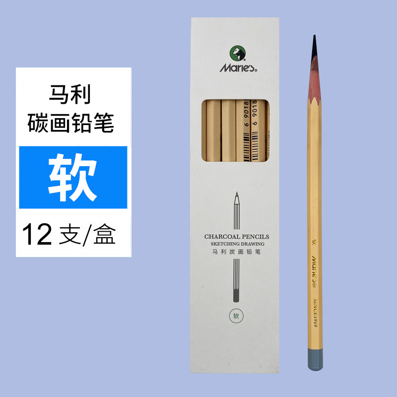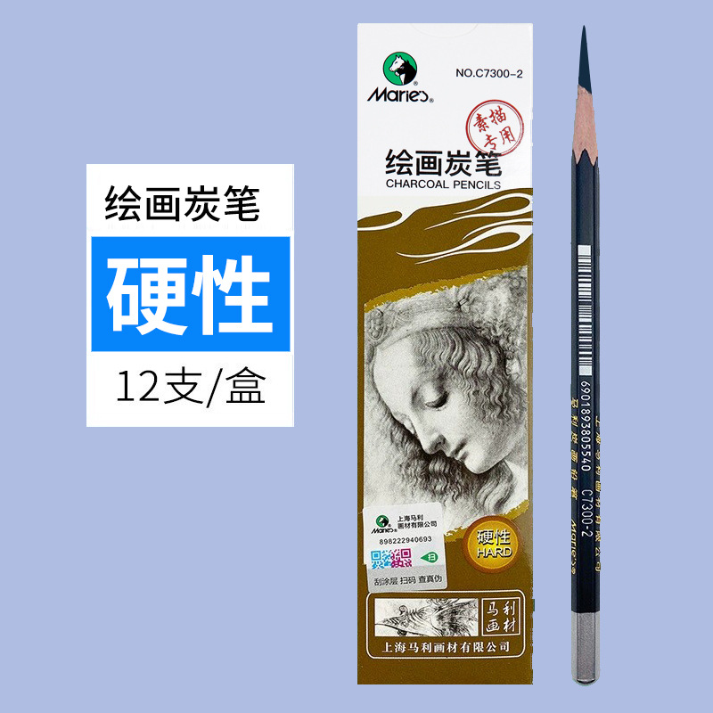 马利铅笔素描碳笔绘图绘画速写炭笔硬中软白炭笔初学者美术生专用