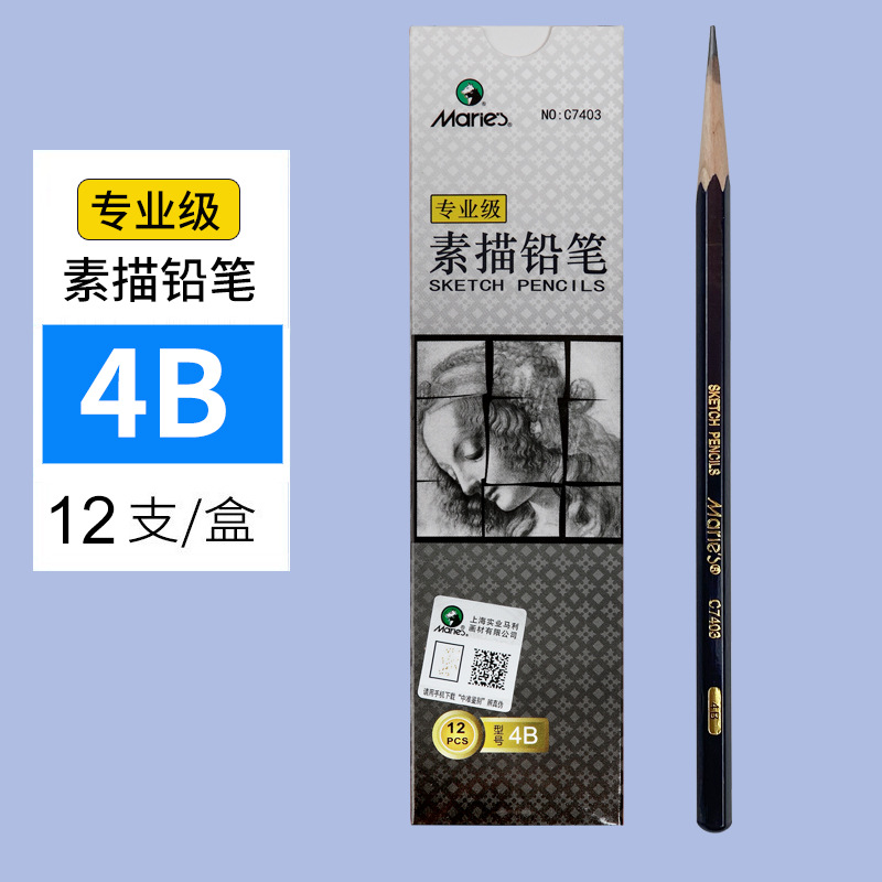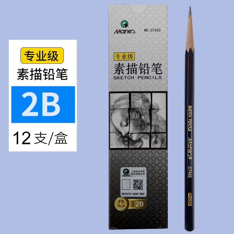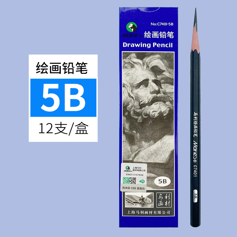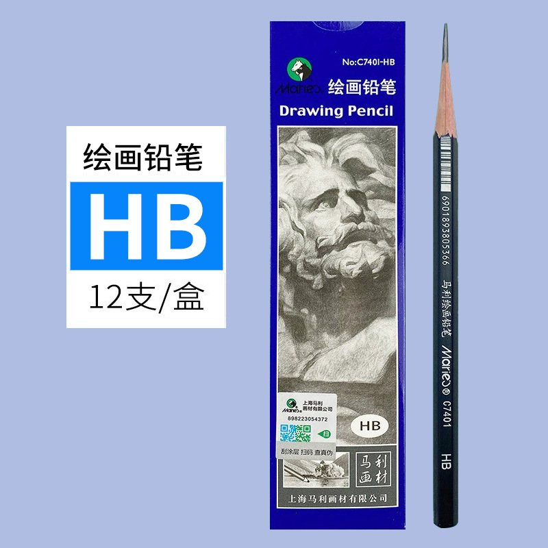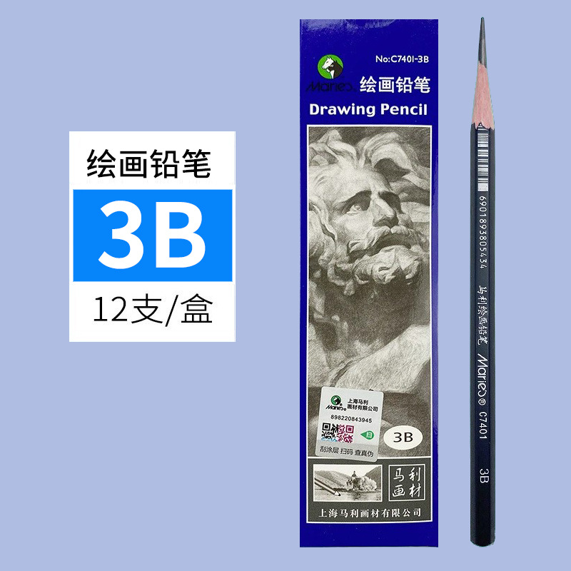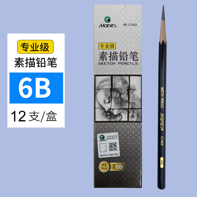 马利铅笔素描碳笔绘图绘画速写炭笔硬中软白炭笔初学者美术生专用