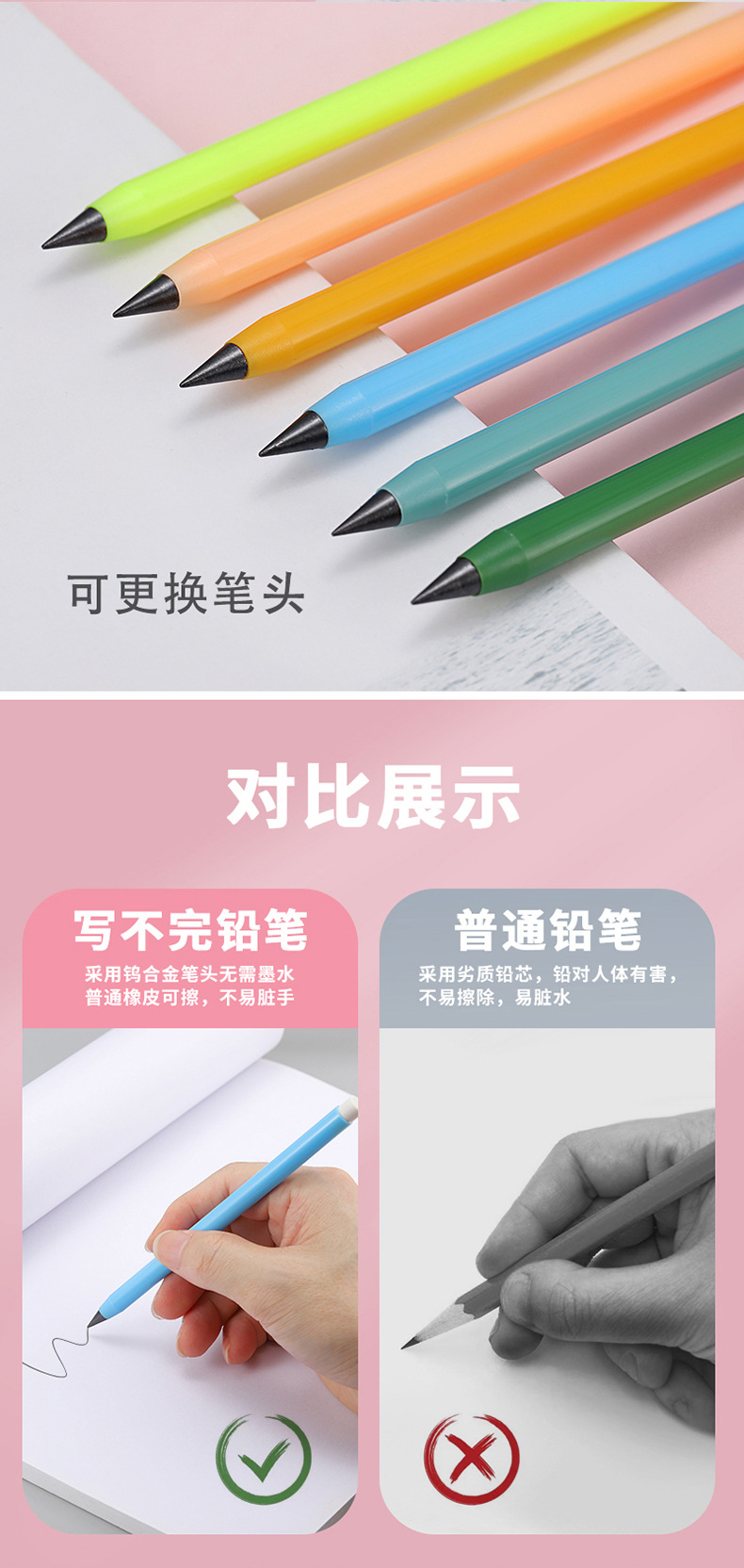 永恒铅笔学生专用写不完的铅笔黑科技不用削铅笔不易断可擦铅笔
