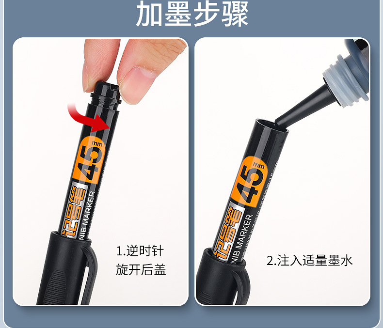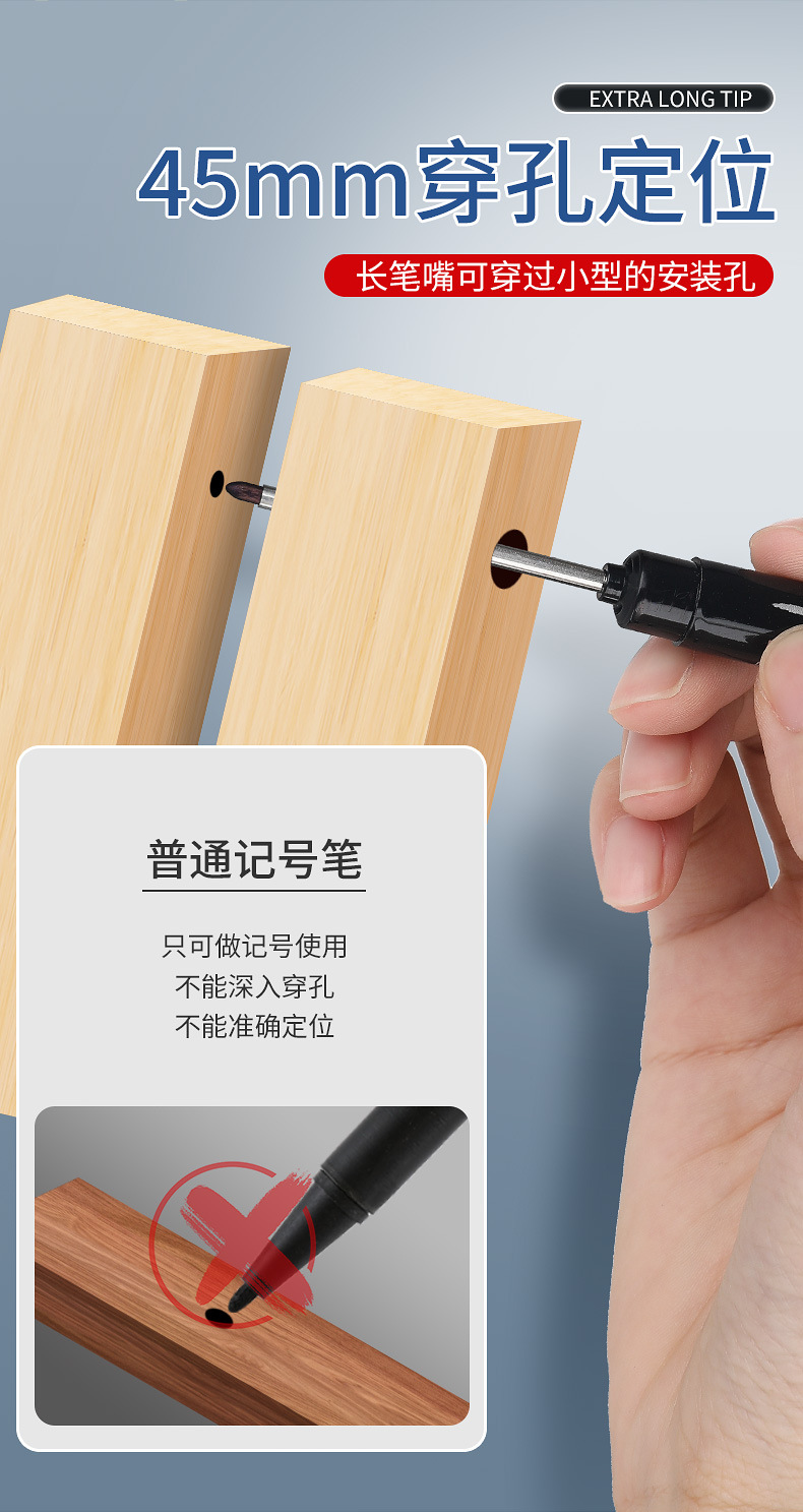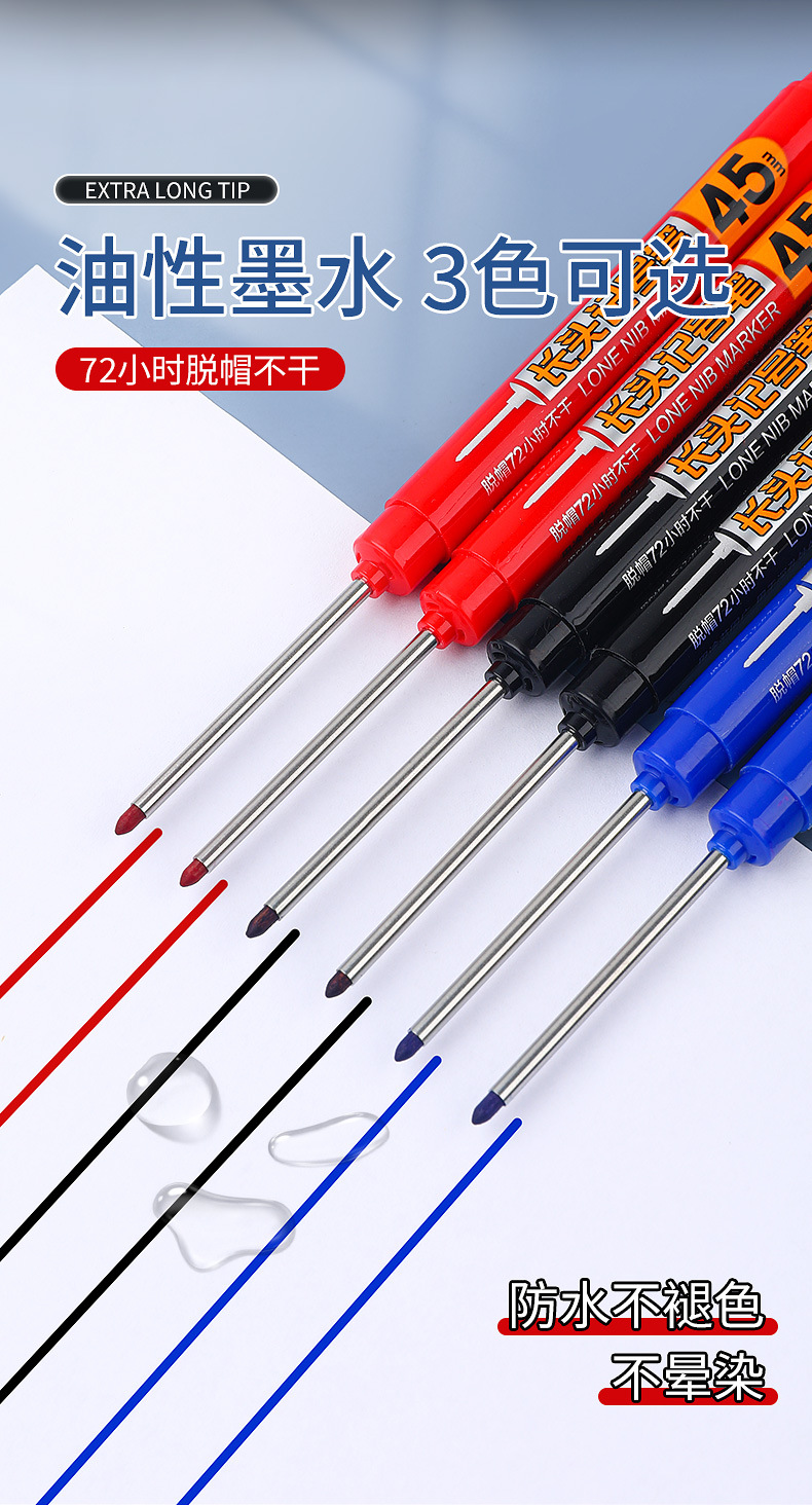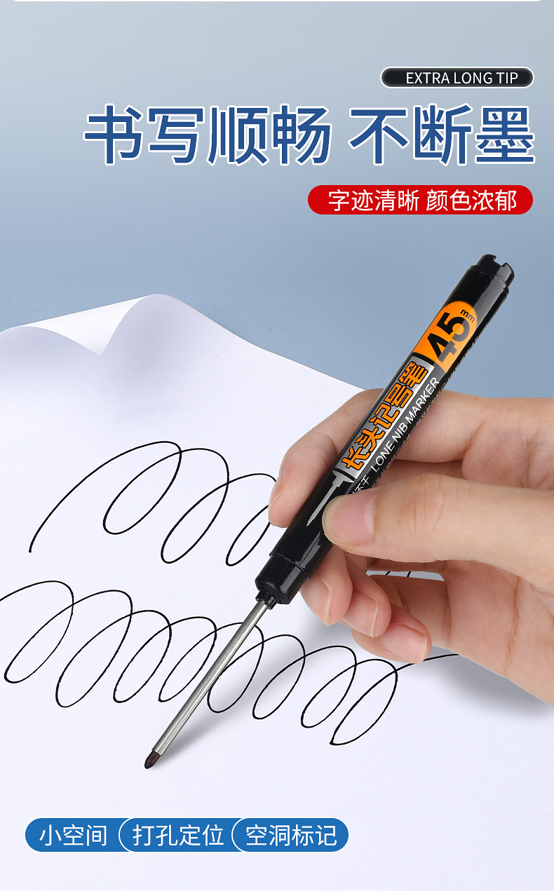 45mm油性木工长头记号笔工地长嘴黑色深孔划线加长记号笔加长头笔