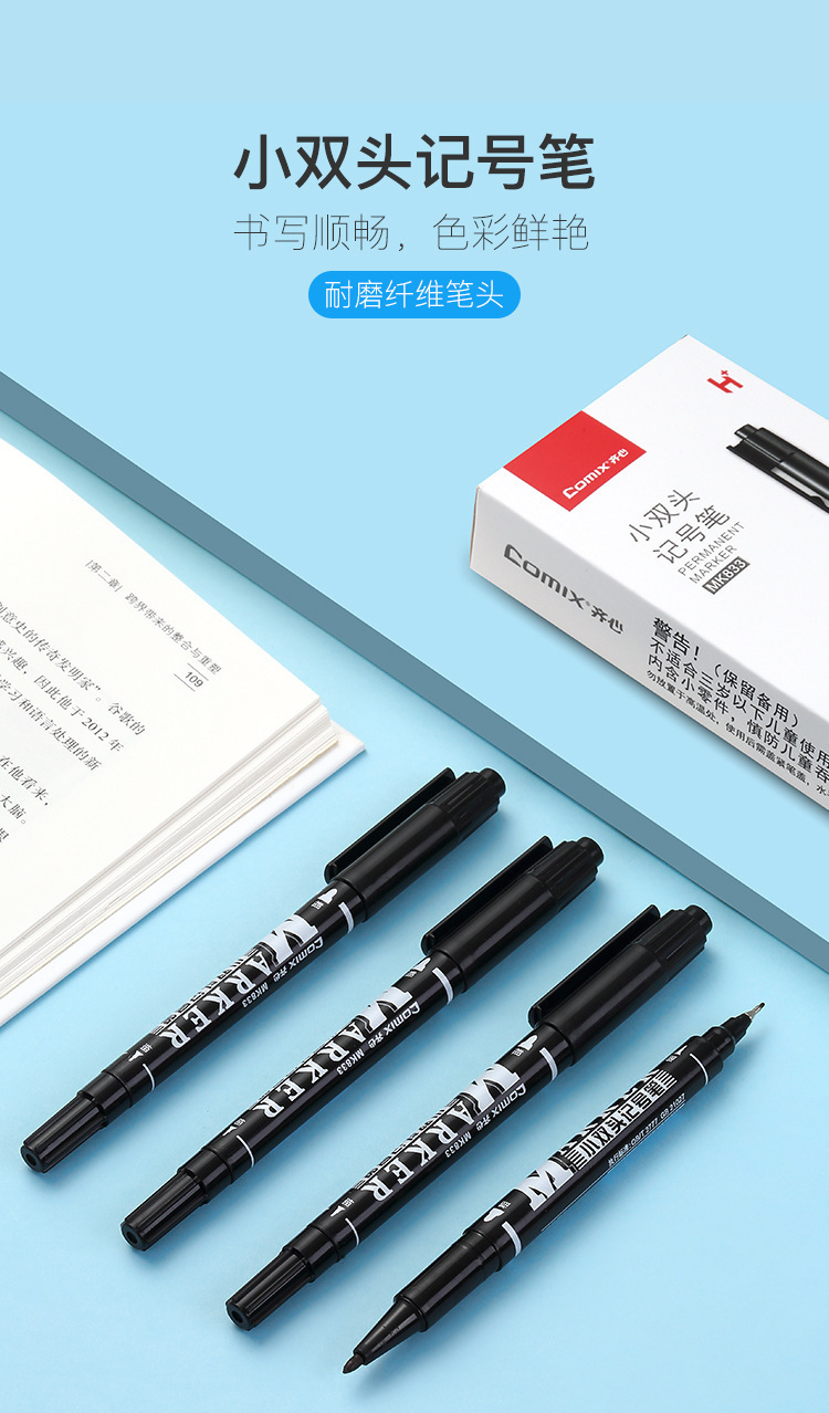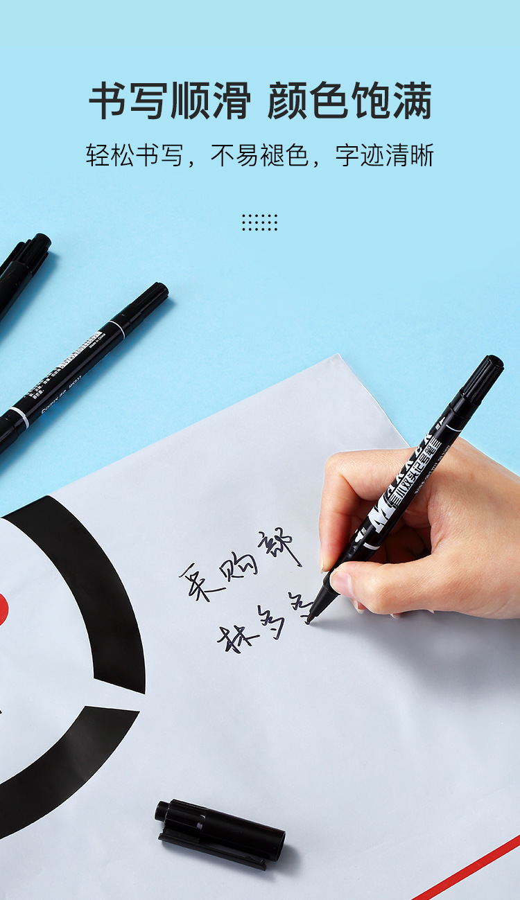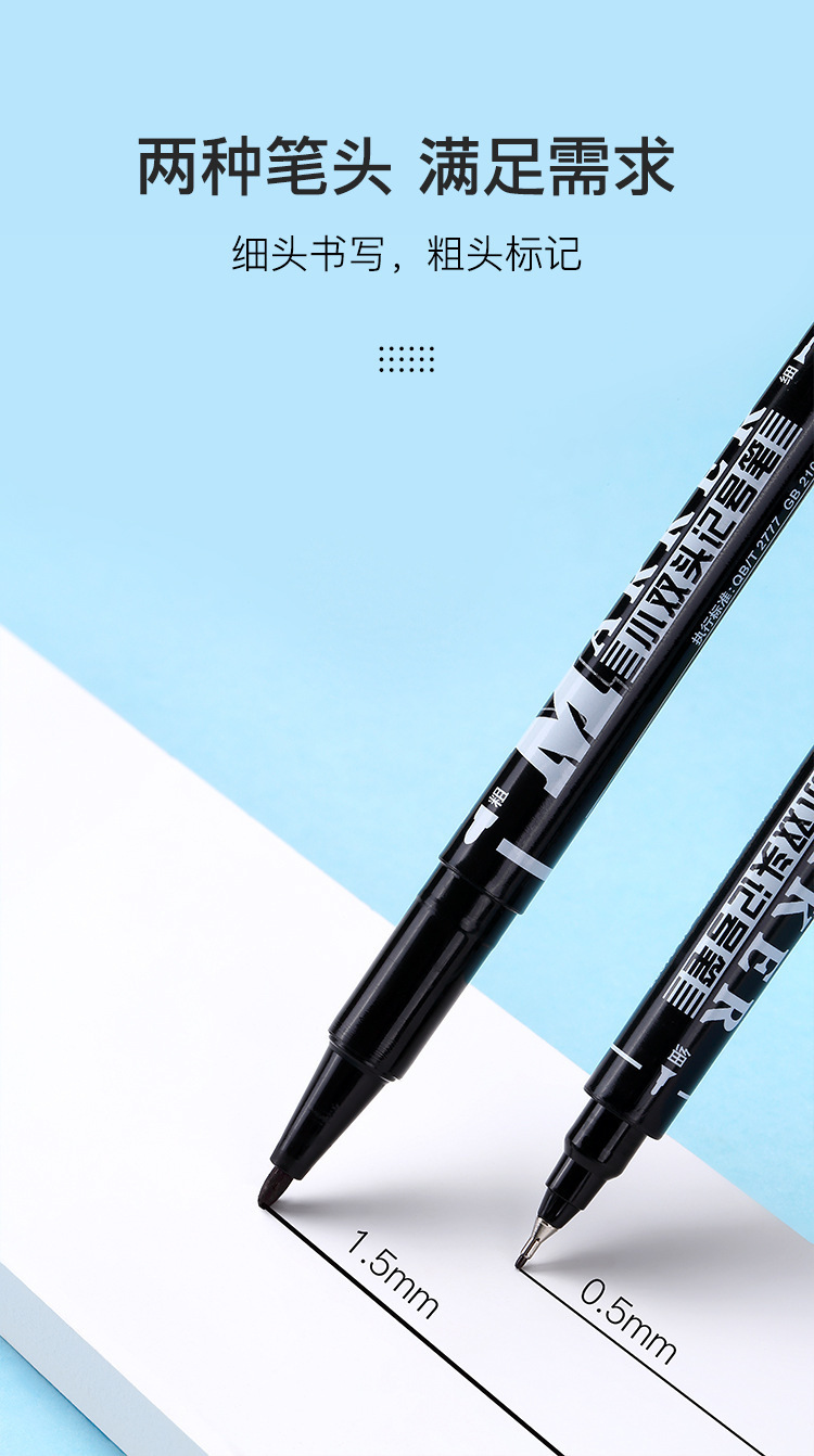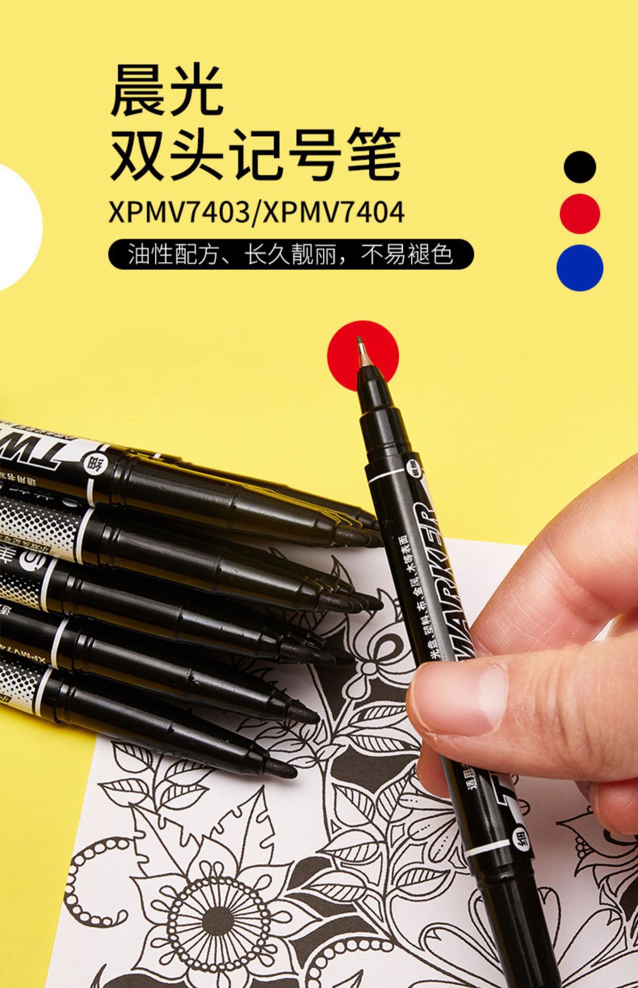 晨光XPMV7403记号笔小双头油性细头勾线笔绘画黑色美术笔防水速干