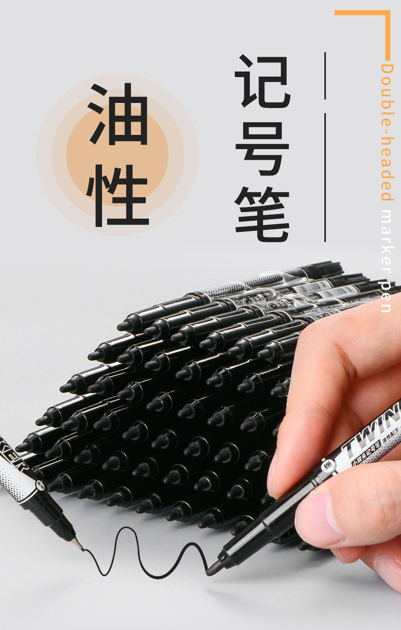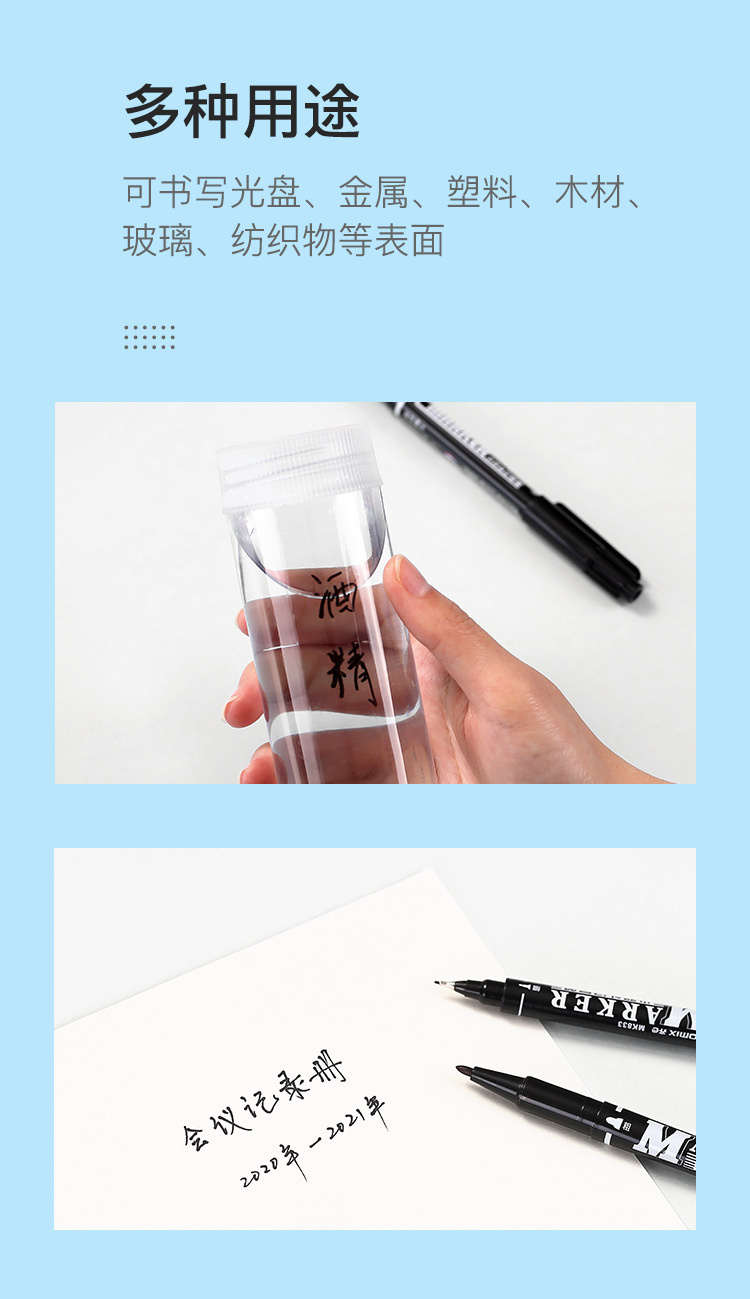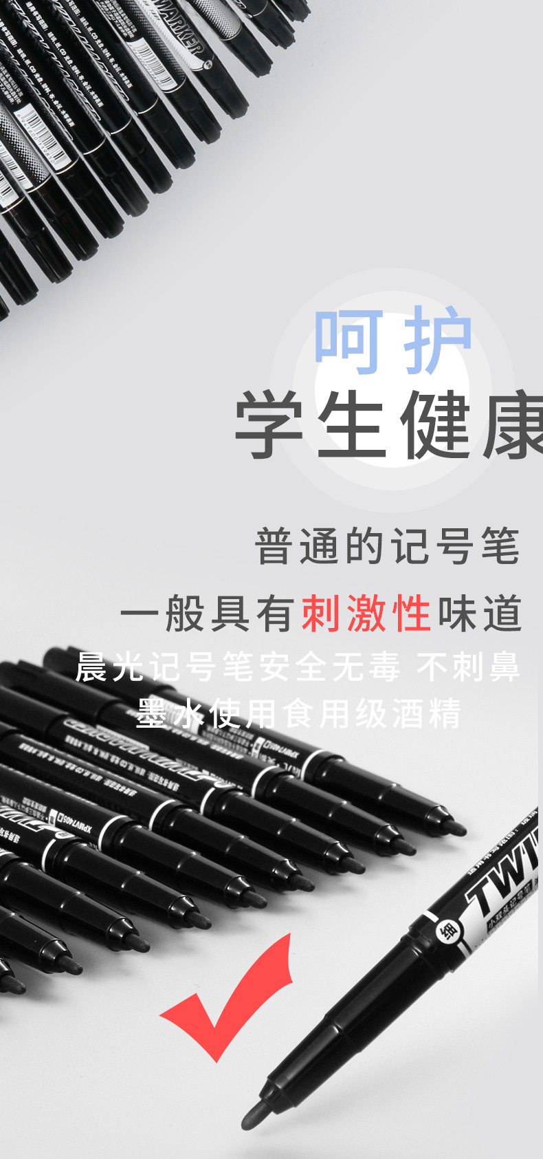 晨光XPMV7403记号笔小双头油性细头勾线笔绘画黑色美术笔防水速干