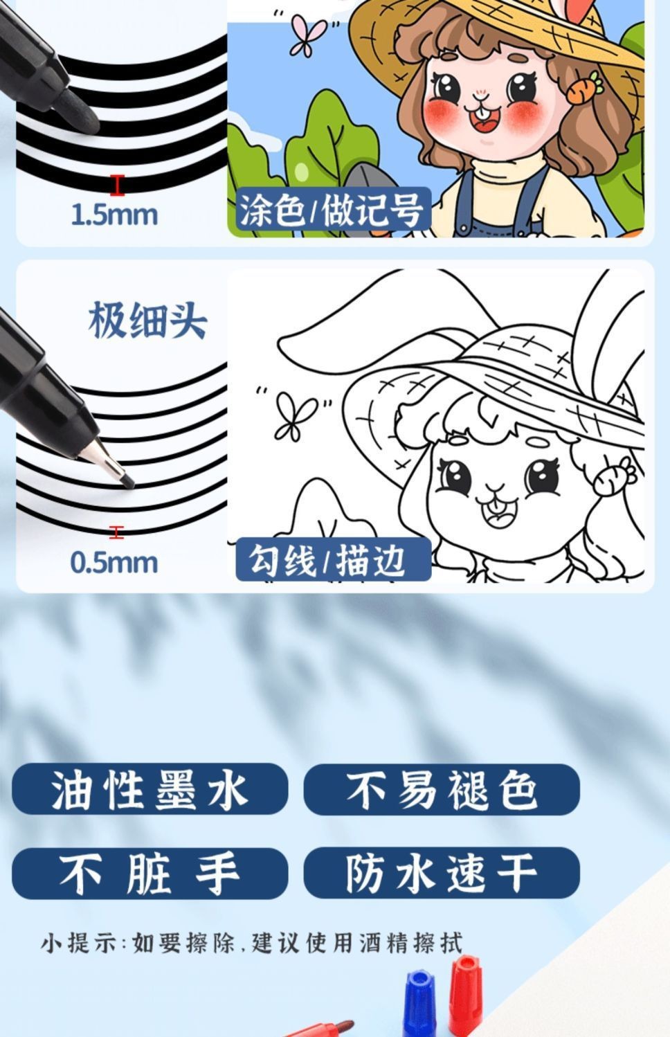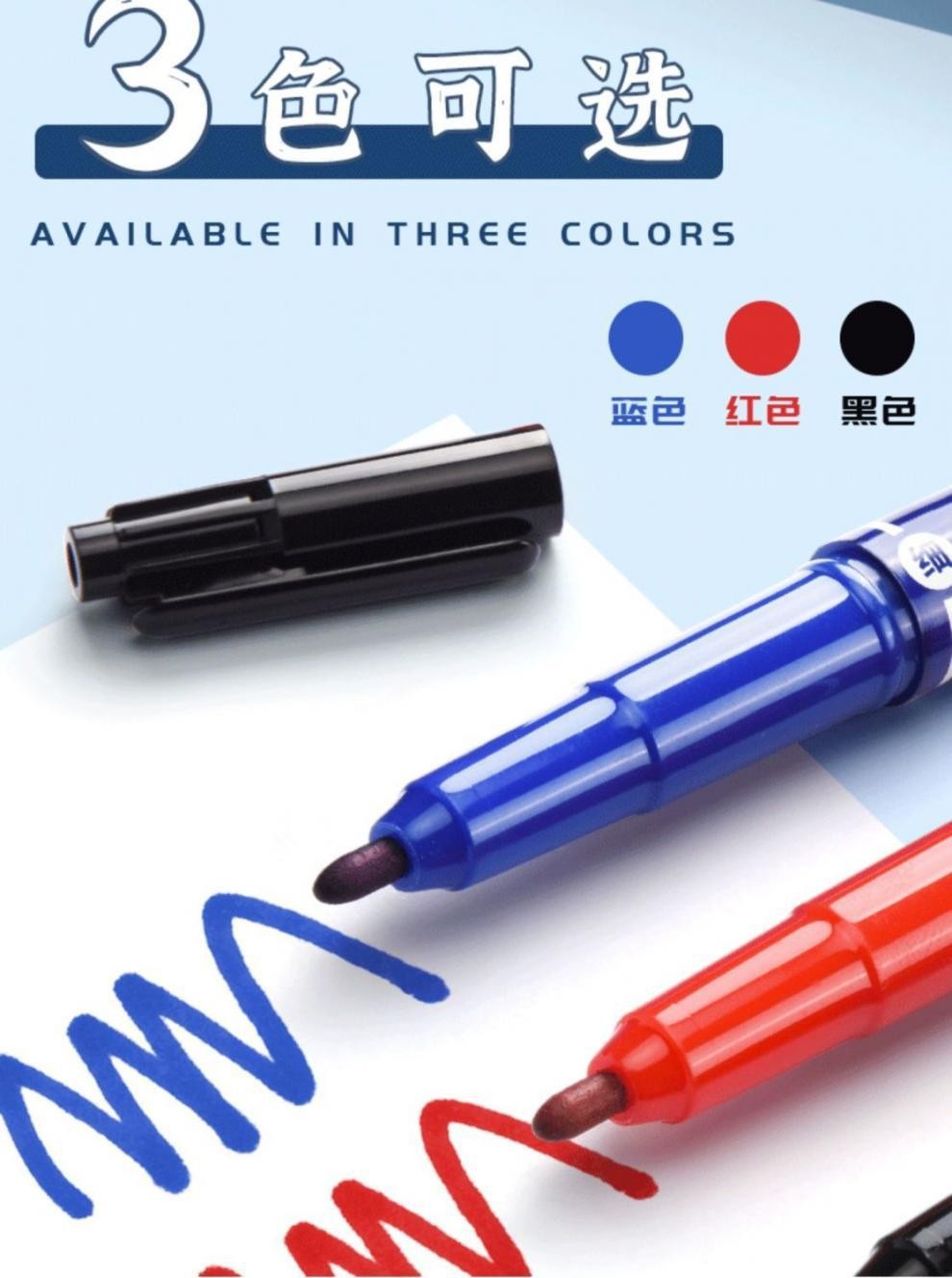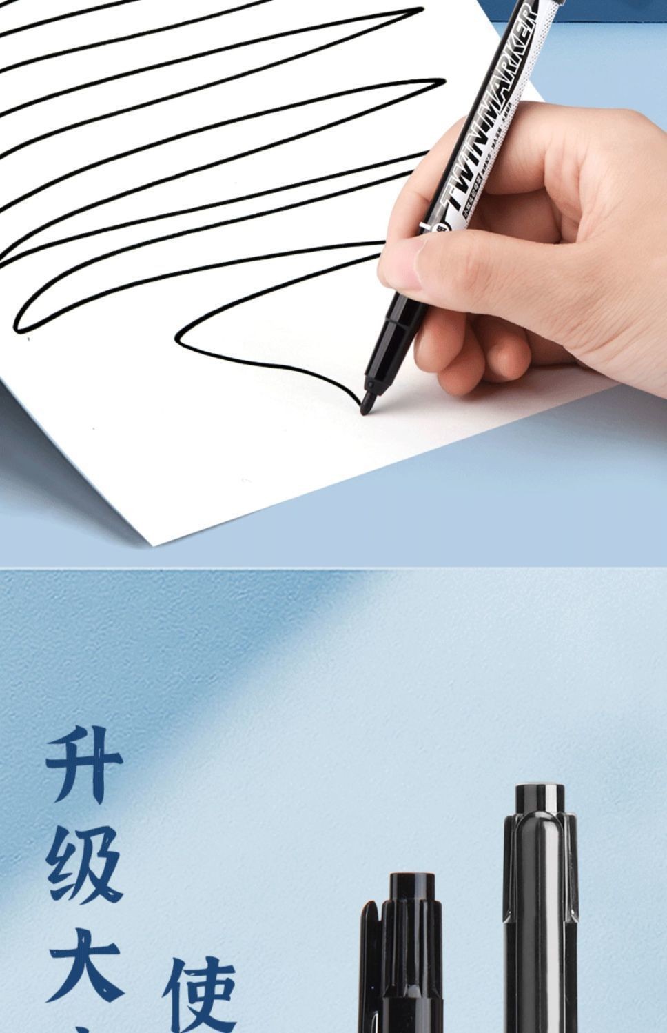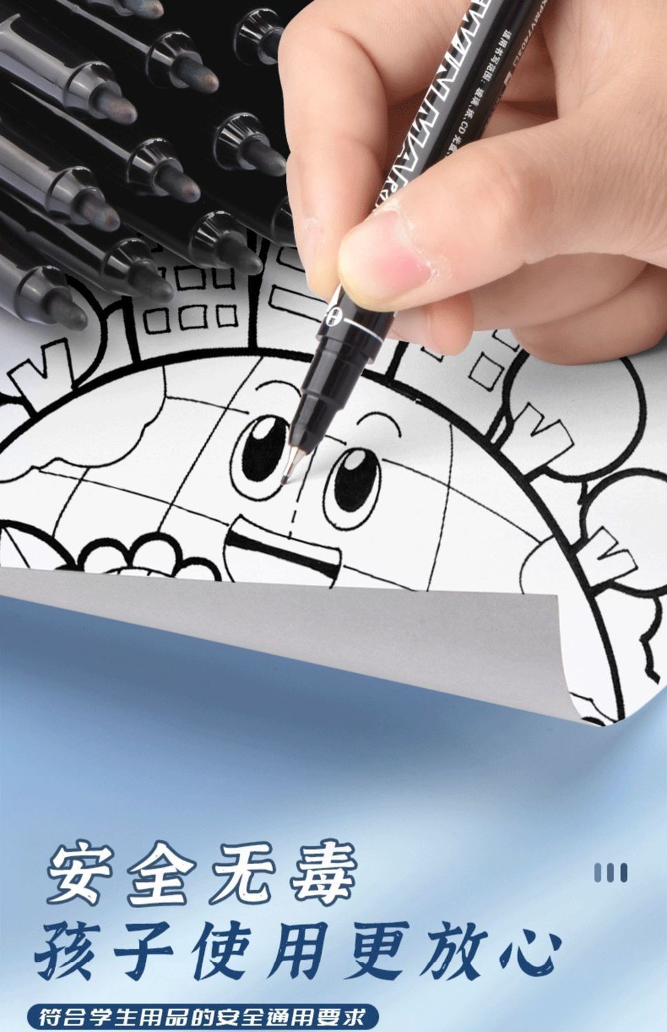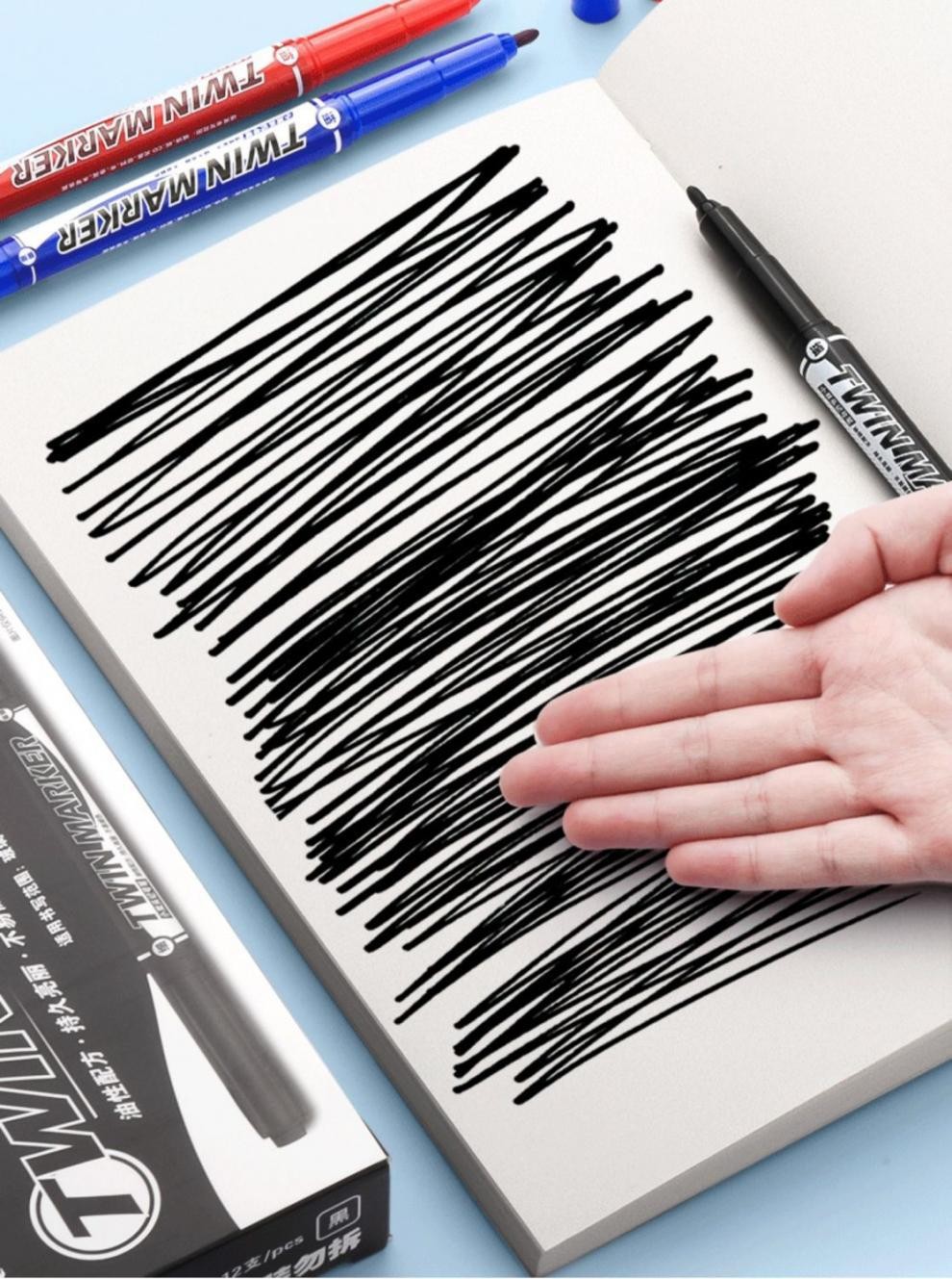 晨光双头记号笔防水儿童绘画马克笔油性不掉色细头黑色勾边勾线笔