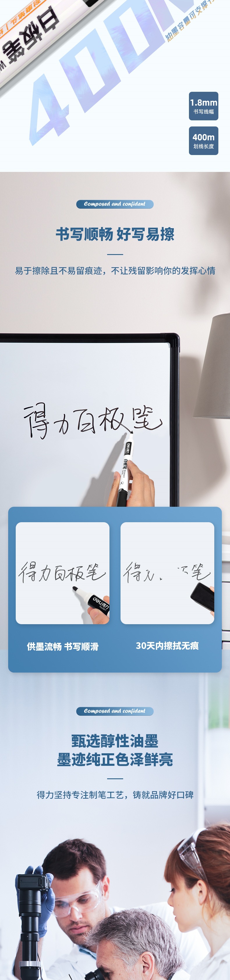 包邮得力白板笔6817可擦黑色记号笔水性标记笔办公会议教学大头笔