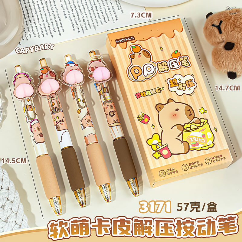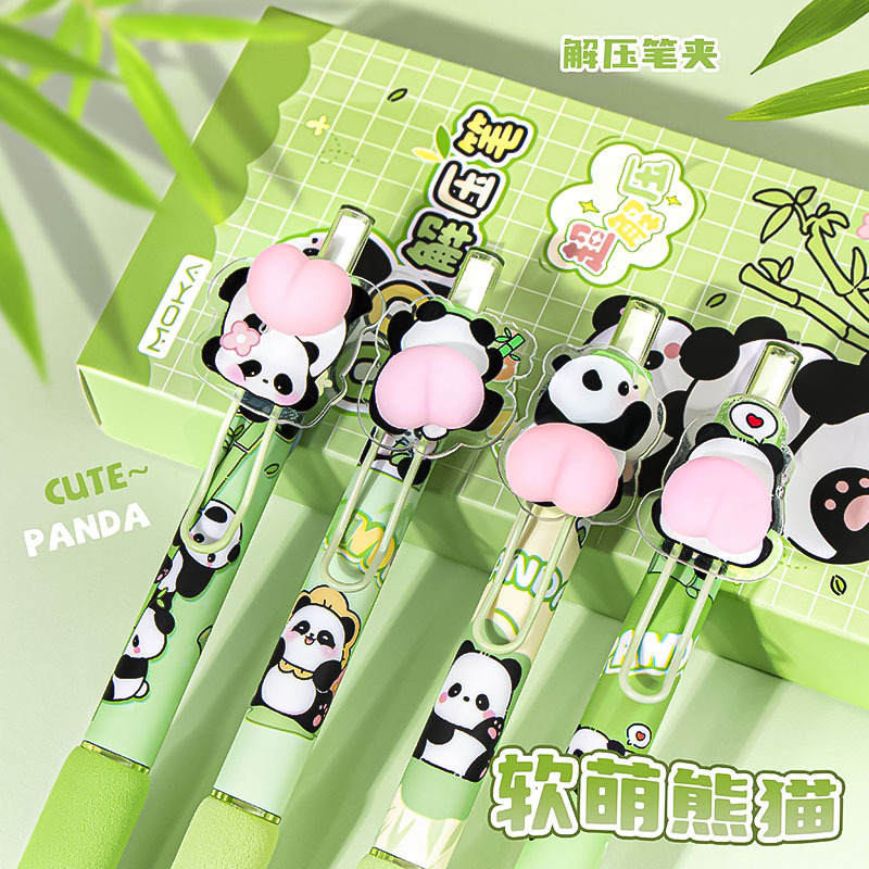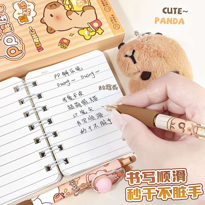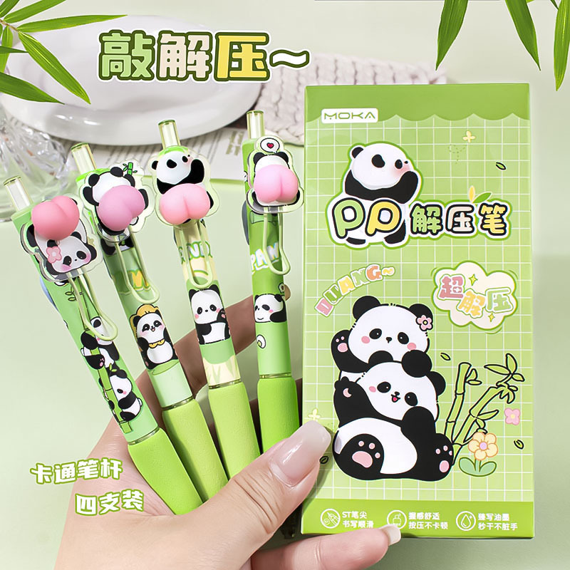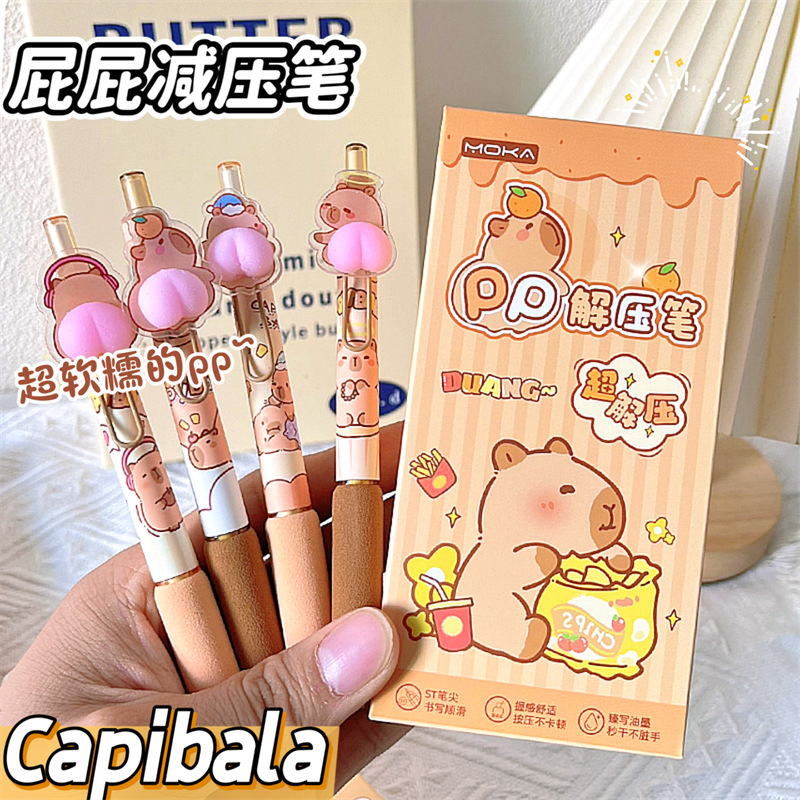 创意减压屁屁按动中性笔卡皮巴拉可爱速干黑笔0.5ST卡通熊猫水笔
