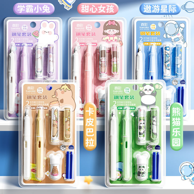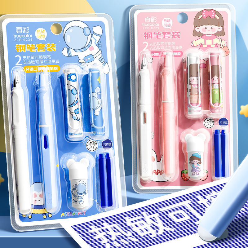 真彩热可擦钢笔套装 小学生专用三年级儿童书法练字钢笔可换墨囊