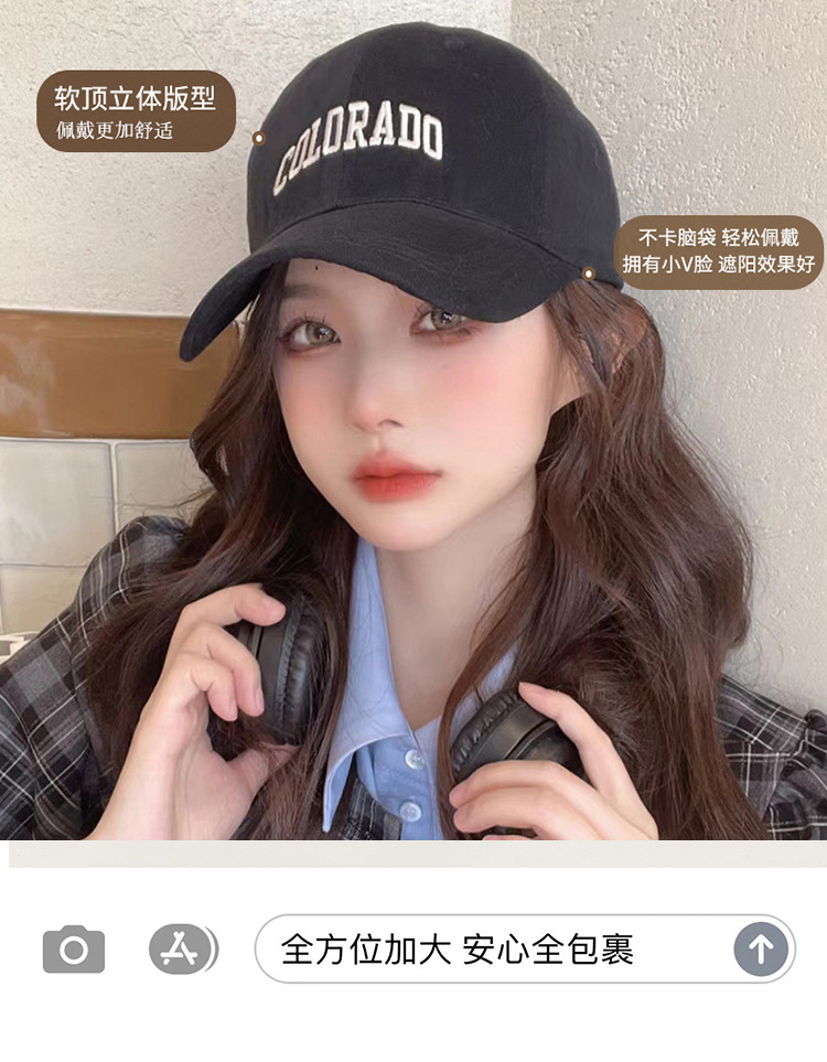 刺绣棒球帽女大头围加大加深磨毛帽子男情侣百搭英文字母鸭舌帽潮