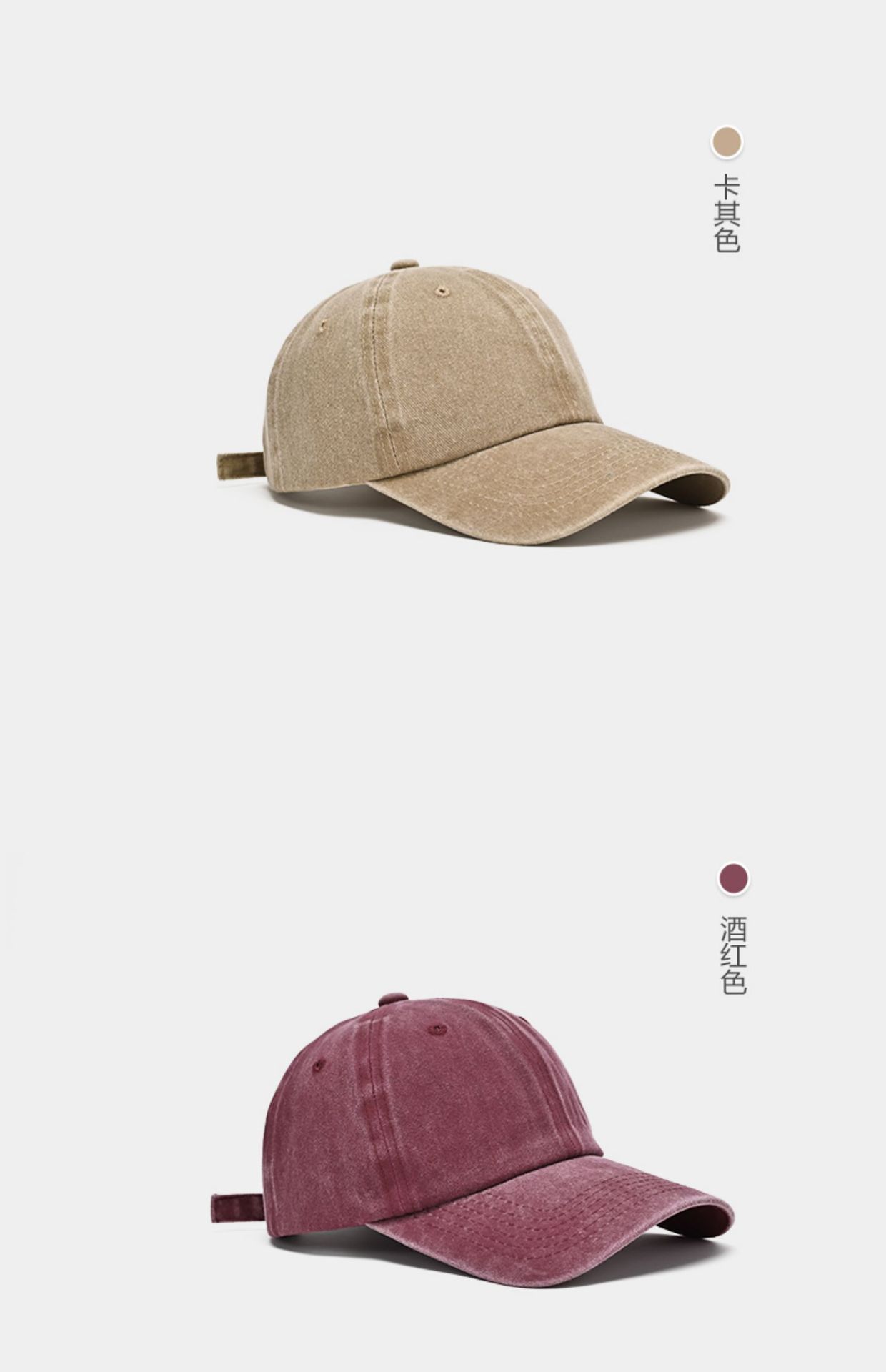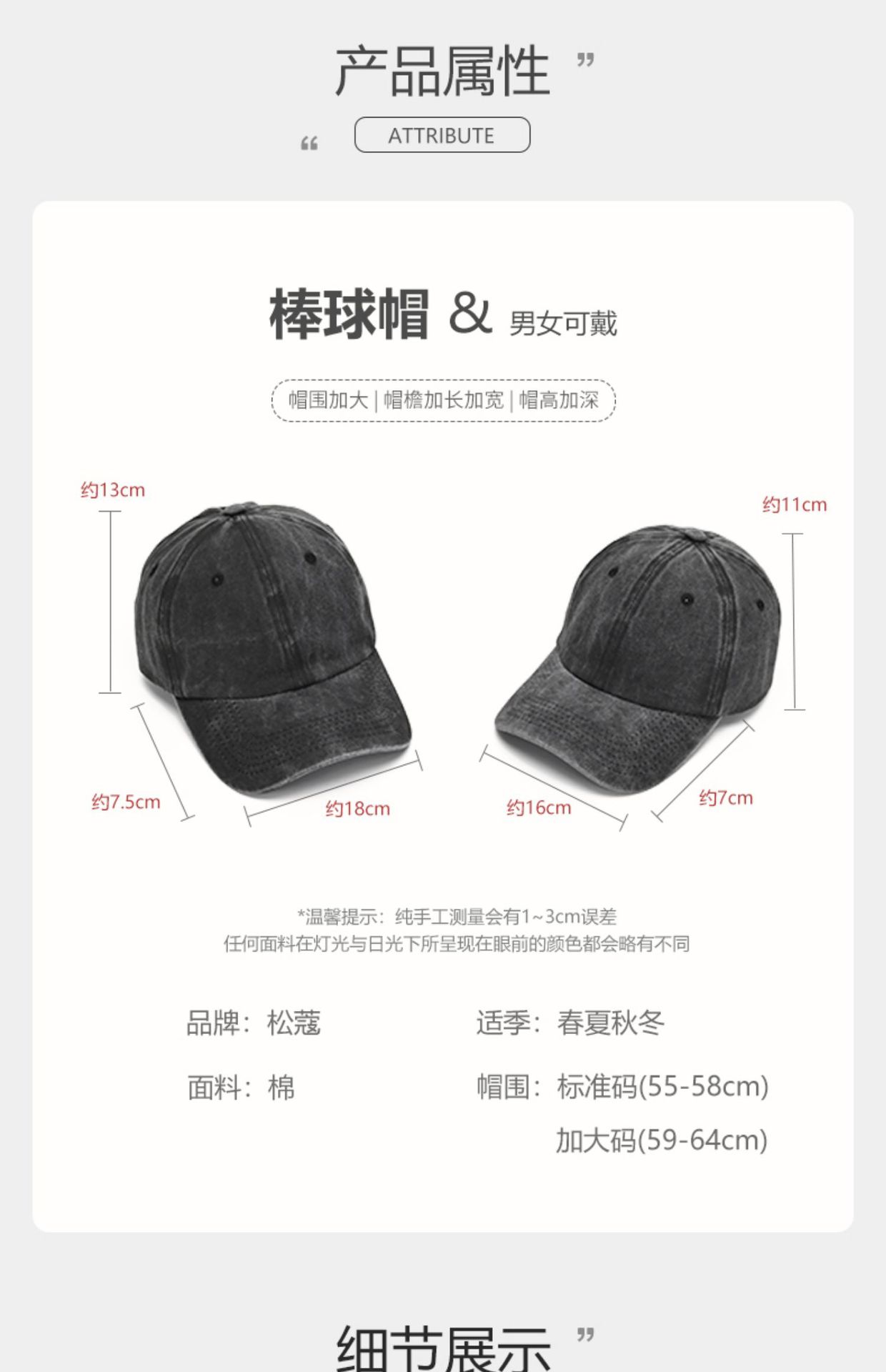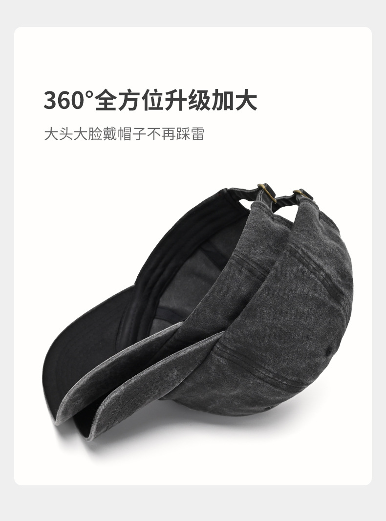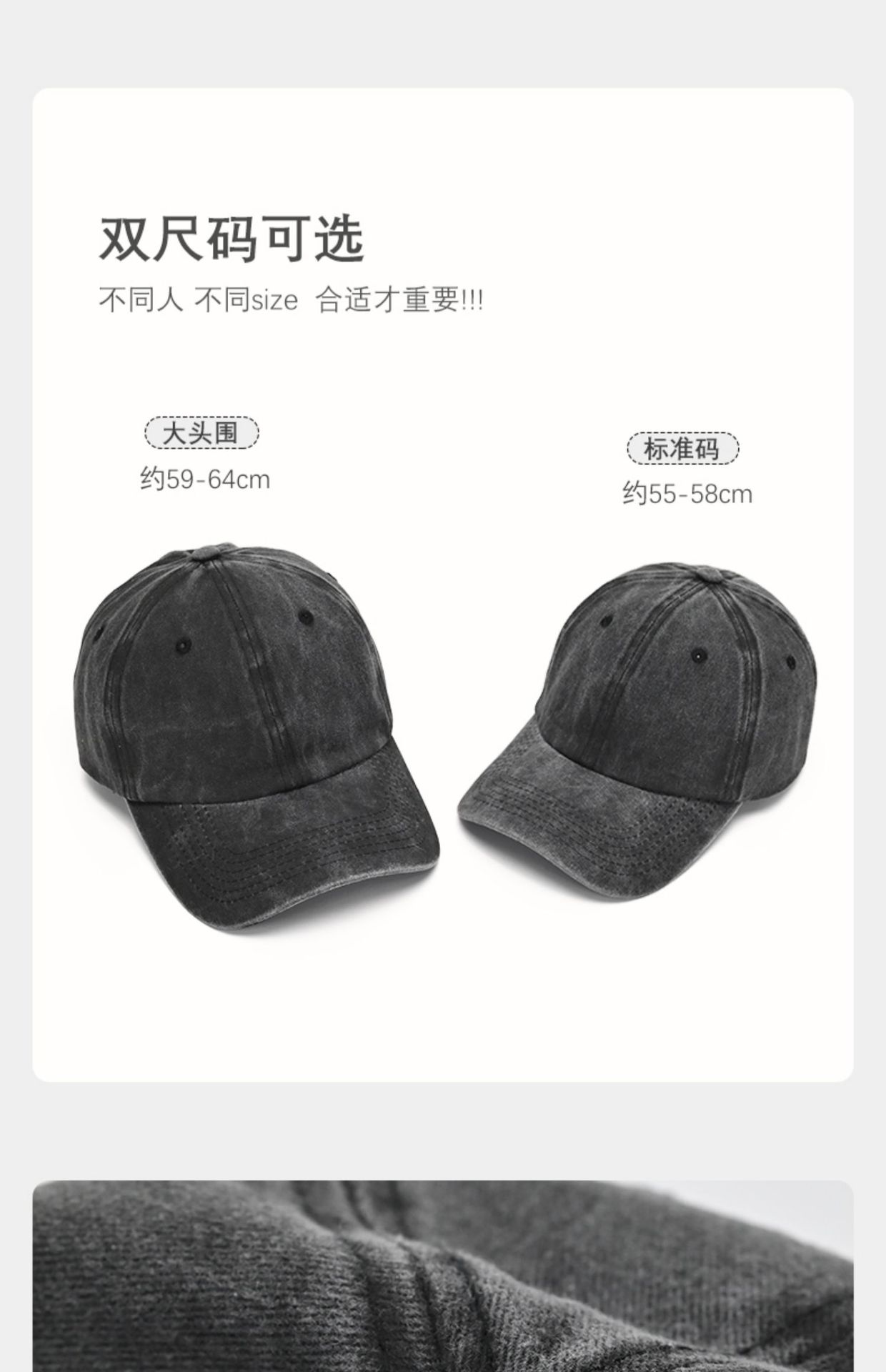 水洗做旧鸭舌帽女显脸小美式棒球帽软顶宽帽檐大头围牛仔帽子男