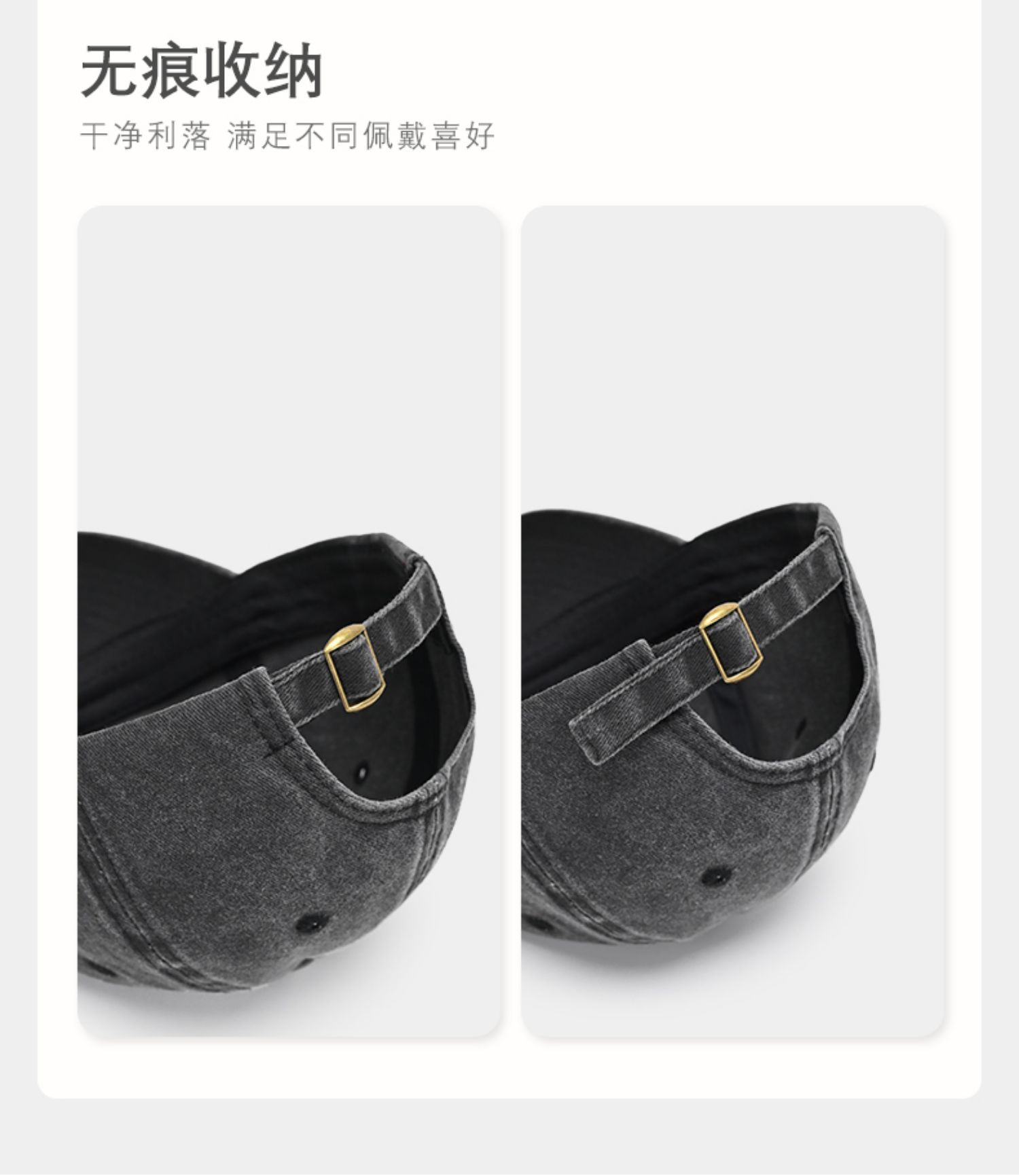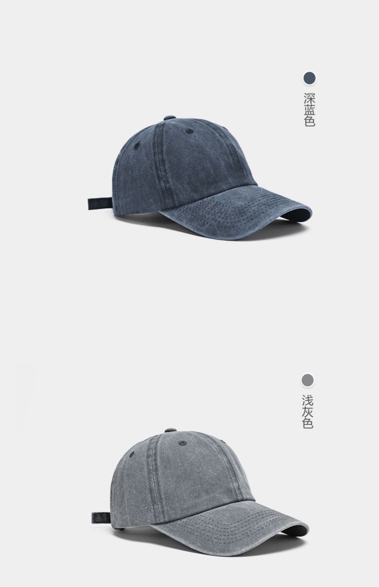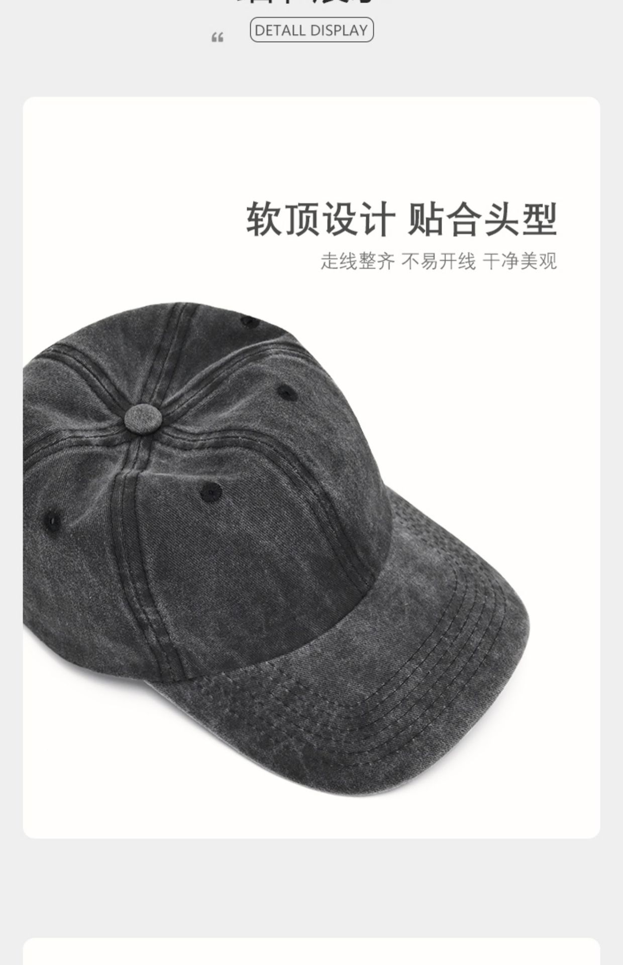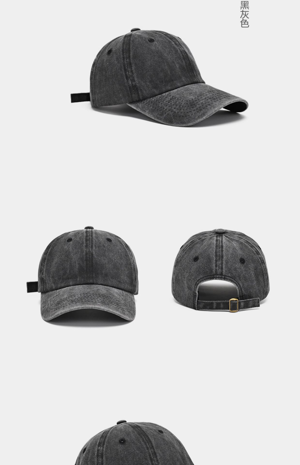 水洗做旧鸭舌帽女显脸小美式棒球帽软顶宽帽檐大头围牛仔帽子男