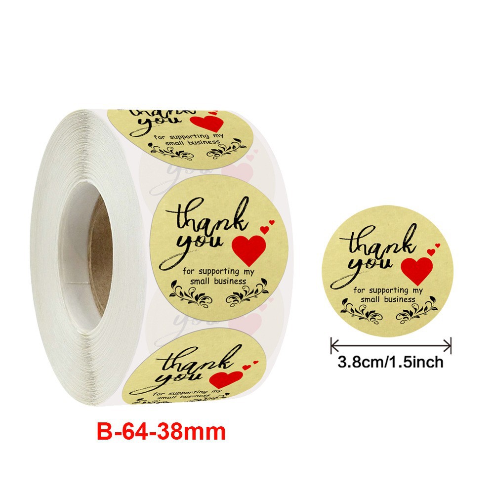 外贸现货爆款牛皮纸卷装贴纸谢谢贴纸不干胶标签红色爱心信封装饰