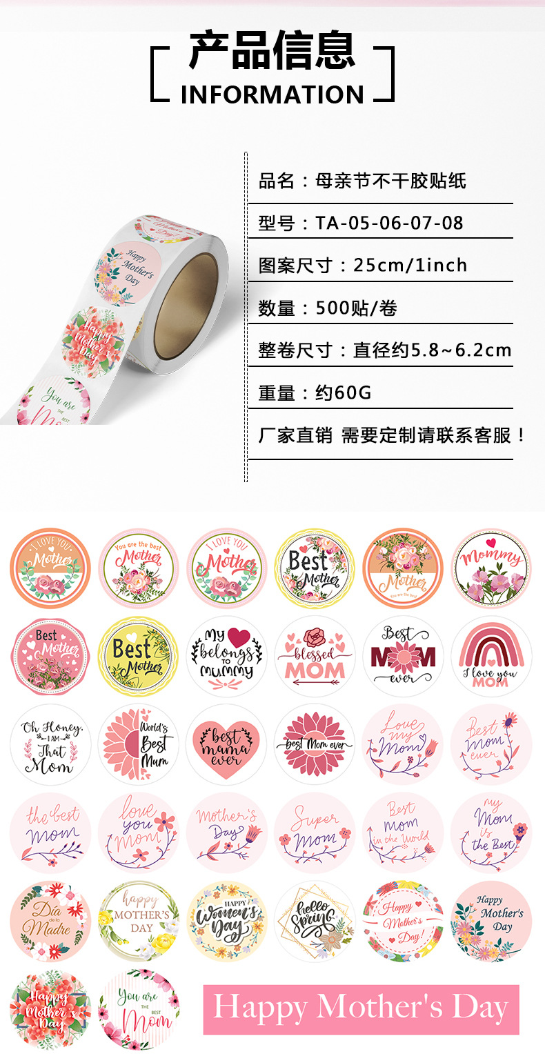 新款卷装母亲节mother'sday贴纸礼品装饰信封封口贴不干胶标签