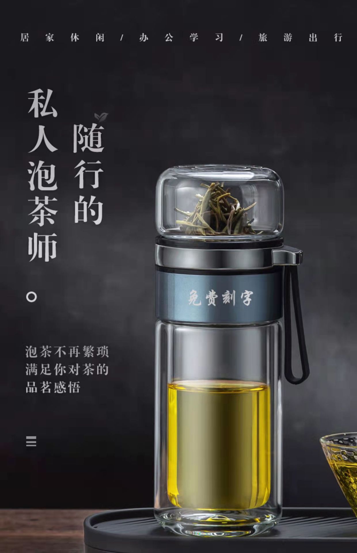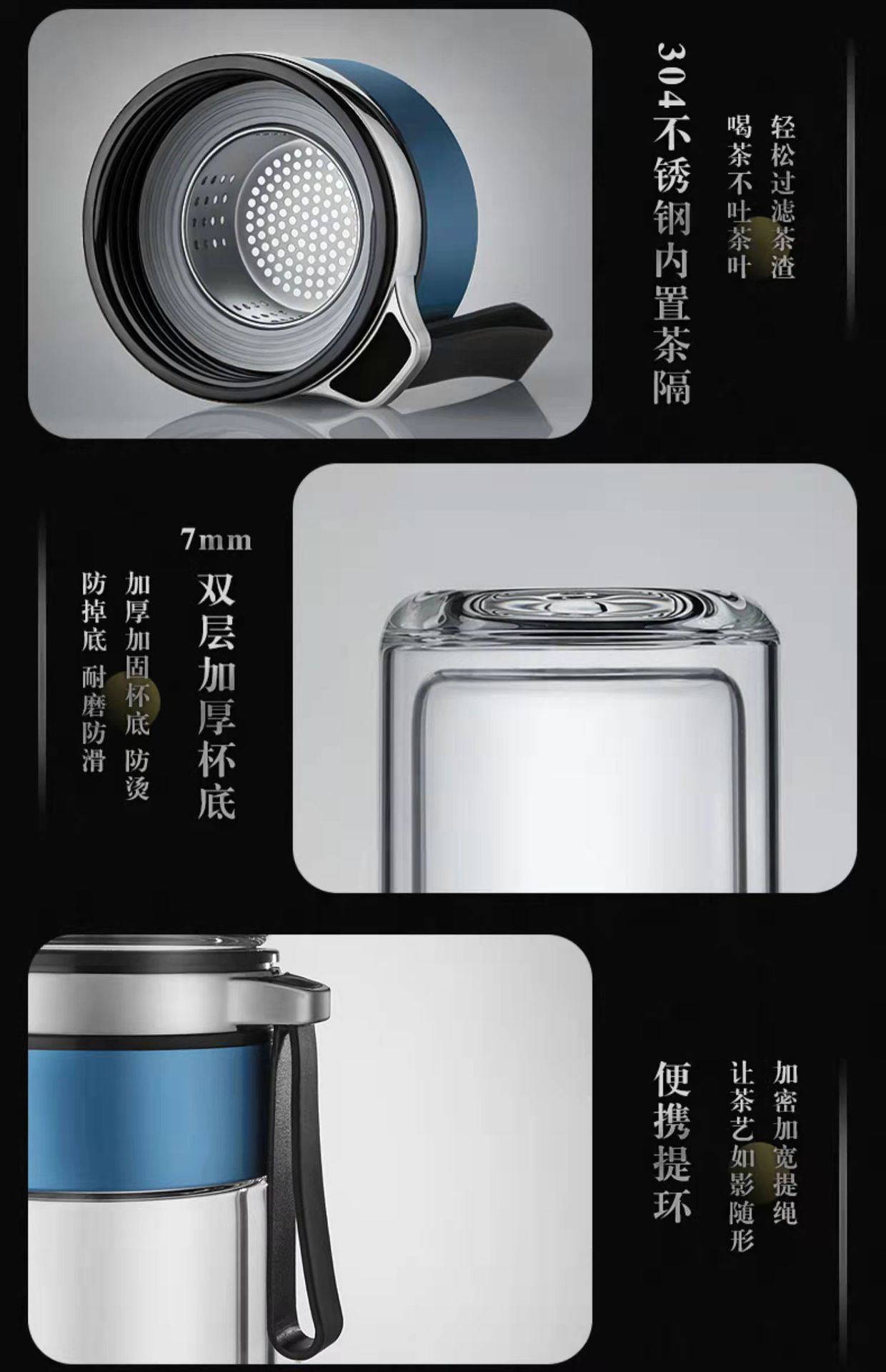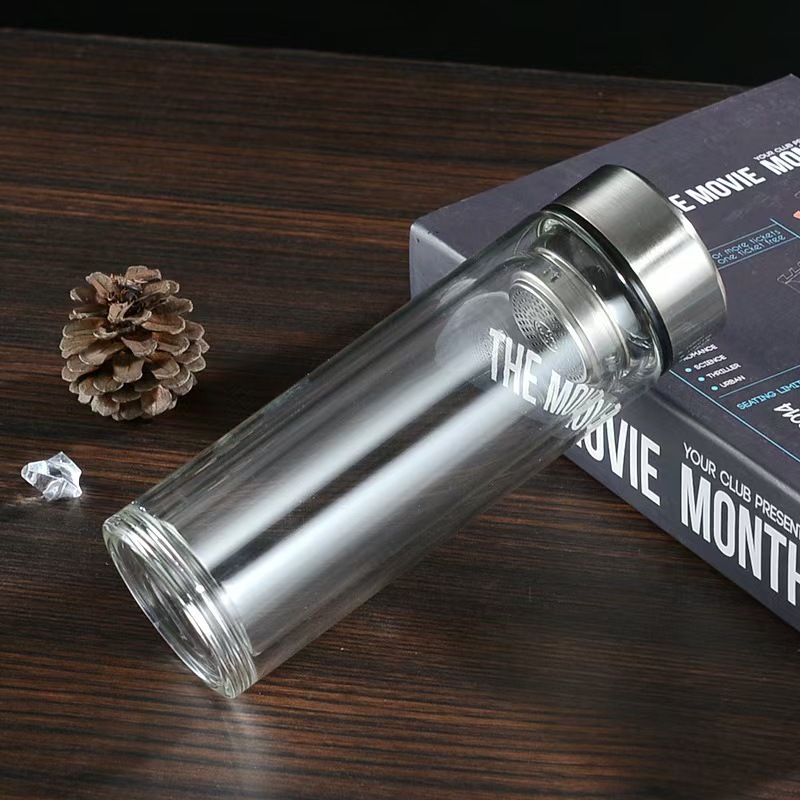 茶水分离双层加厚玻璃杯家用男士高硼硅泡茶杯定制logo商务礼品杯