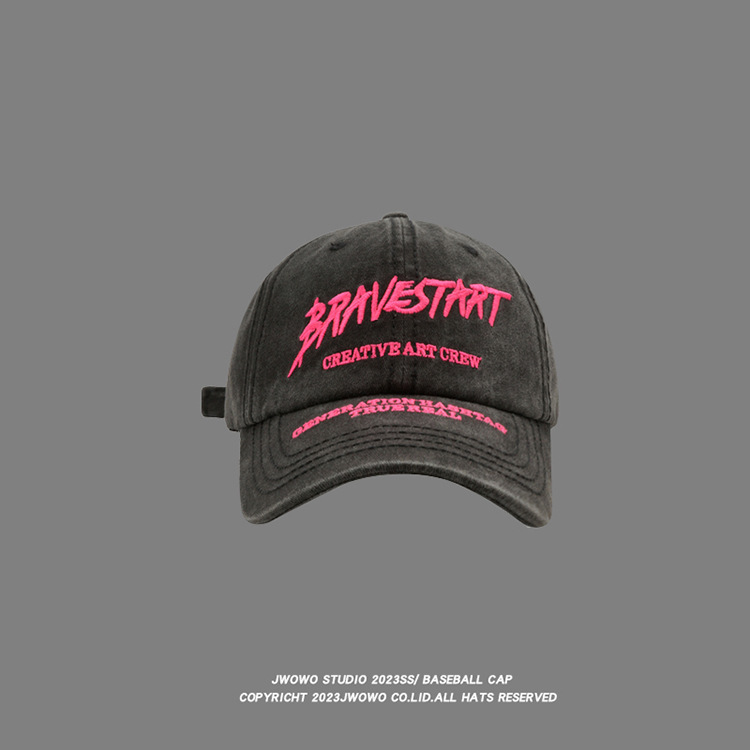 美式潮牌炫酷刺绣字母棒球帽子女春夏百搭复古水洗鸭舌帽男显脸小