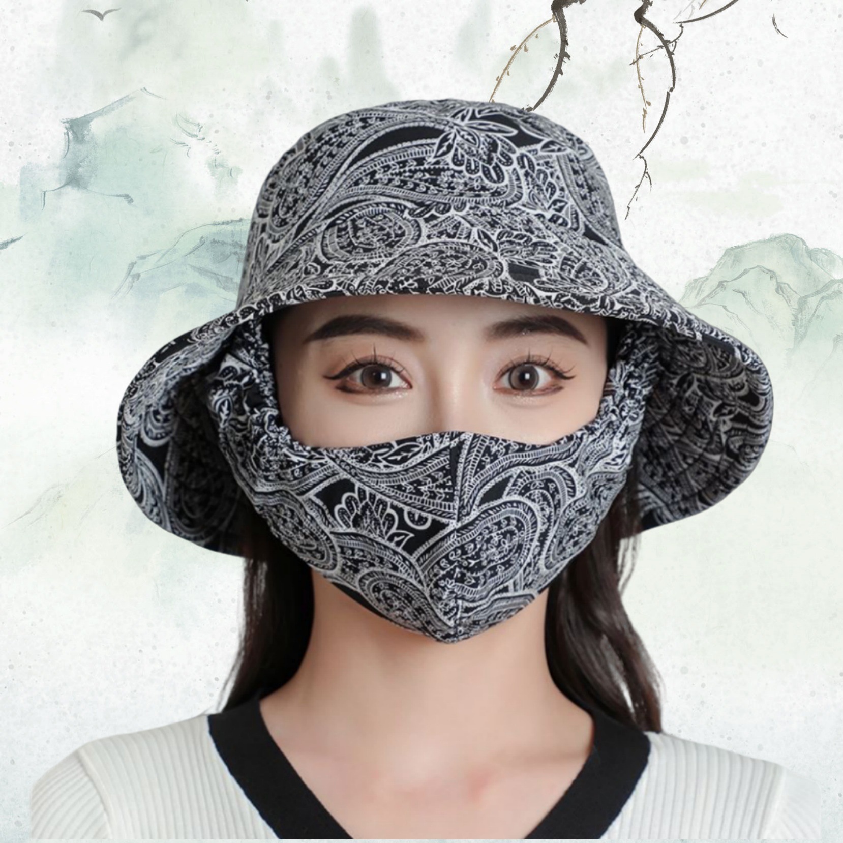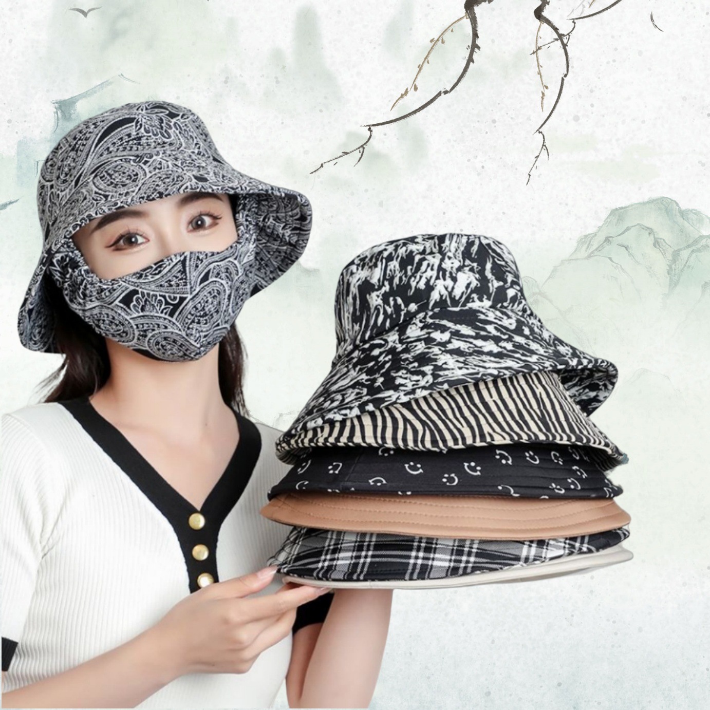 时尚跨境新款防晒口罩帽子一体遮阳防紫外线户外采茶碎花女太阳帽
