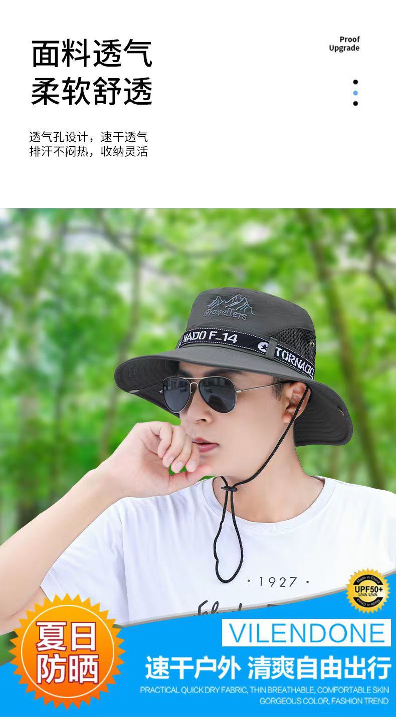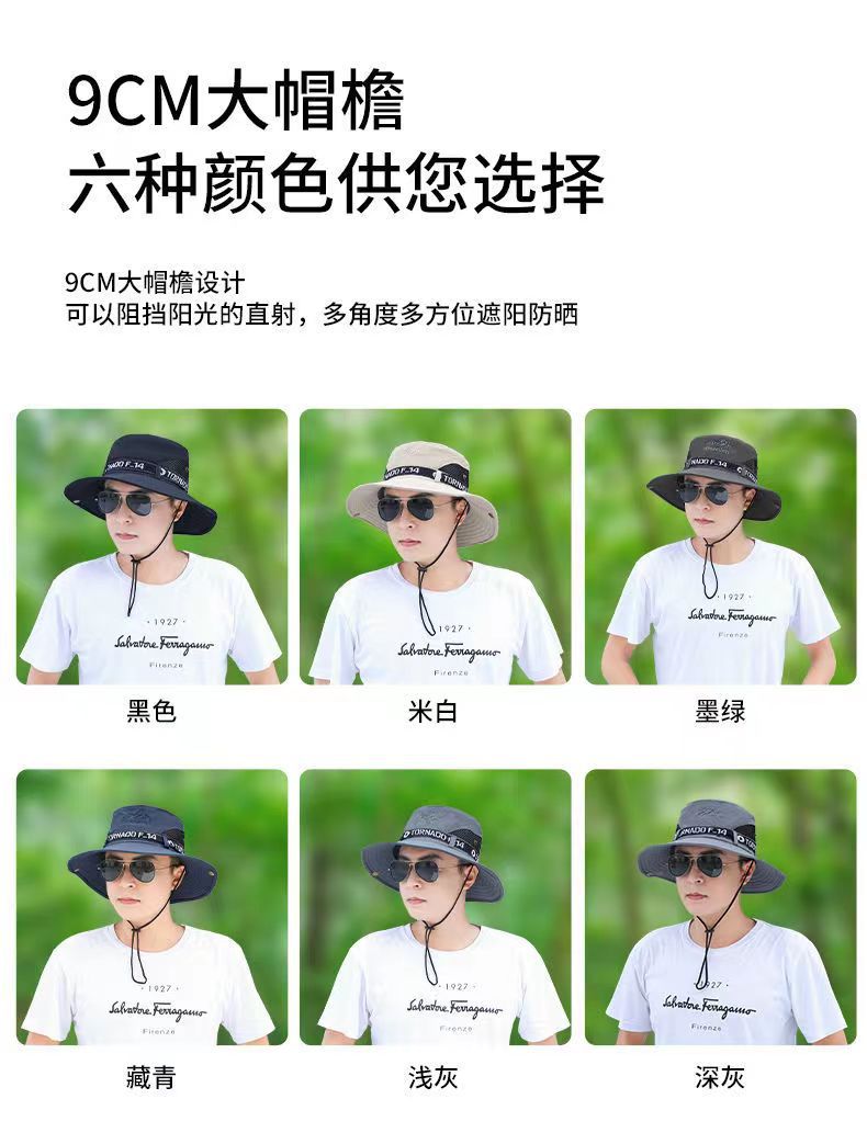 渔夫帽男夏季帽子钓鱼遮阳帽大檐户外登山防晒太阳帽男士骑车旅游
