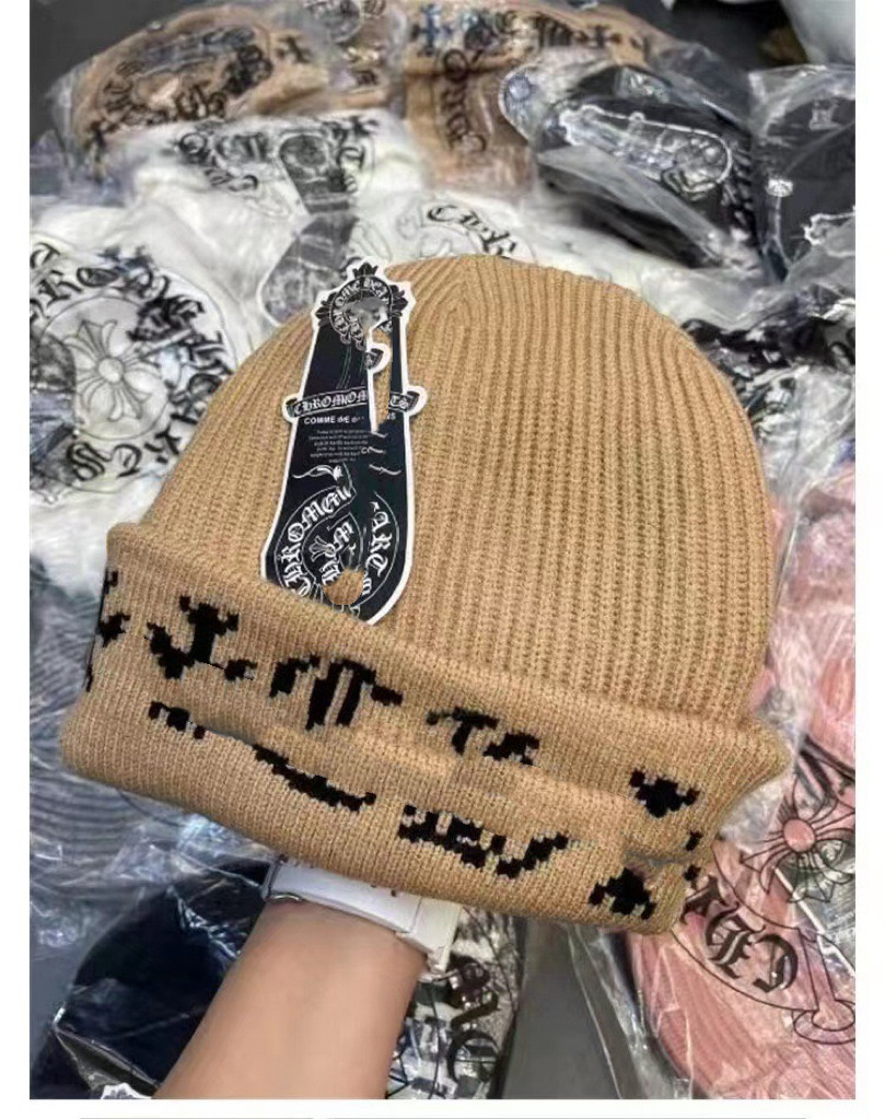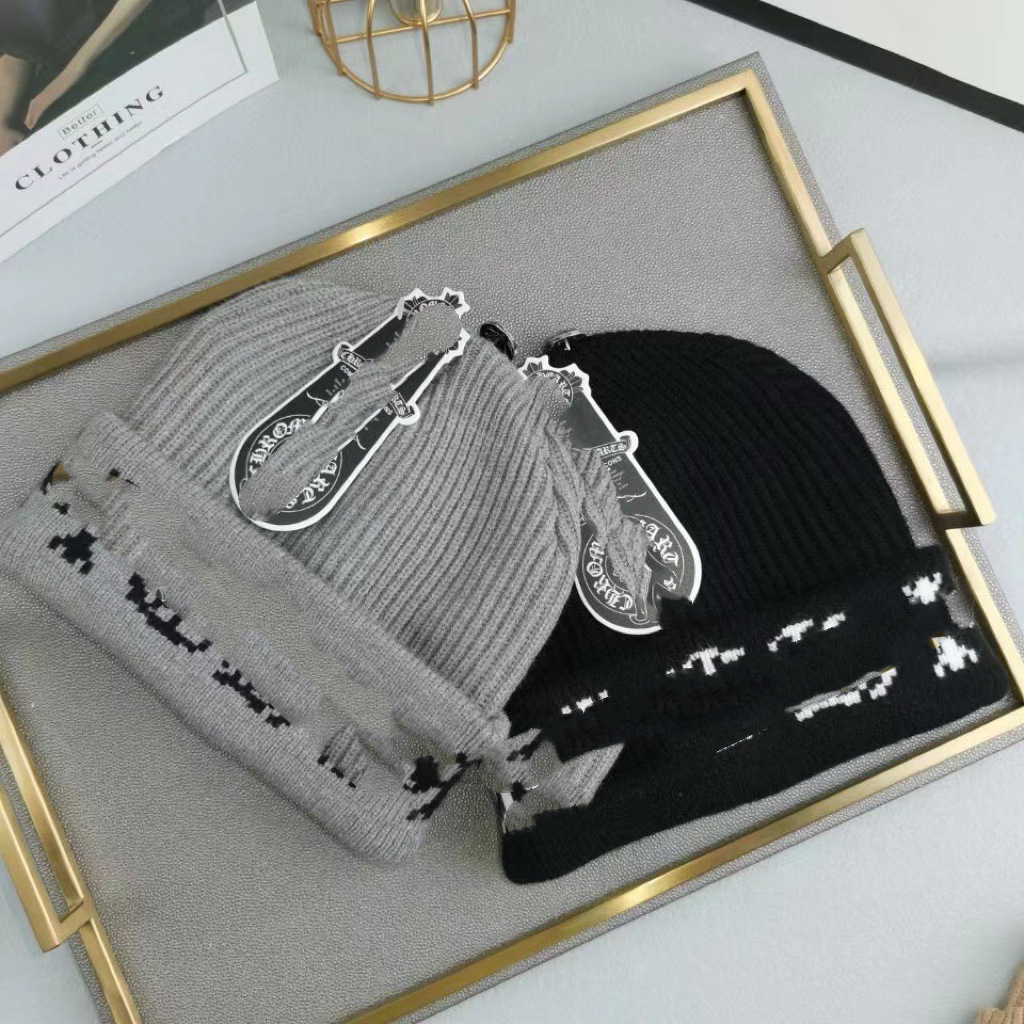 新款克罗心梵文针织帽男女情侣潮流时尚百搭毛线帽秋冬保暖冷帽批