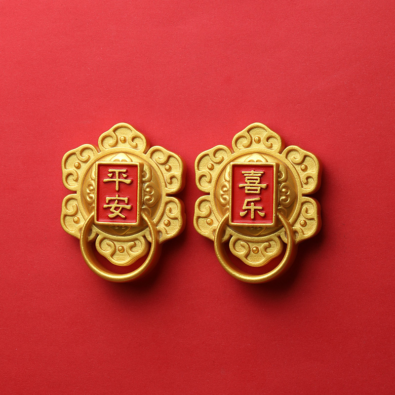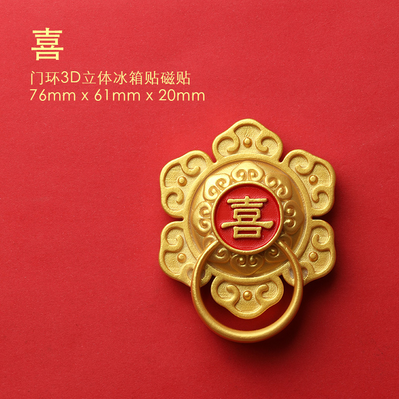 2025新年平安喜乐门环冰箱贴磁贴吉祥如意中国风福喜字蛇年吸铁石