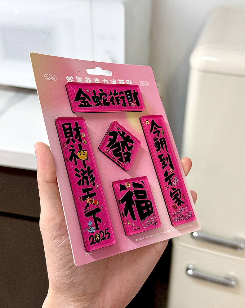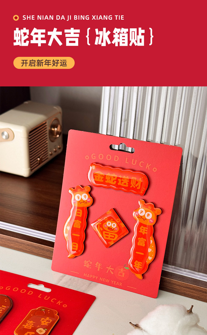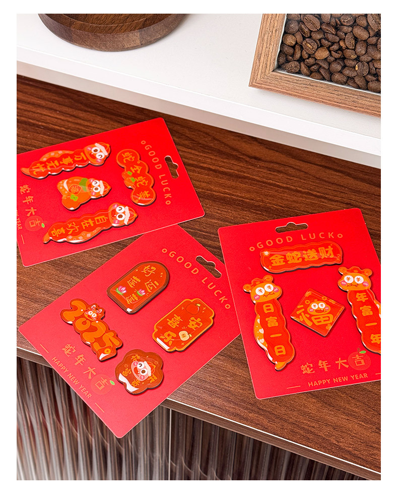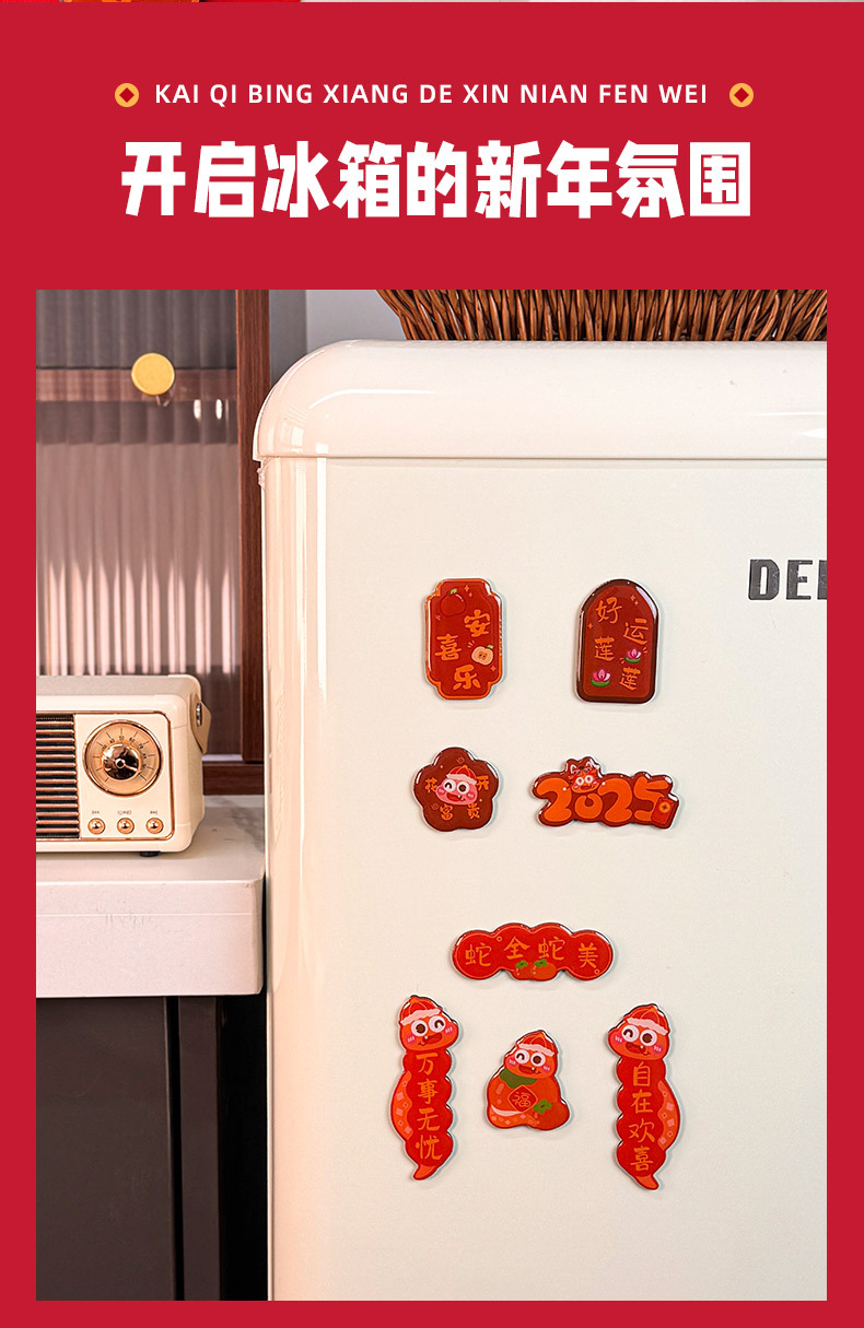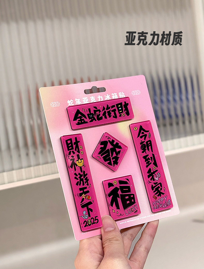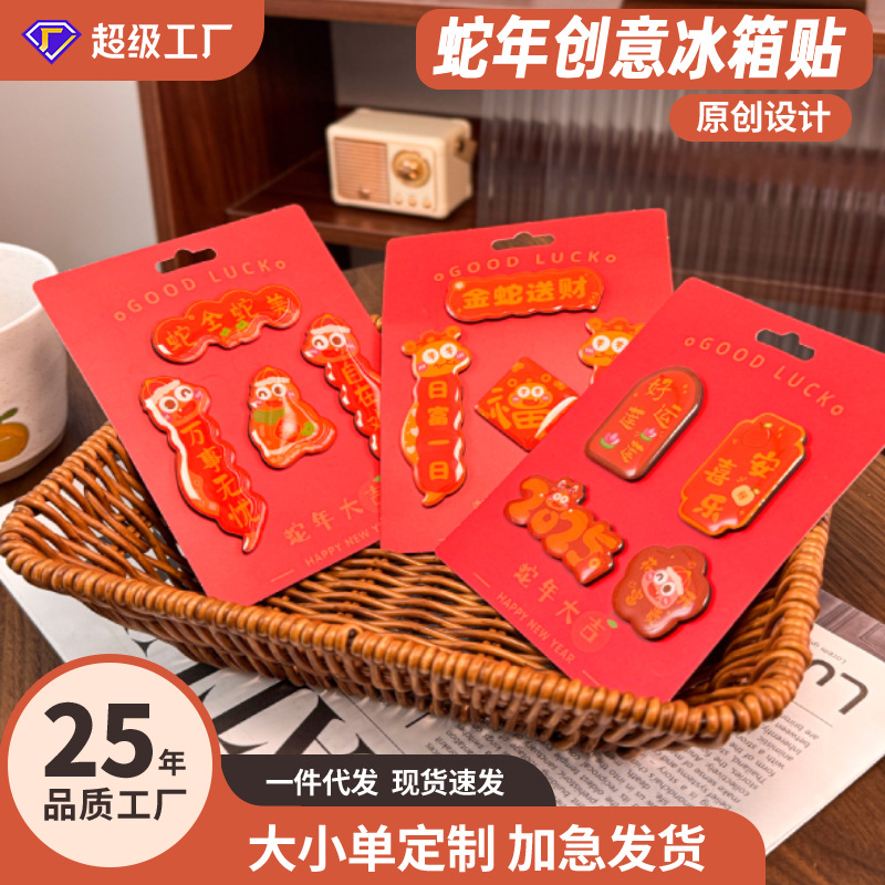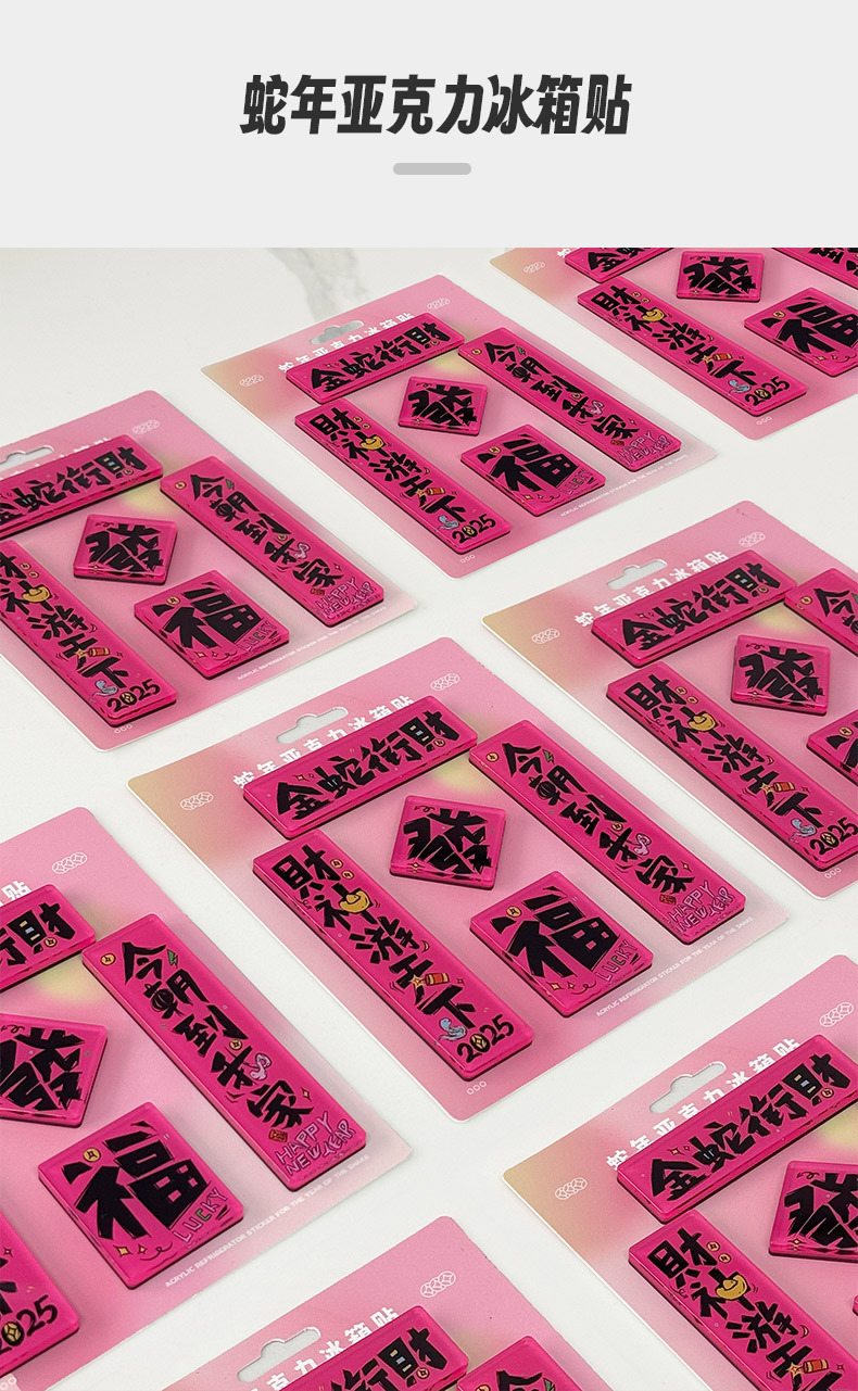 原创2025新款蛇年创意磁吸冰箱贴定制亚克力国潮对联文创贴装饰品