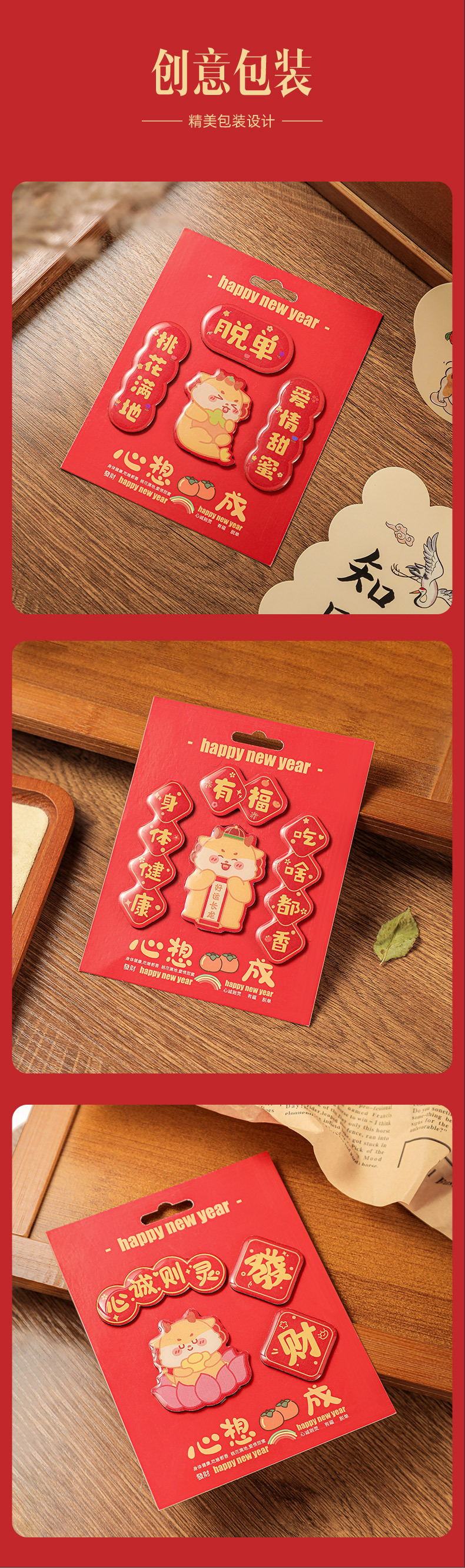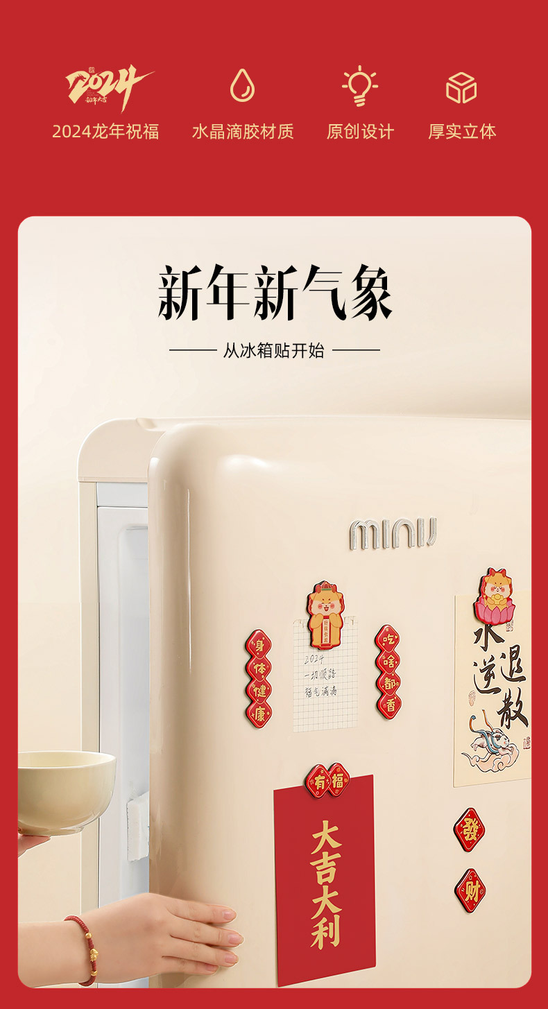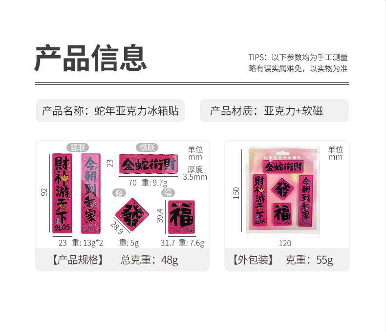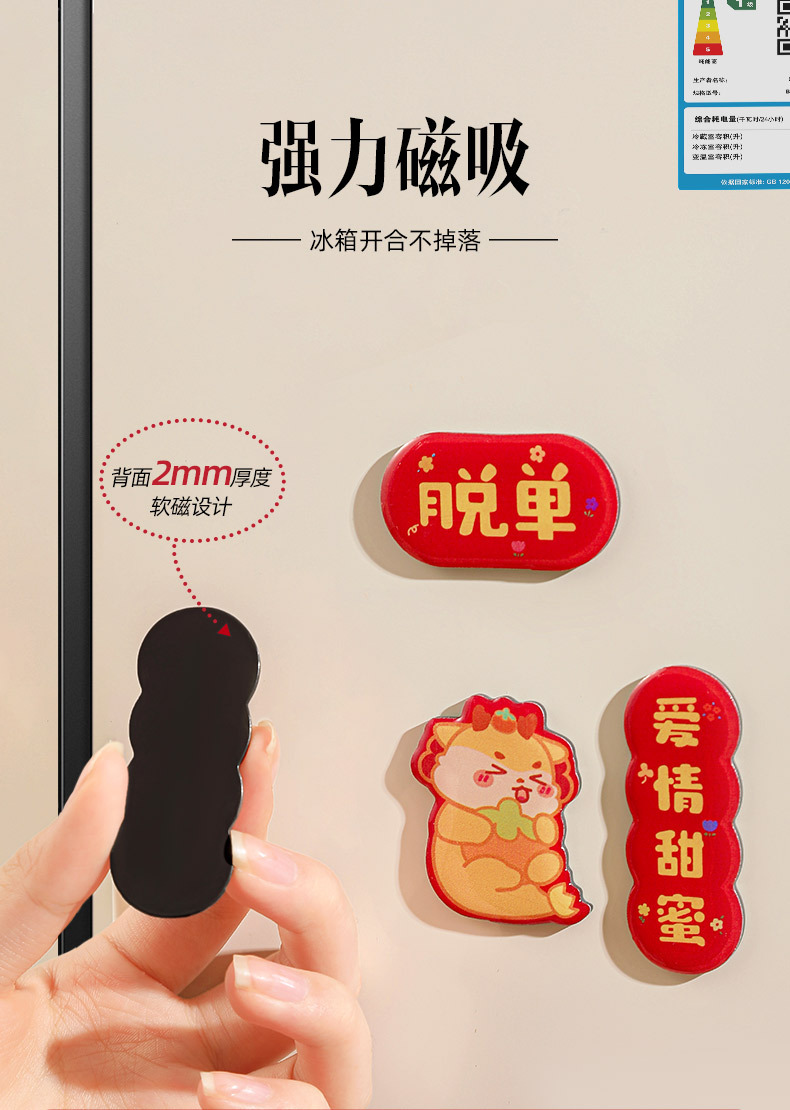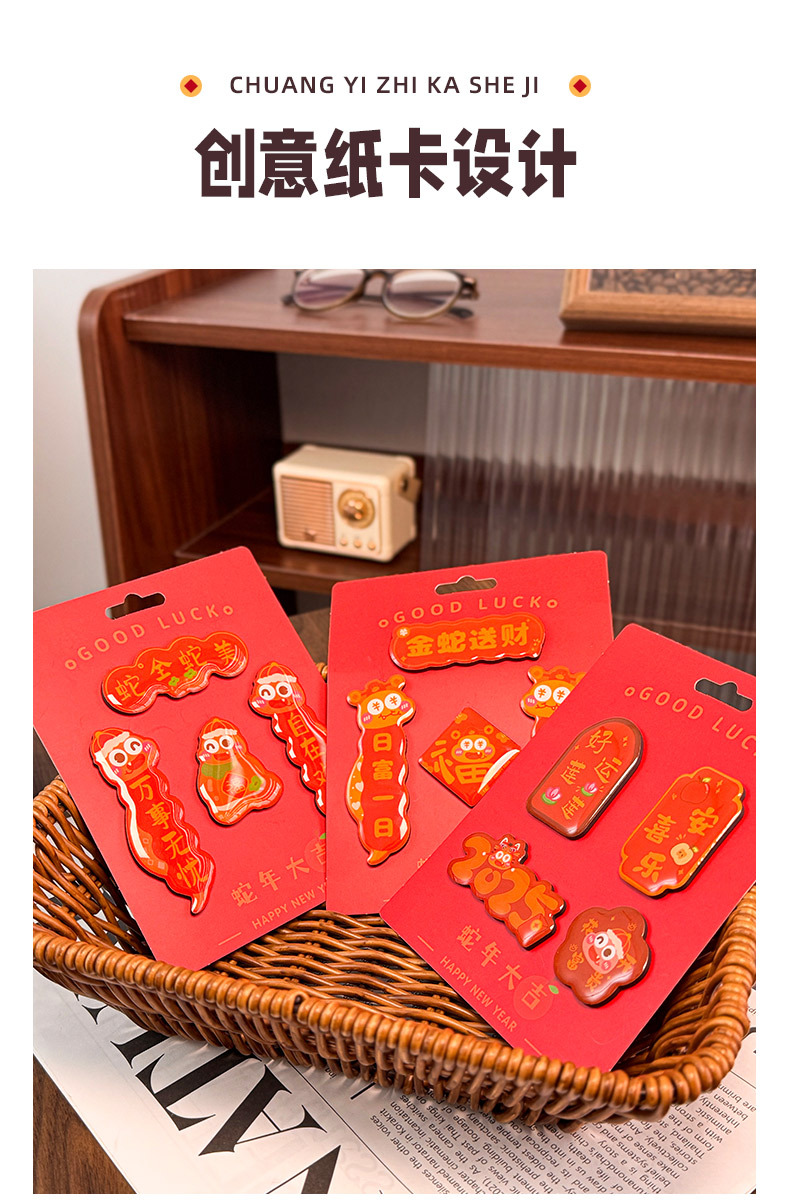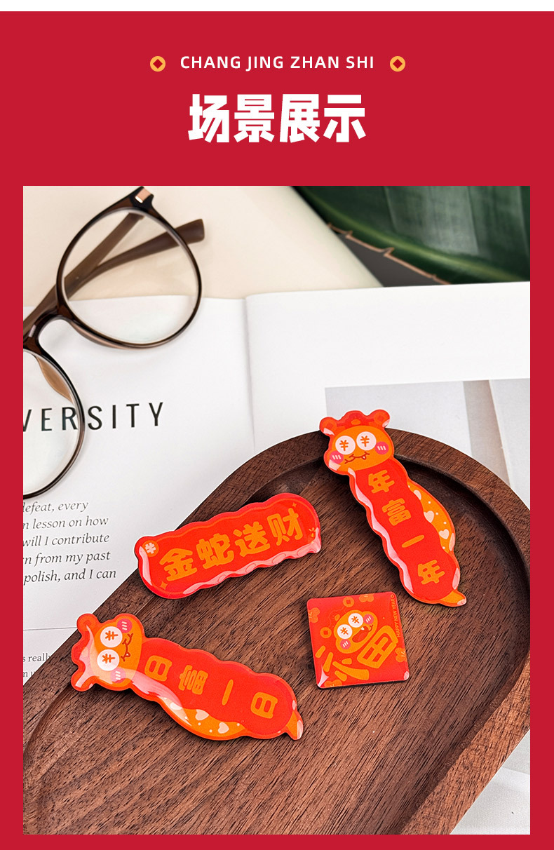 原创2025新款蛇年创意磁吸冰箱贴定制亚克力国潮对联文创贴装饰品
