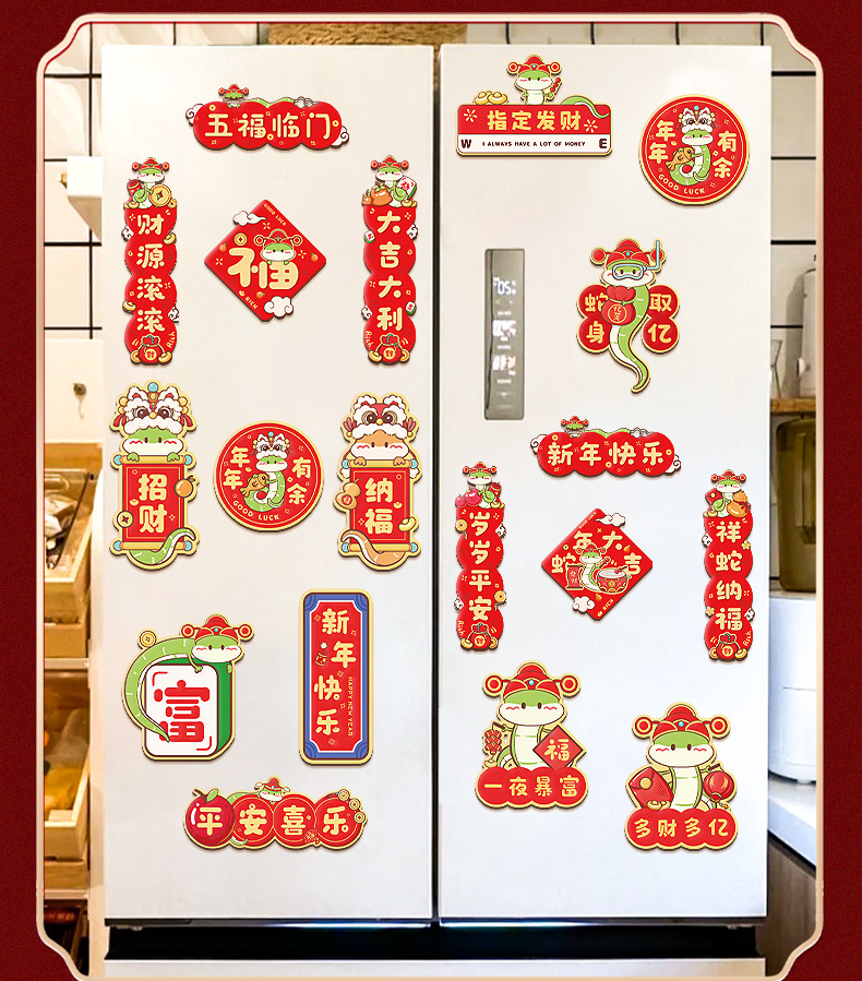 2025蛇年春节装饰新年冰箱贴磁性贴磁吸套装组合门贴喜庆过年