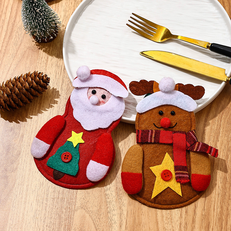 圣诞节装饰品圣诞餐桌装饰 圣诞餐具套 圣诞老人雪人刀叉套批发