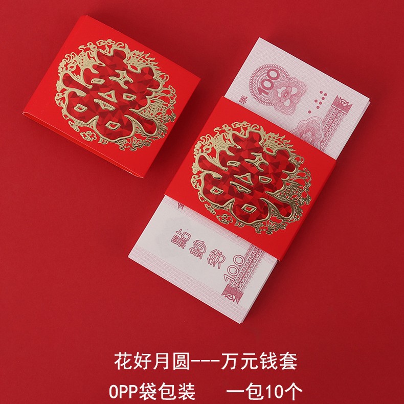 万元封喜字捆钱扎钱卡套婚喜庆用品批发结婚订婚聘金彩礼万元钱套